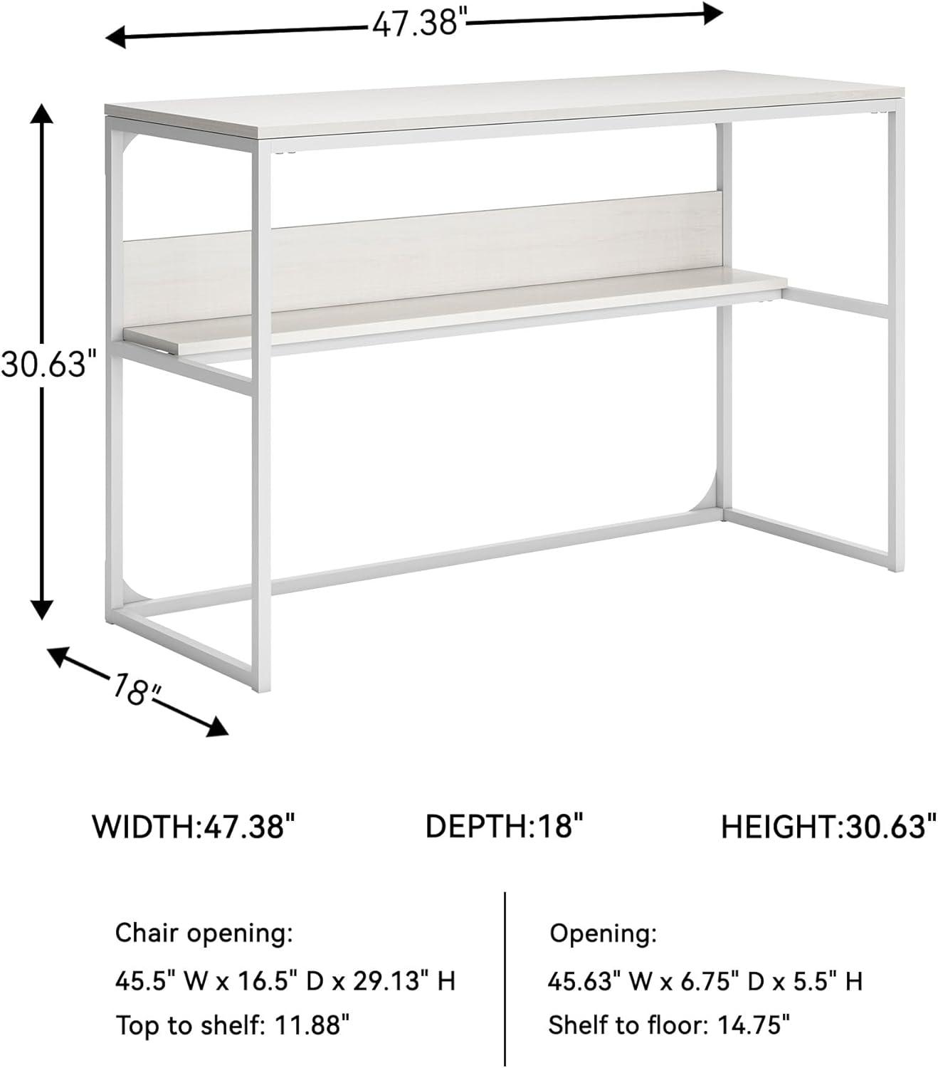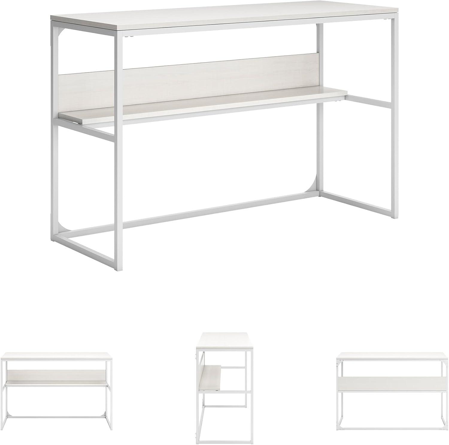 Bring your vision of a modern home workspace to life with this sleekly designed home office desk. Its linear construction and white finish keep things minimal. A small shelf along the back rounds out the versatile, striking desk. Creating an ideal at-home workspace starts with finding a home office desk with the right size, features and look. We know that the way you work most efficiently is unique to you, so we offer a wide variety of home office furniture options to help you achieve your goals. For gamers and work-from-home warriors alike, our home office desk solutions are the ideal way to complete your space.