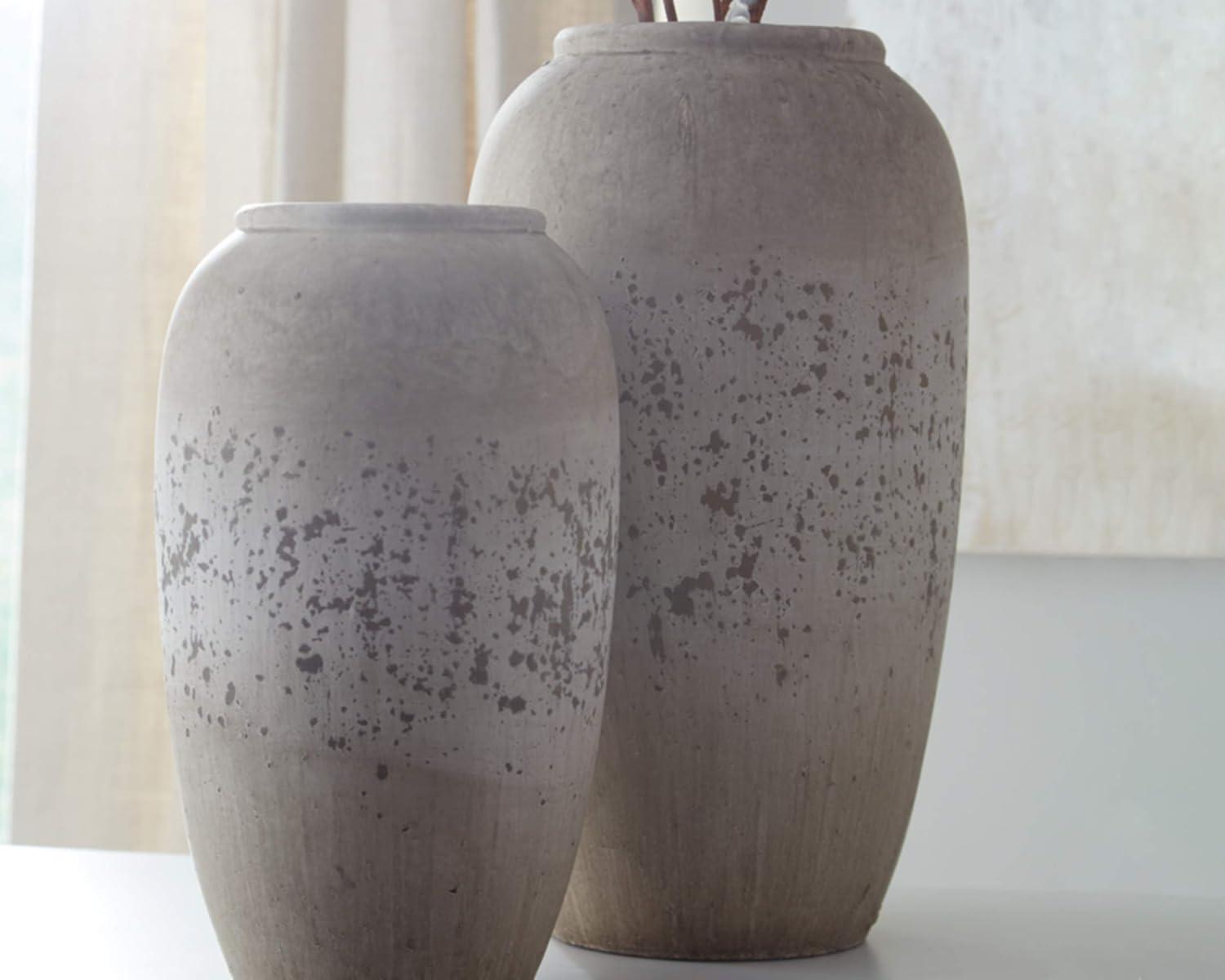 Signature Design by Ashley Dimitra Painted Ceramic 2 Piece Decorative Vase Set, Light Gray