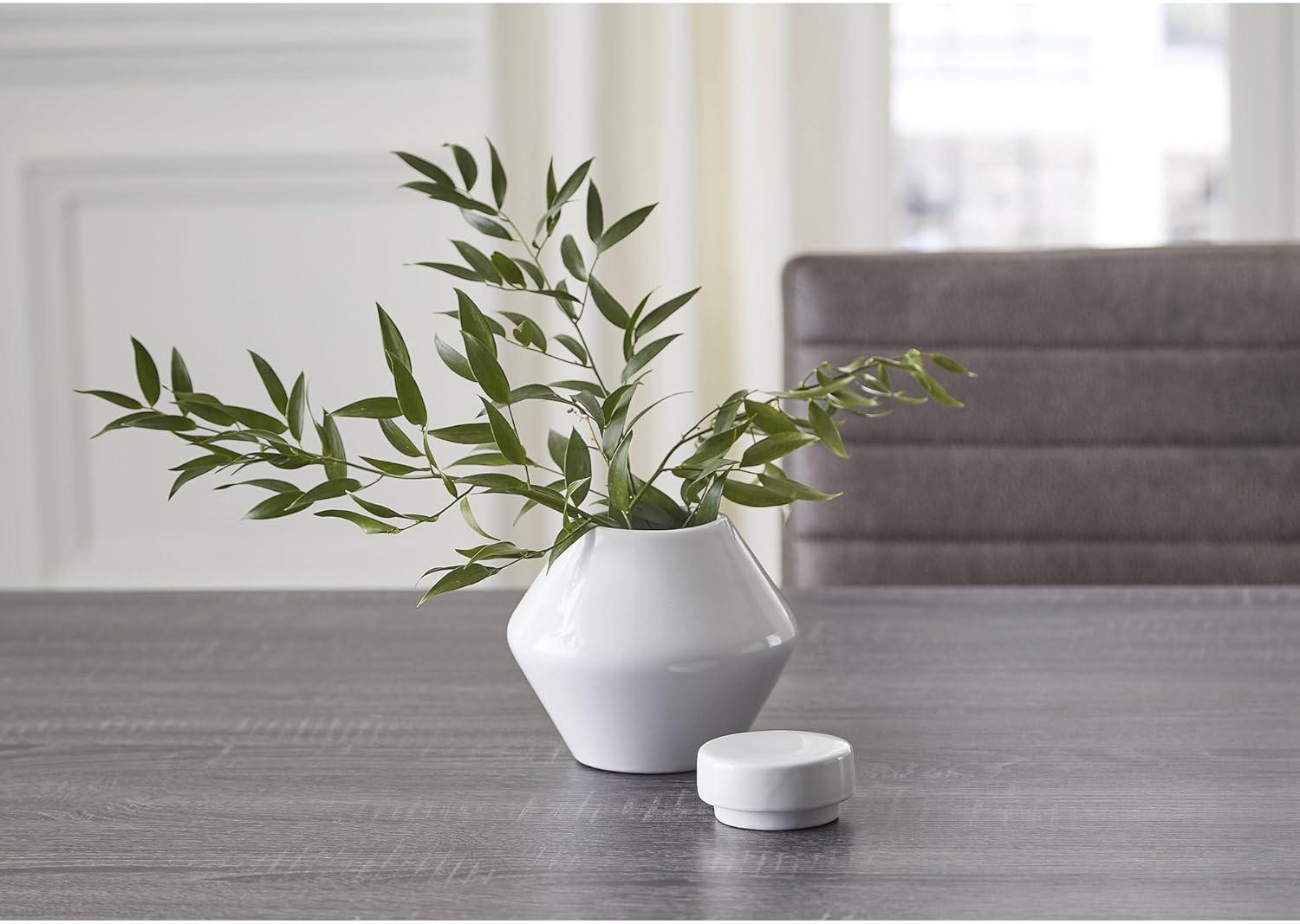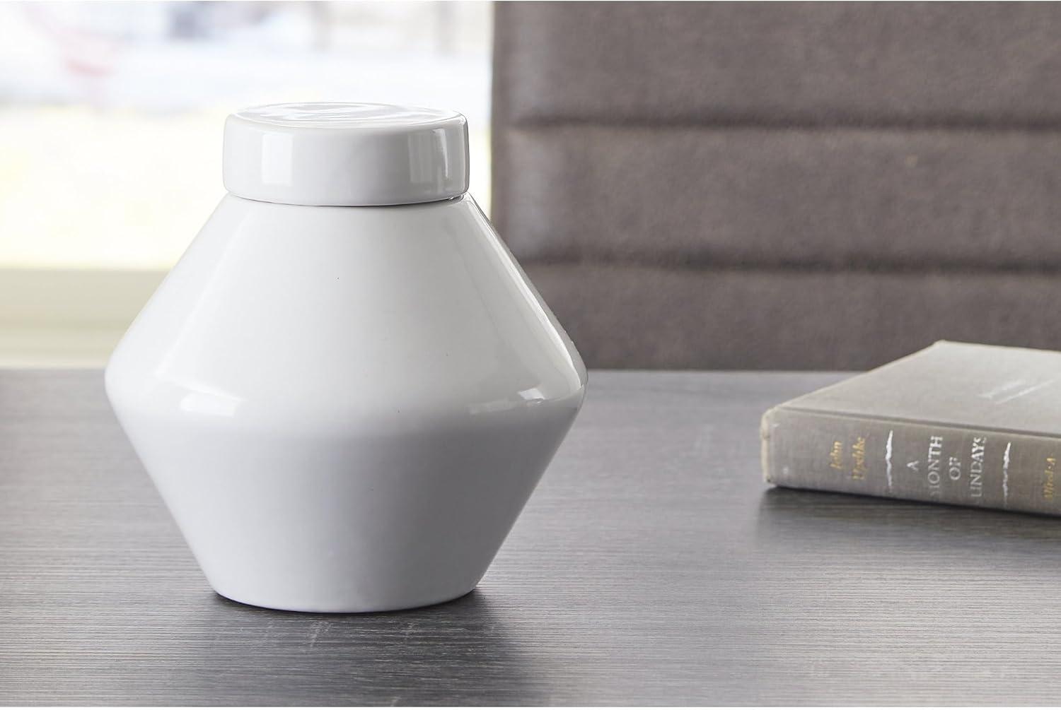 Signature Design by Ashley Domina Modern 9″ Indoor & Outdoor Ceramic Jar with Removable Lid, White(9 in)