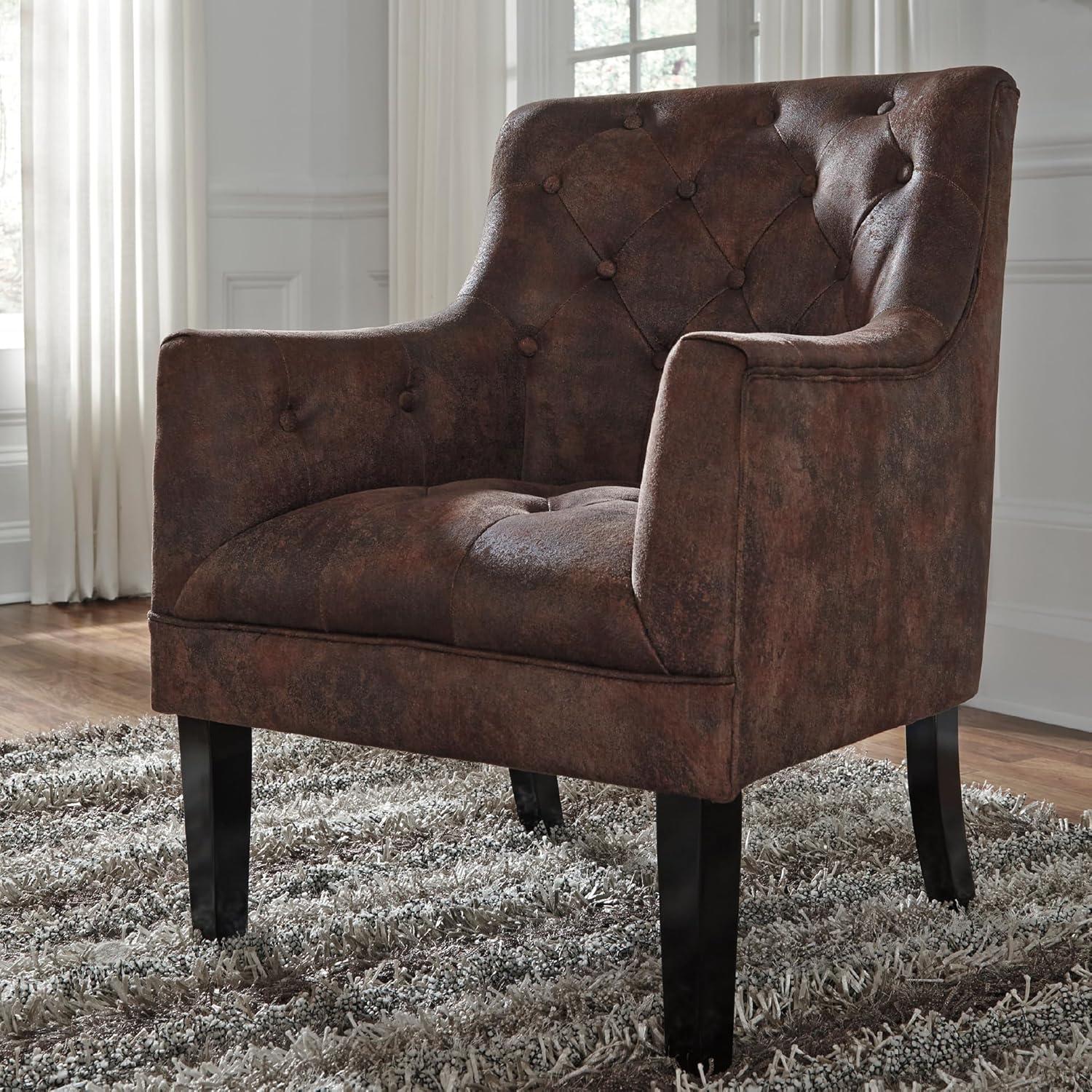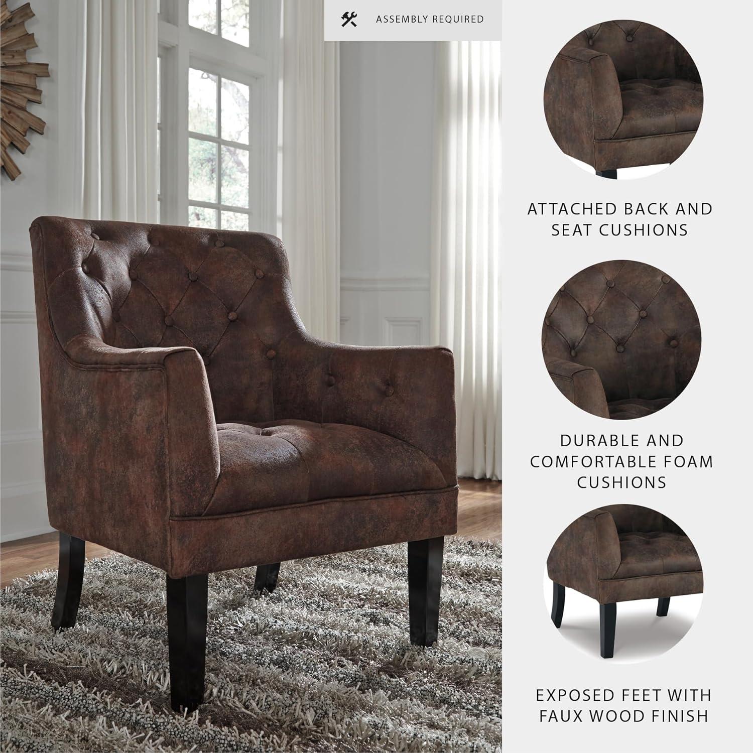 Signature Design by Ashley Drakelle Faux Leather Distressed Tufted Accent Chair, Brown(Brown)