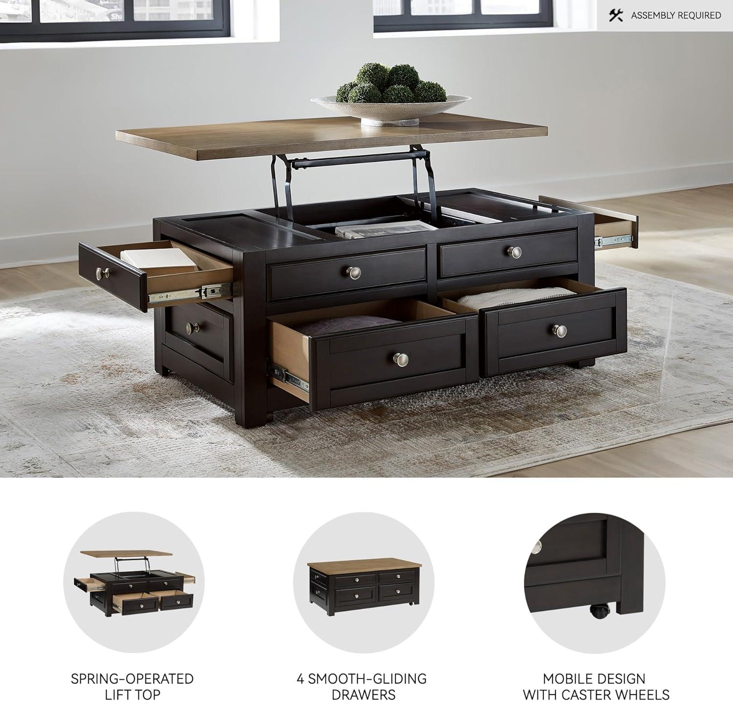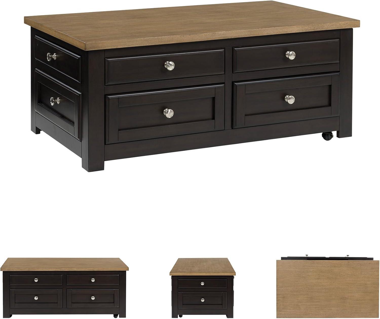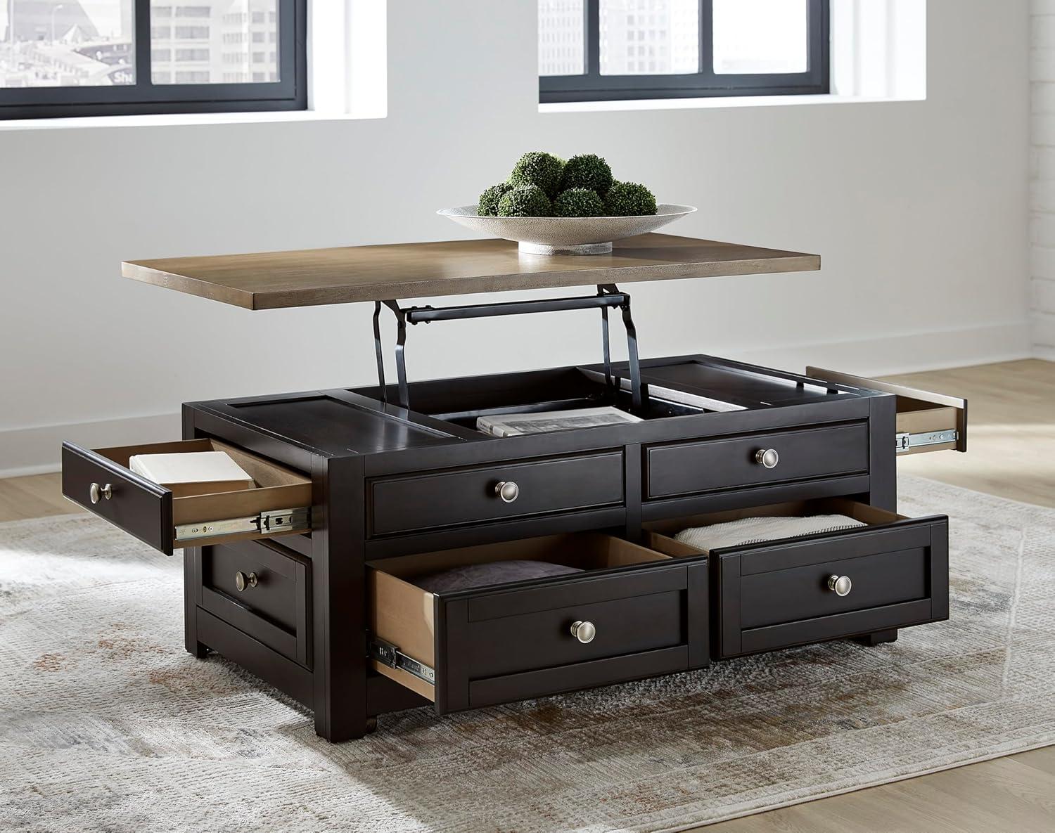 Signature Design by Ashley Drazmine Casual Lift-Top Coffee Table with 4 Drawers and Casters, Dark Brown & Light Brown
