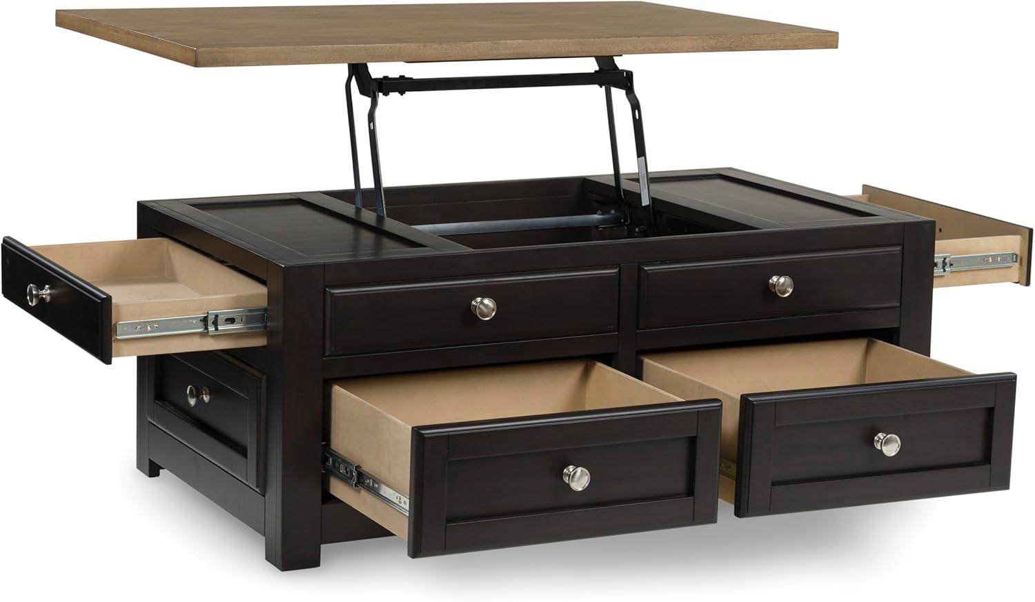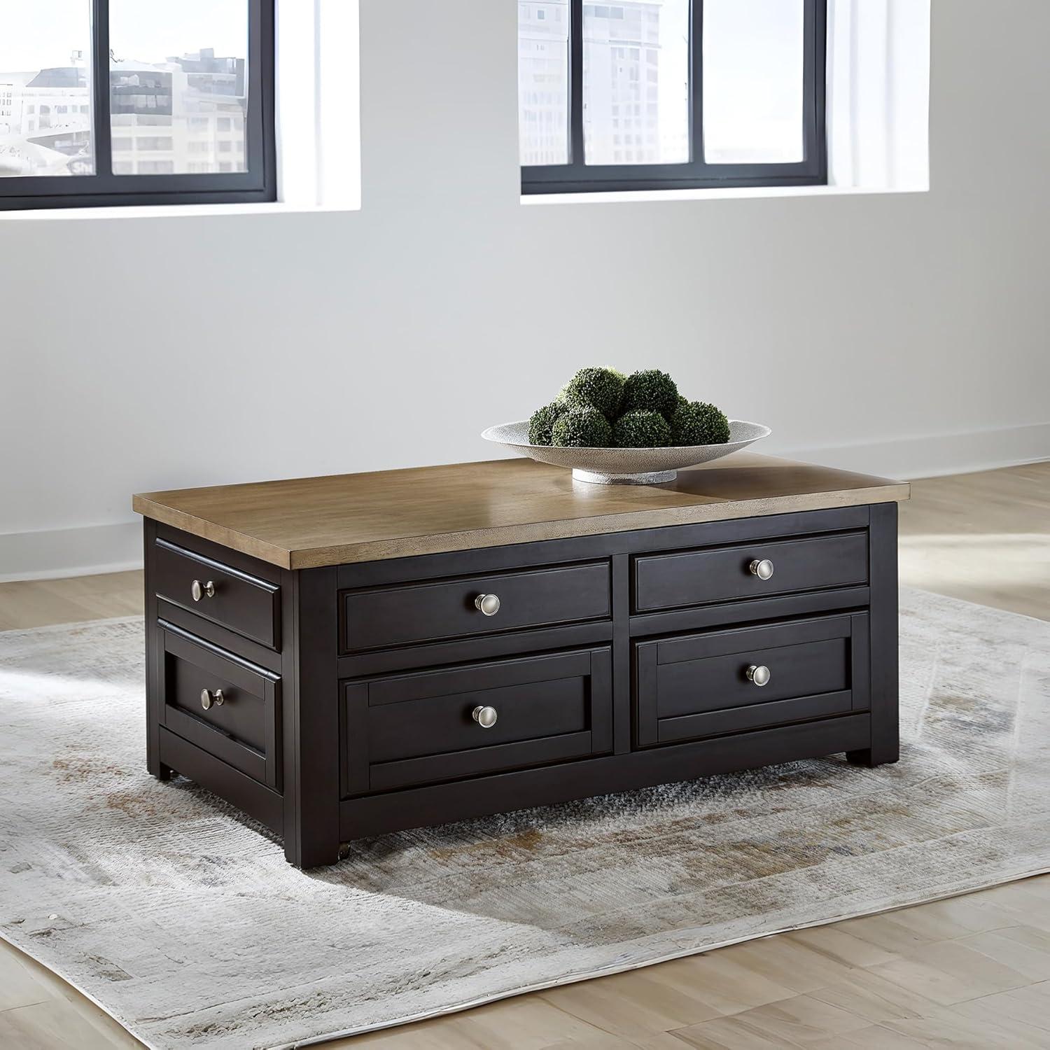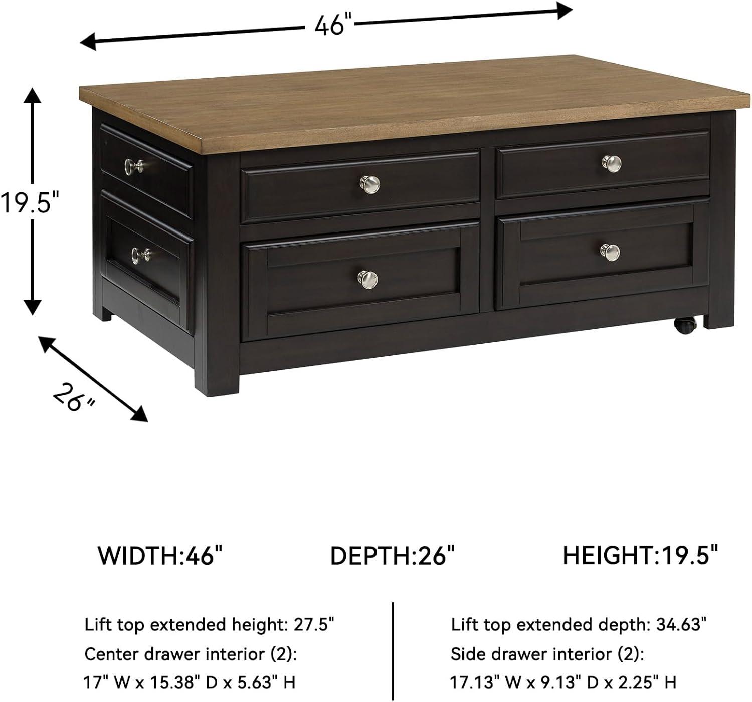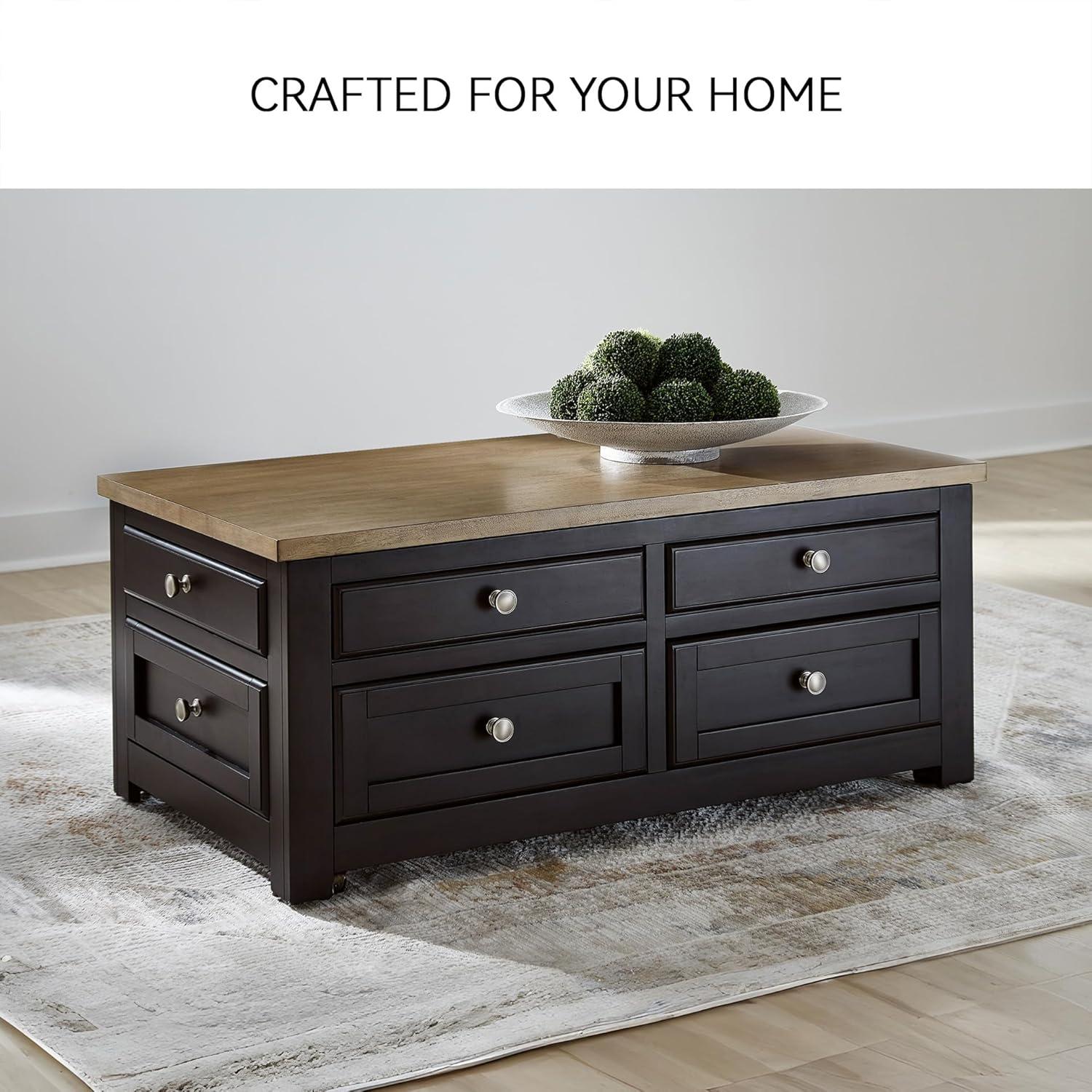 Signature Design by Ashley Drazmine Casual Lift-Top Coffee Table with 4 Drawers and Casters, Dark Brown & Light Brown