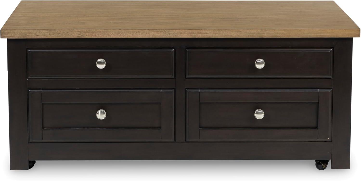 HANDSOMELY MADE: Crafted with acacia solids, acacia veneer and MDF substrate. Tabletop with light wood-tone finish. Dark chocolate brown body. Lift-top design. 4 smooth-gliding drawers