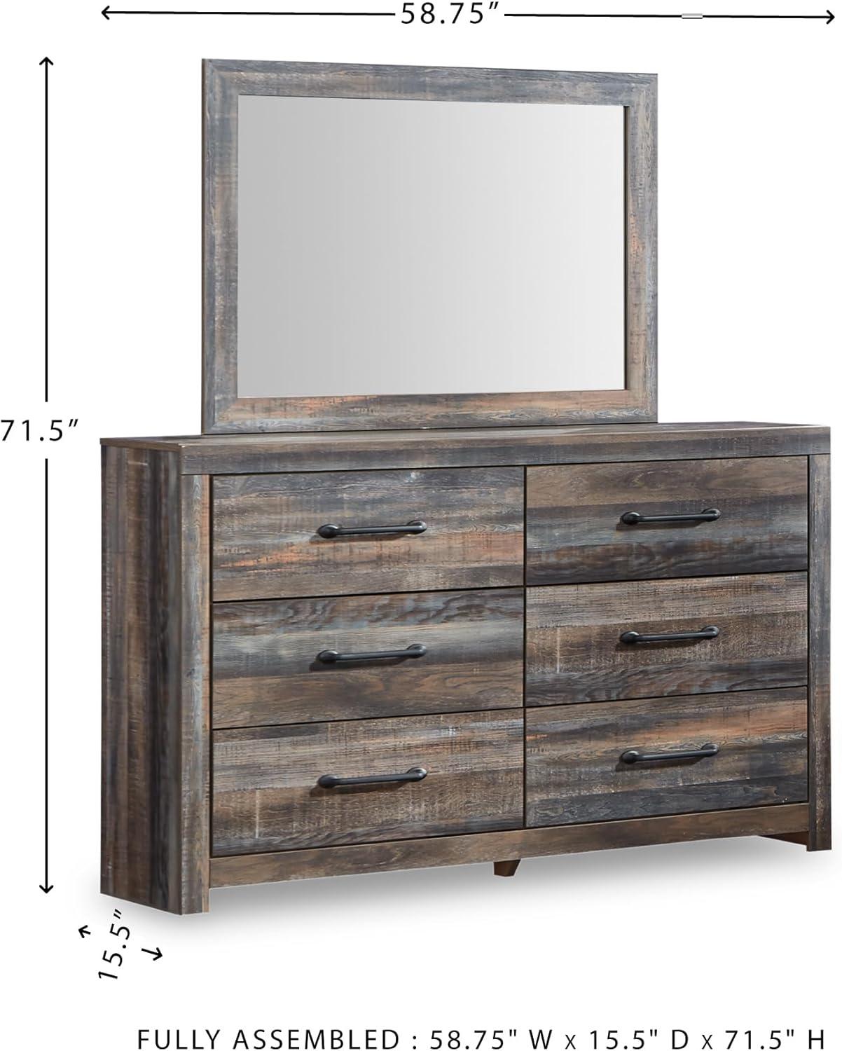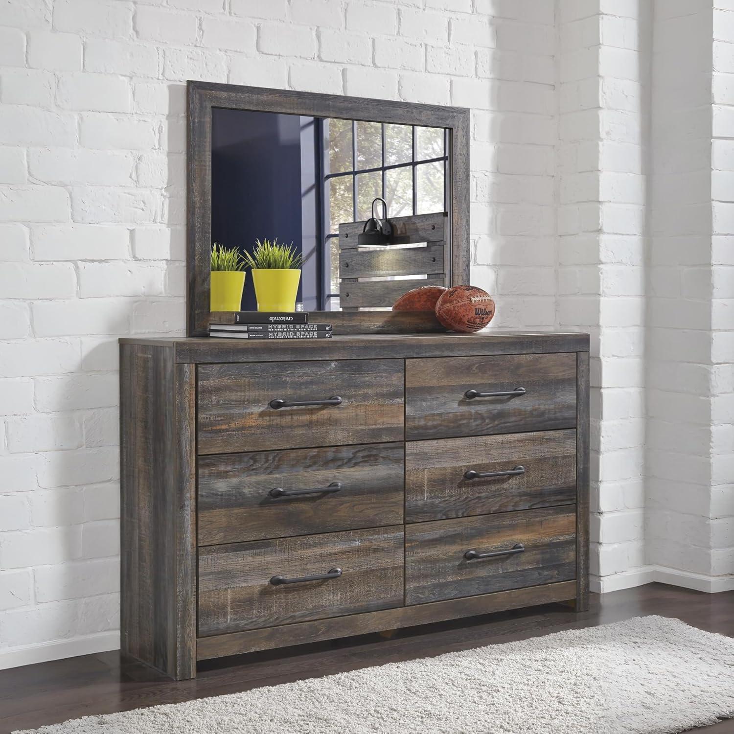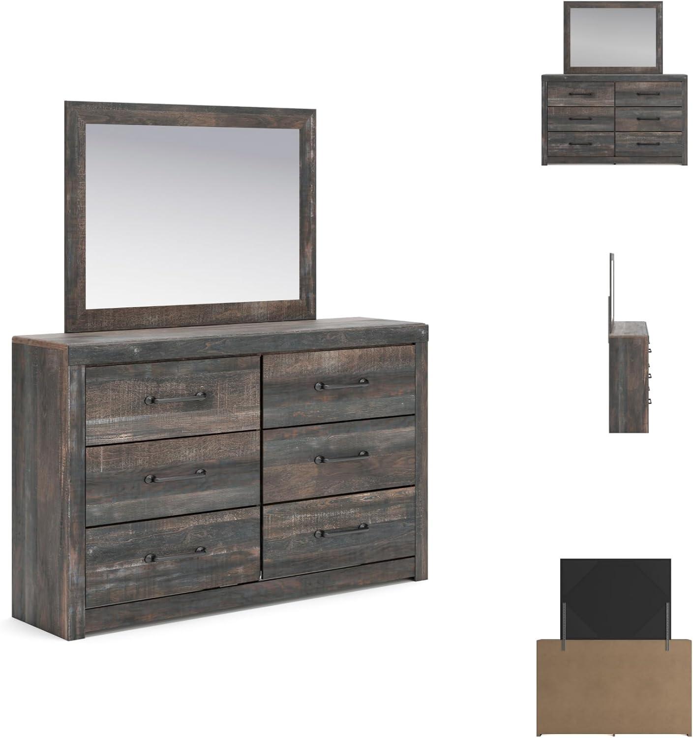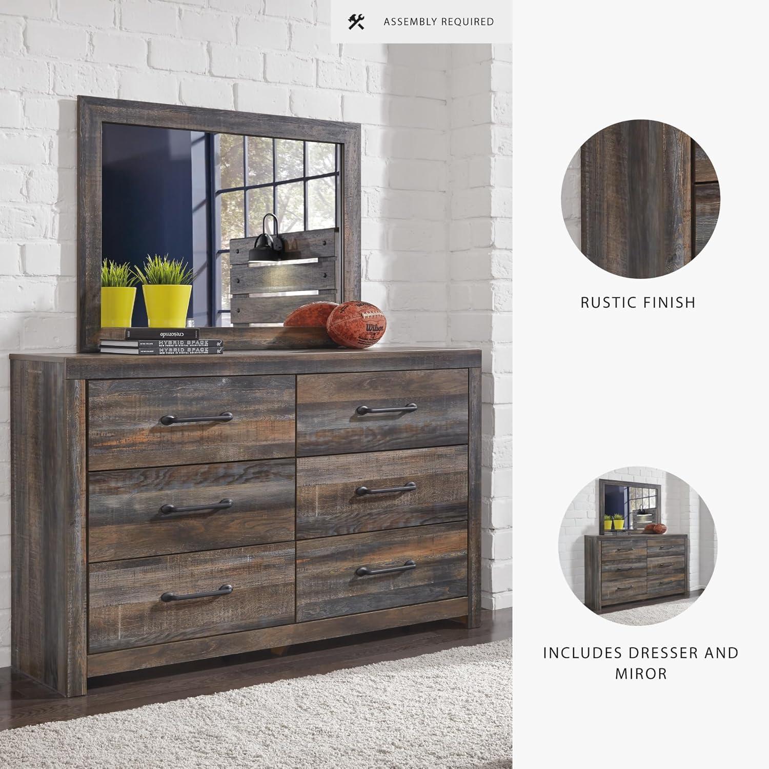 Signature Design by Ashley Drystan Rustic Queen Bookcase Bed with 2 Storage Drawers and LED Light, Foundation or Box Spring Needed, Dark Brown & Gray(15.5″D x 58.8″W x 71.5″H (6 Drawers))