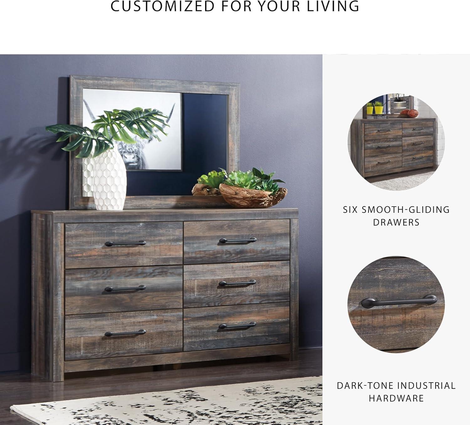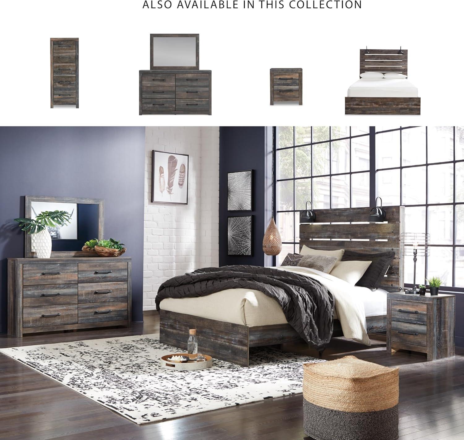 Signature Design by Ashley Drystan Rustic Queen Bookcase Bed with 4 Storage Drawers, Open Cubbies and LED Light, Foundation or Box Spring Not Needed, Dark Brown & Gray(15.5″D x 58.8″W x 71.5″H (6 Drawers))