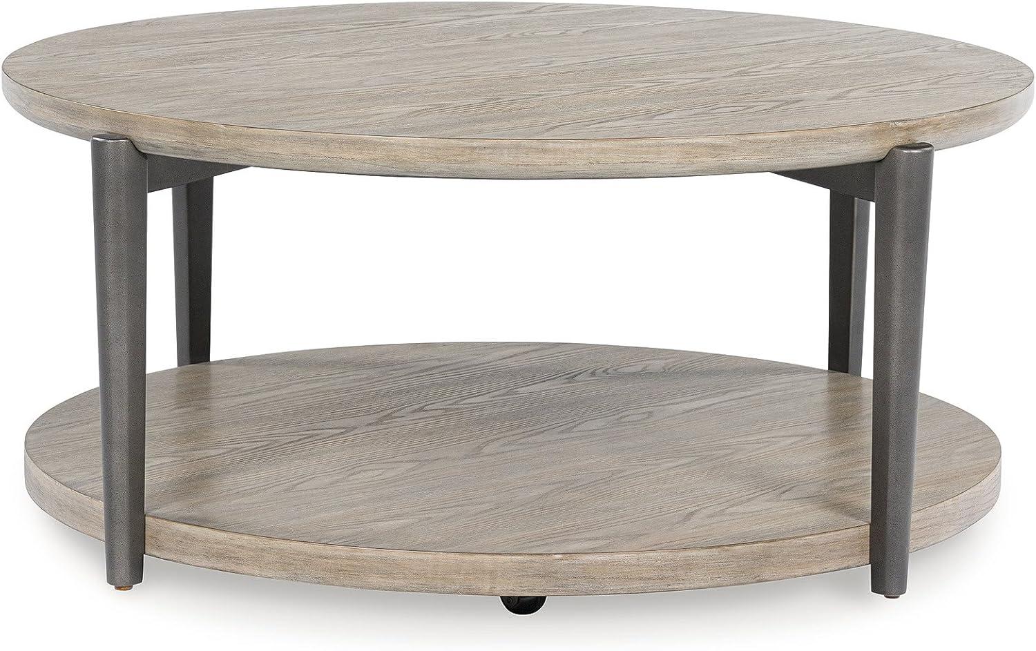 Signature Design by Ashley Dyonton Industrial Coffee Table with 4 Legs, Light Brown & Metallic