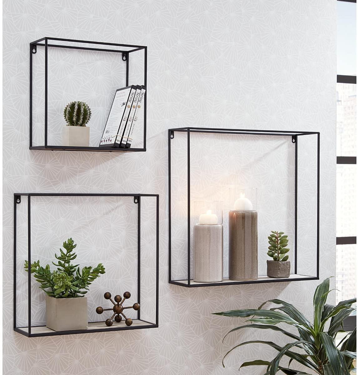 SET OF 3: Hang in any indoor rooms for added aesthetic. Small shelf measures 14″ W x 6″ D x 13.75″ H, medium shelf measures 18″ W x 6″ D x 18″ H, and large shelf measures 22″ W x 6″ D x 21.75″ H