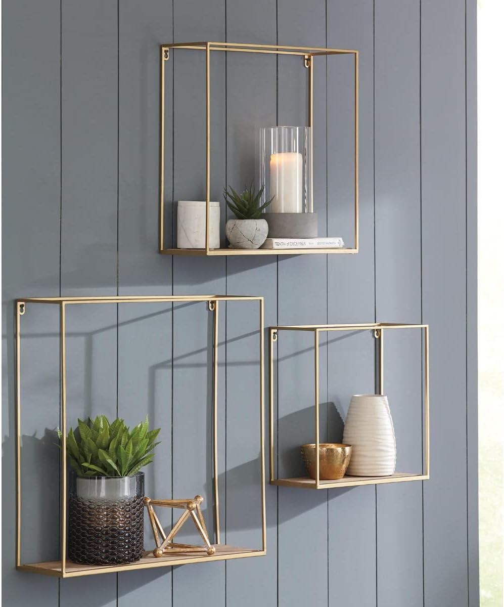 This 3-piece wall shelf set creates multi-dimensional appeal on your wall. Linear design is elevated with an unexpected fashion-forward combination of goldtone metal and natural wood. Varying sizes give you the freedom to showcase what you want, where you want. Hanging up wall decor is the easiest way to make an empty wall go from drab to fab. It can transform the feel of a room by making ceilings look higher, lines cleaner and spaces feel even bigger. With our selection of wall shelves, your walls can reflect many aspects of your life and personality. And we go the extra mile to package, protect and deliver your purchase in a timely manner.