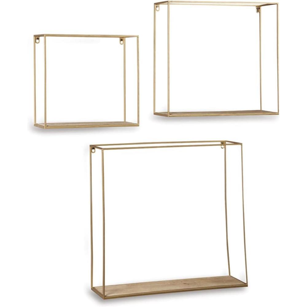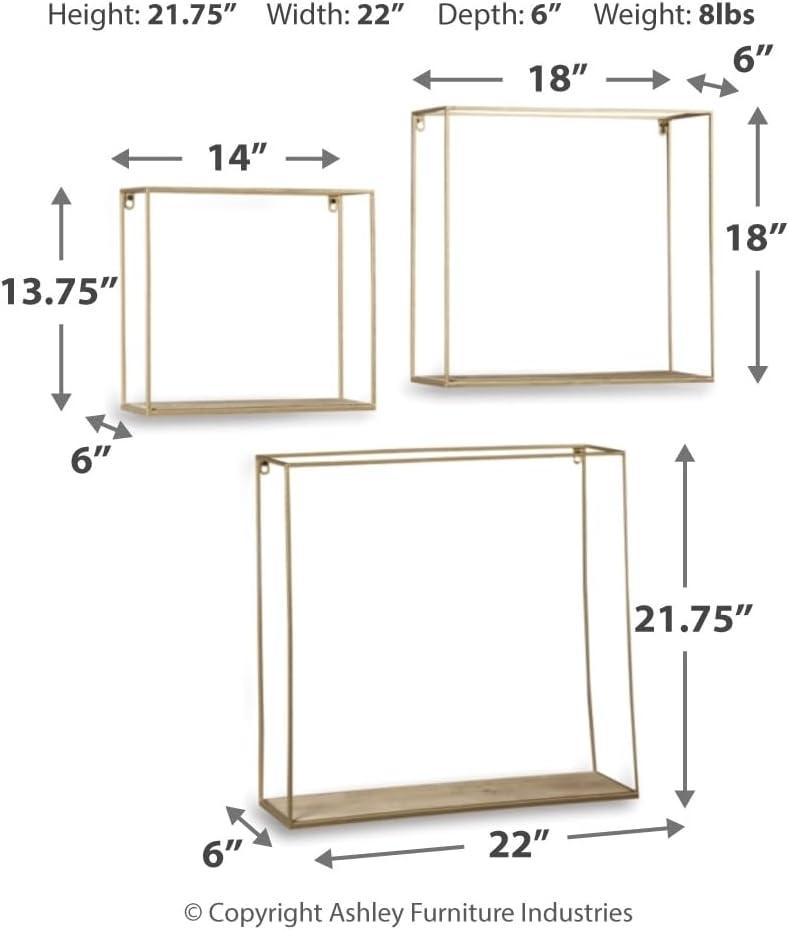 Signature Design by Ashley Efharis Shadow Box Set, 3 Piece Wall Shelf, Natural & Gold Finish(Efharis)