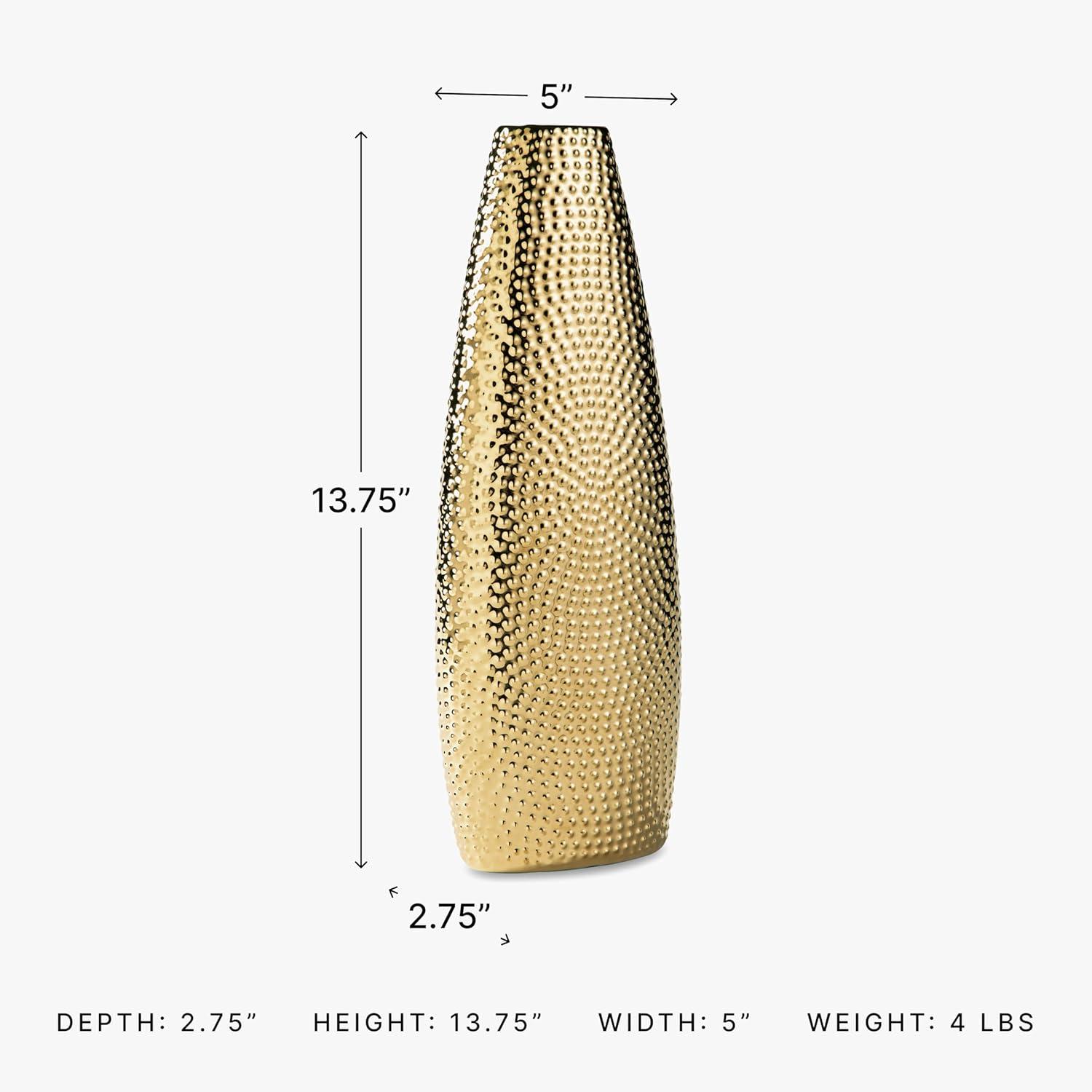 Upgrade your interiors with the elegant look of gold. This glazed goldtone ceramic vase is a beautiful way to display a floral arrangement. But it also draws attention even when sitting empty on a mantel, tabletop or other surface. Whether you're tackling a small space or a grand room, home accents are the pieces that tie your home together. These unique details transform spaces from drab to fab in a pinch by adding pops of color and life to your canvas. From functional yet stylish vases to one-of-a-kind sculptures to stunning candle holders, we have whatever you need to bring your home’s unique style to life. And we go the extra mile to package, protect and deliver your purchase in a timely manner.