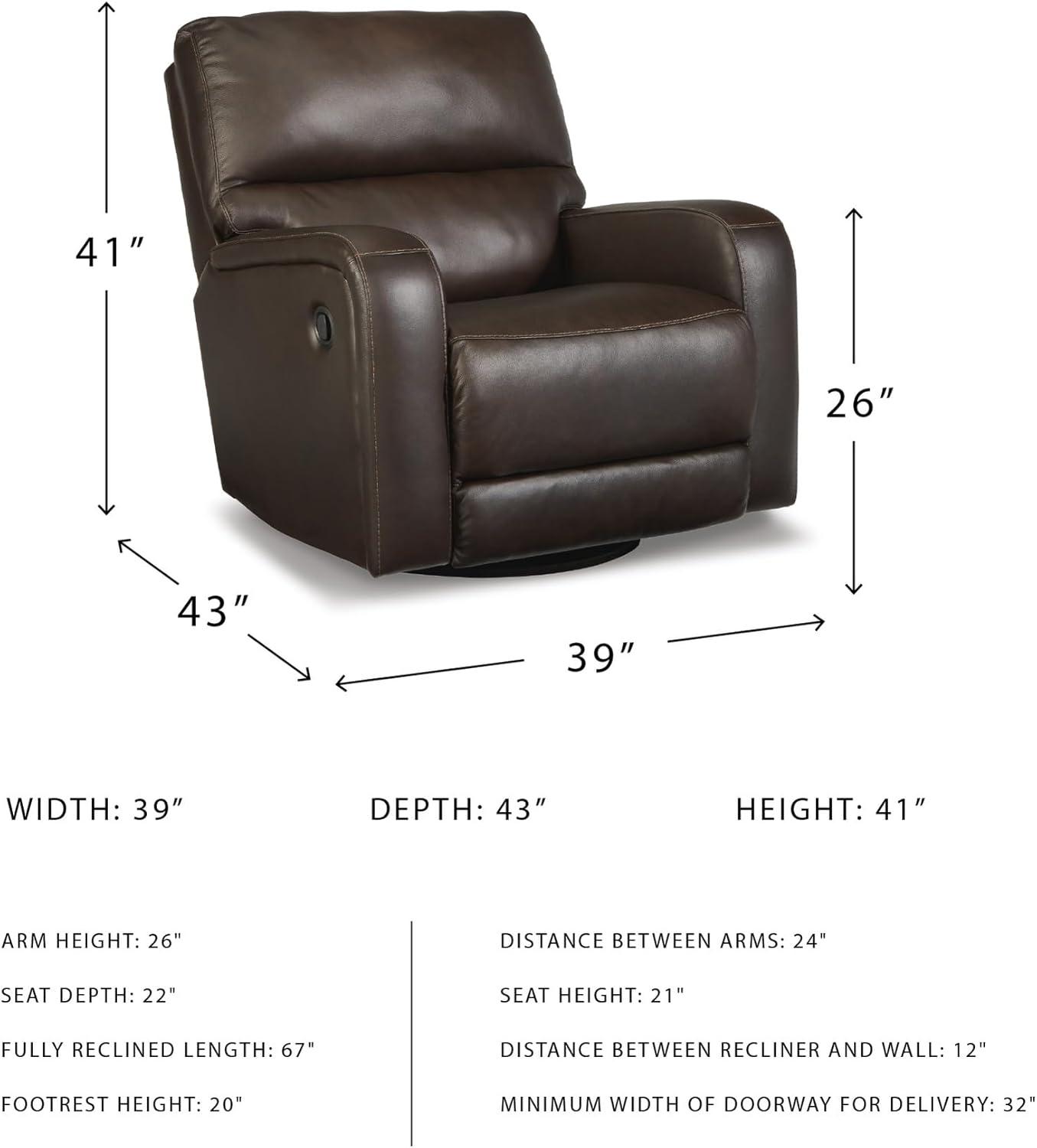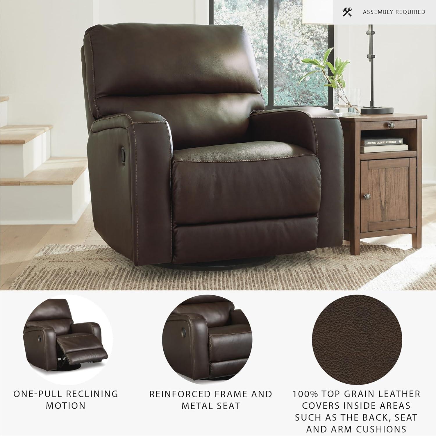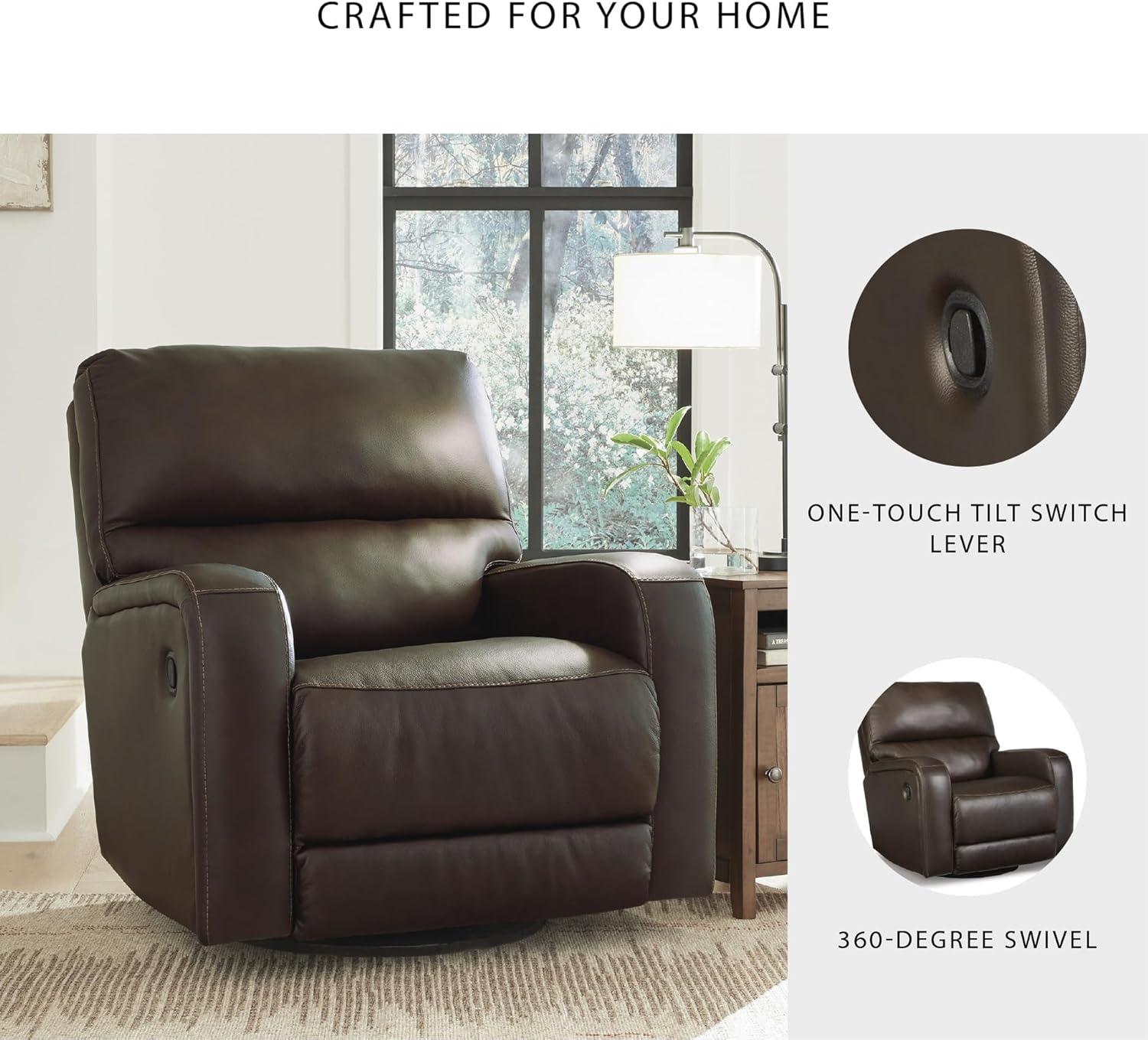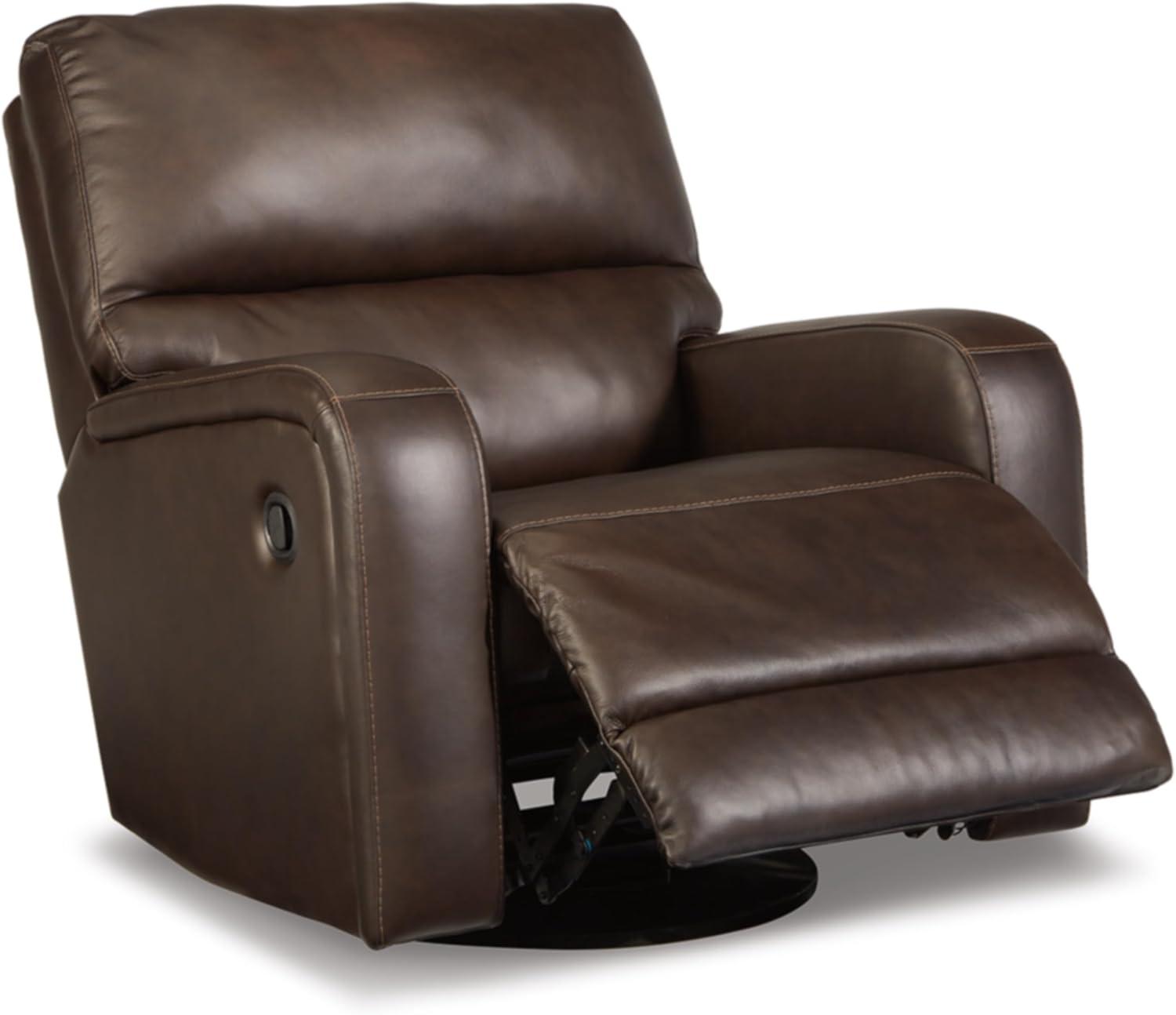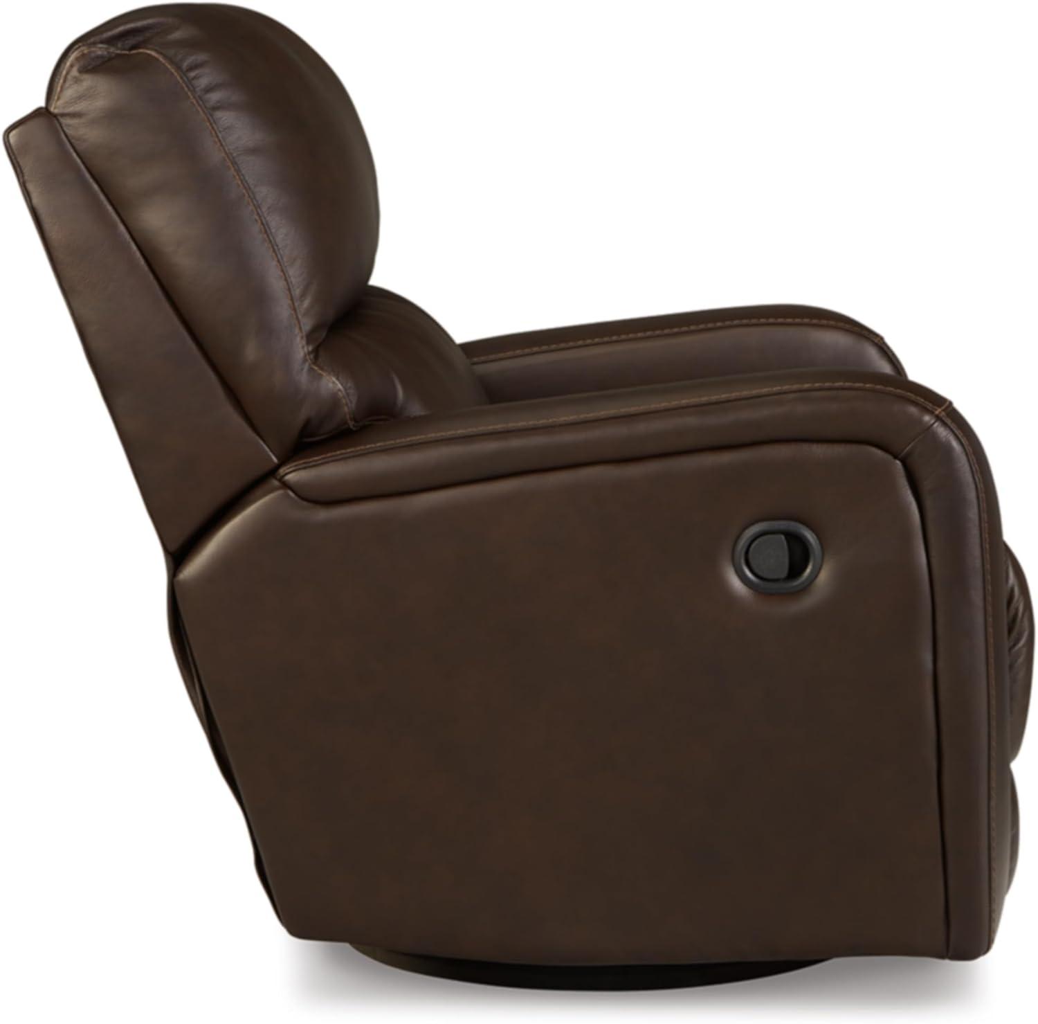 Signature Design by Ashley Emberla Contemporary Leather Match Manual Swivel Glider Rocker Recliner, Dark Brown