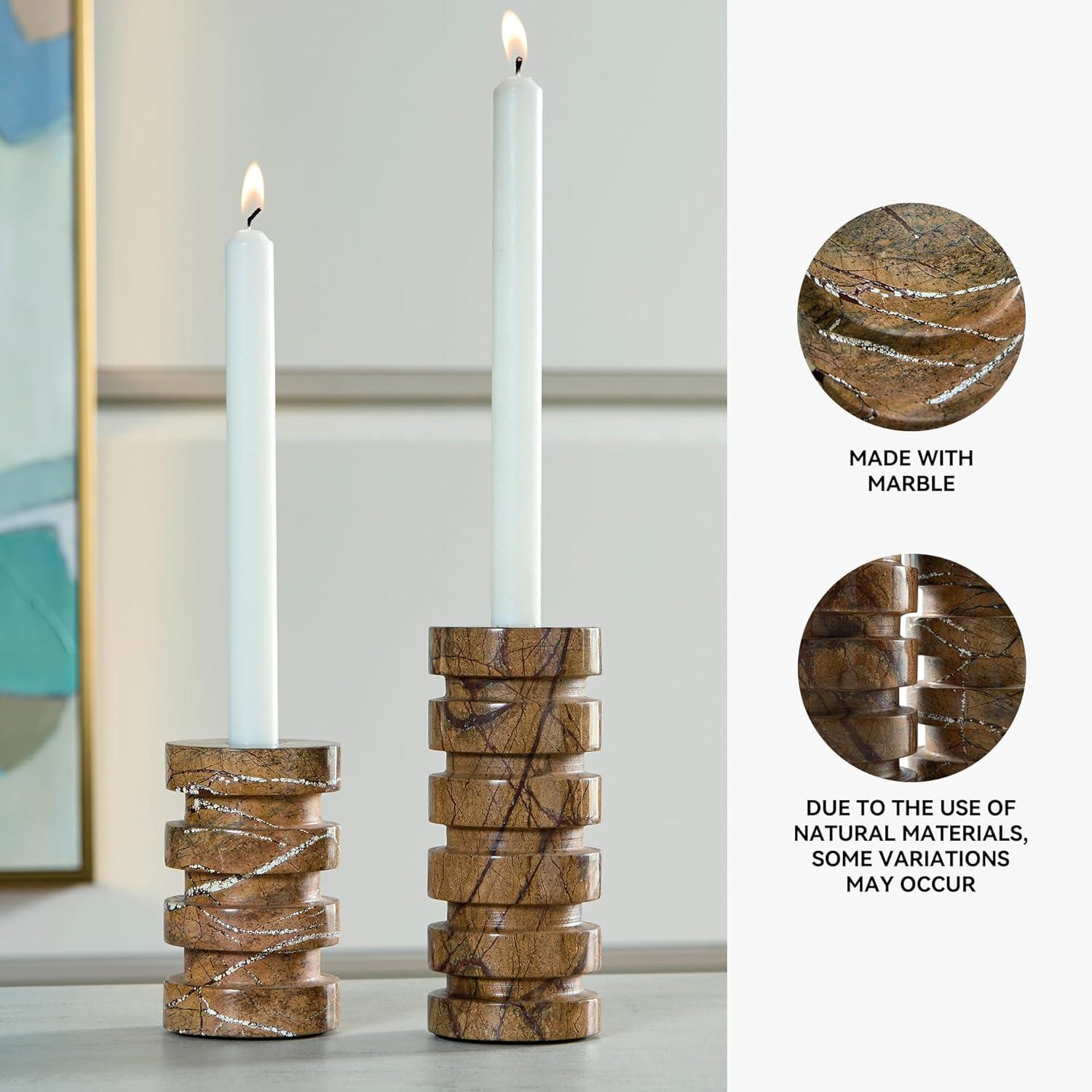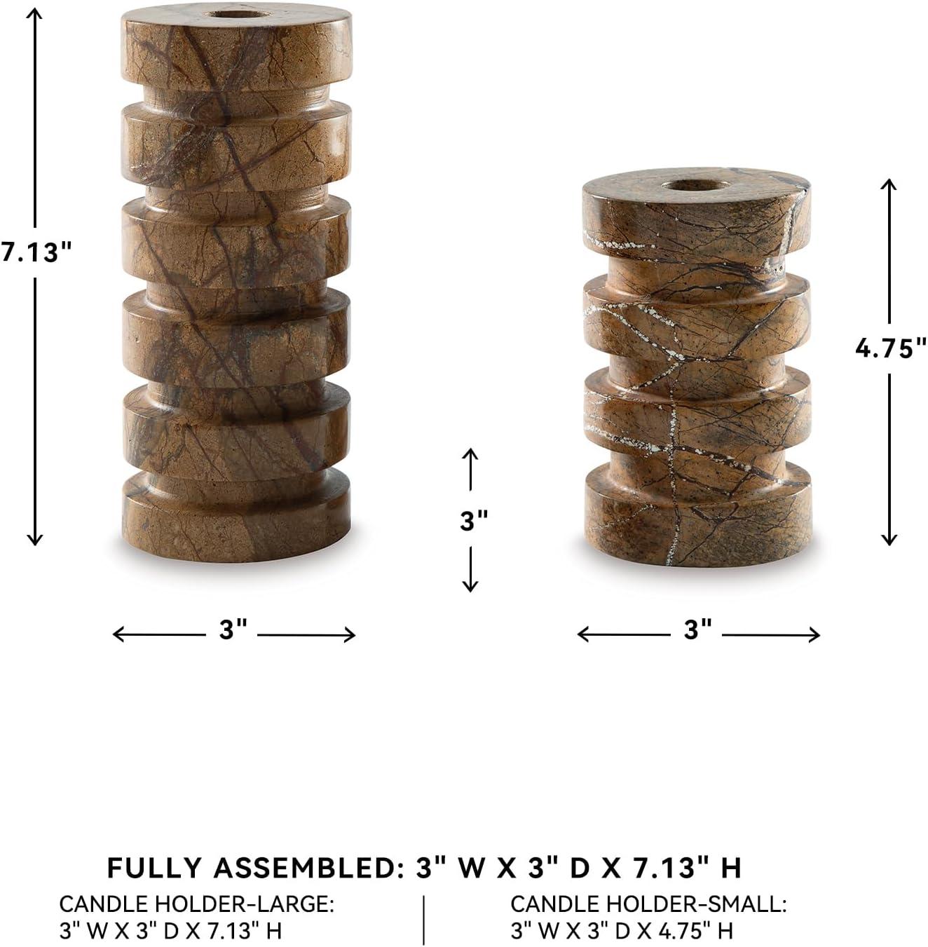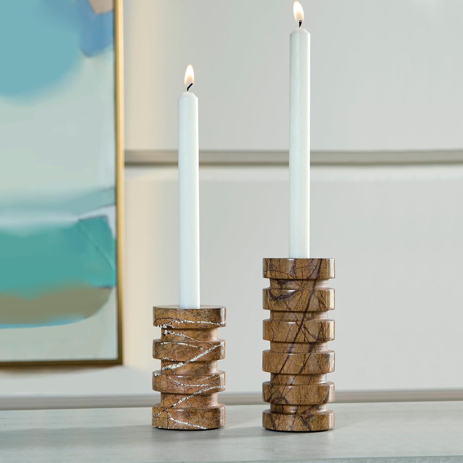 Signature Design by Ashley Emsleyfield Contemporary Marble Candle Holder Set for Taper Candles, Set of 2, Light Brown & Black