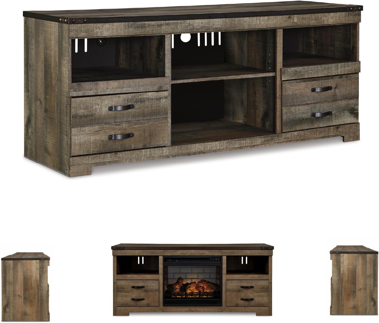 QUALITY CRAFTED: Made with engineered wood & decorative laminate. Includes open storage & storage drawers. Fireplace with 7-level temperature settings & 5 levels of flame brightness; warms up to 1,000 square feet; can operate with or without heat