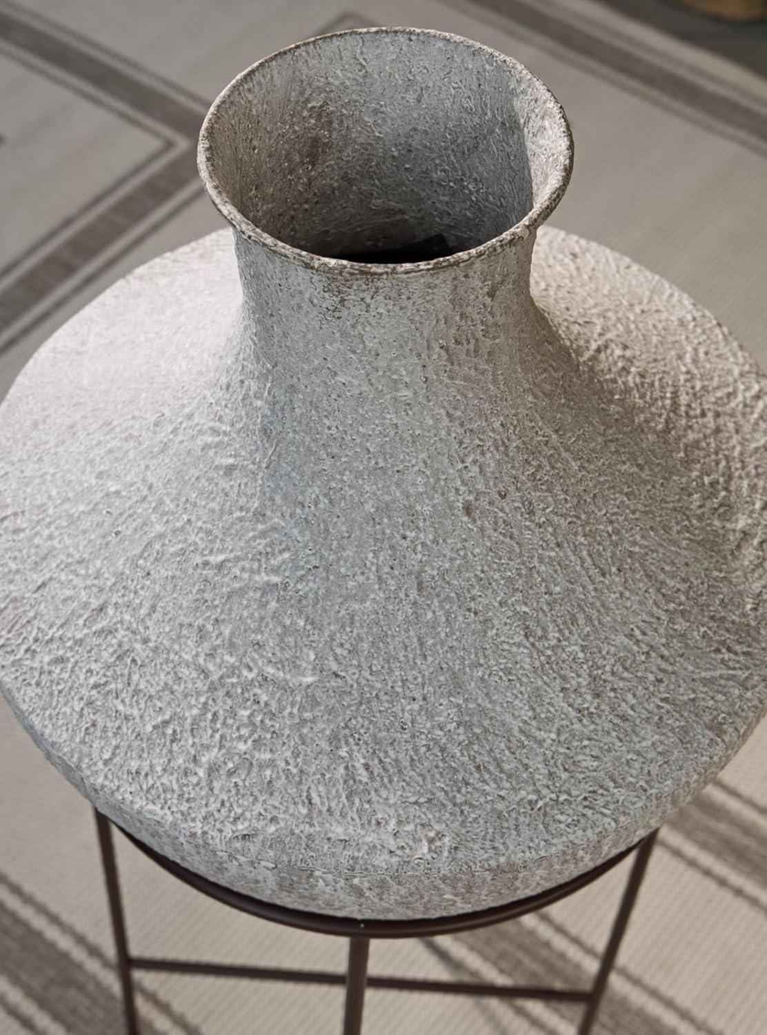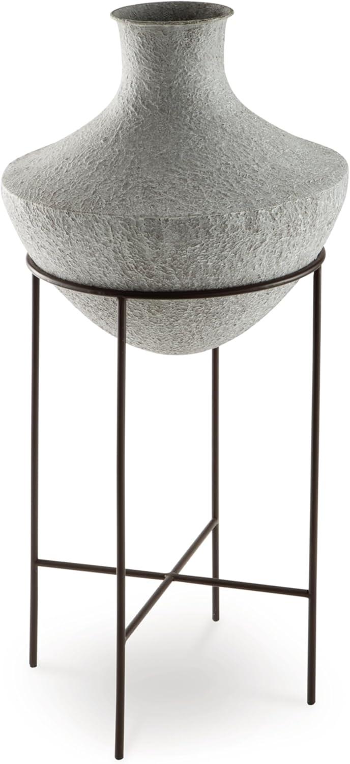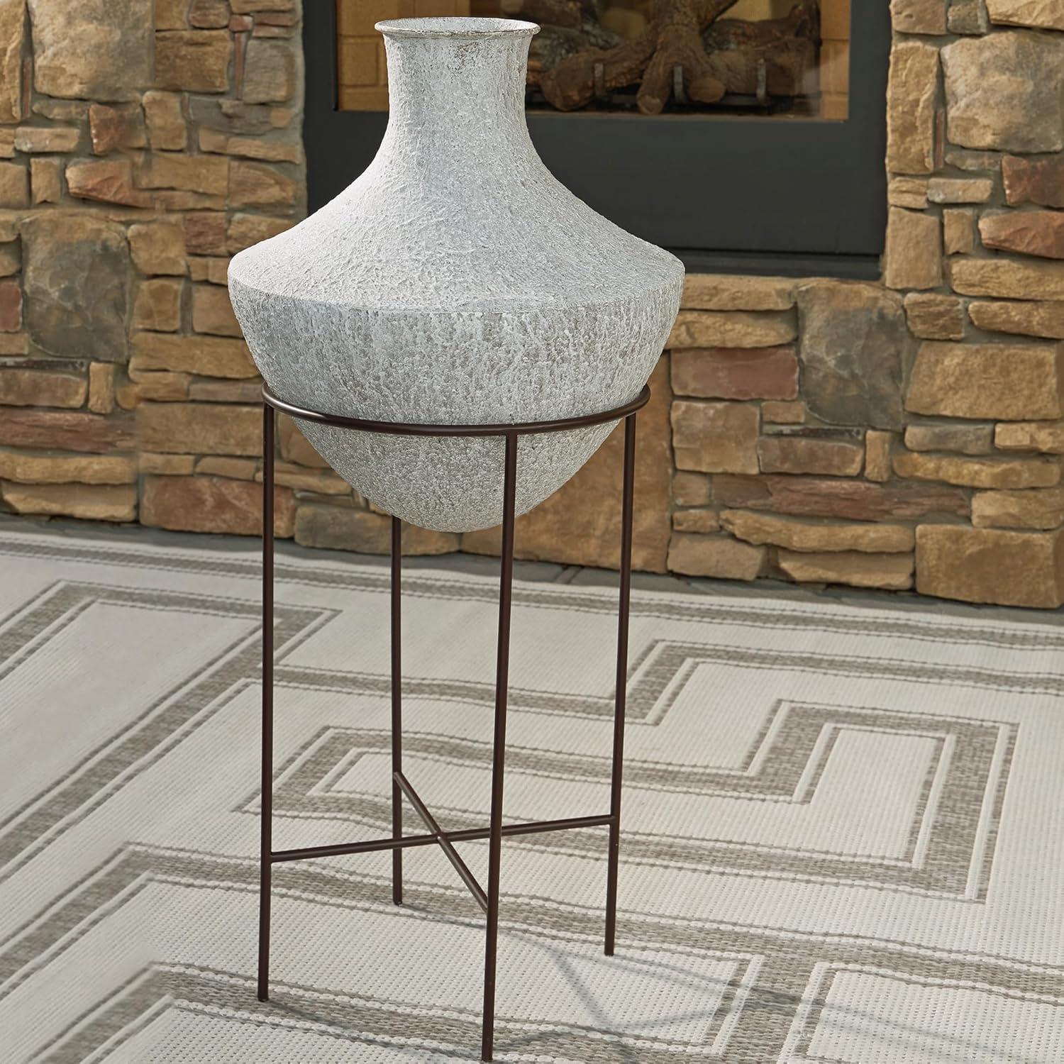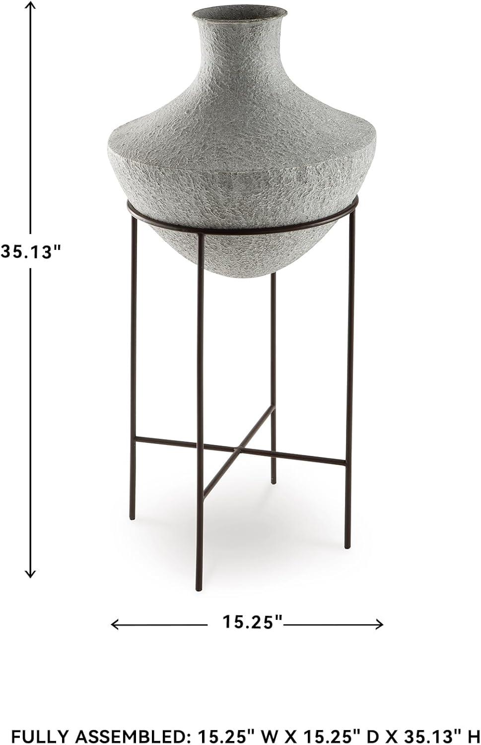 Signature Design by Ashley Estonbank Casual Indoor Distressed Metal Floor Vase with Stand, White & Black(Large)