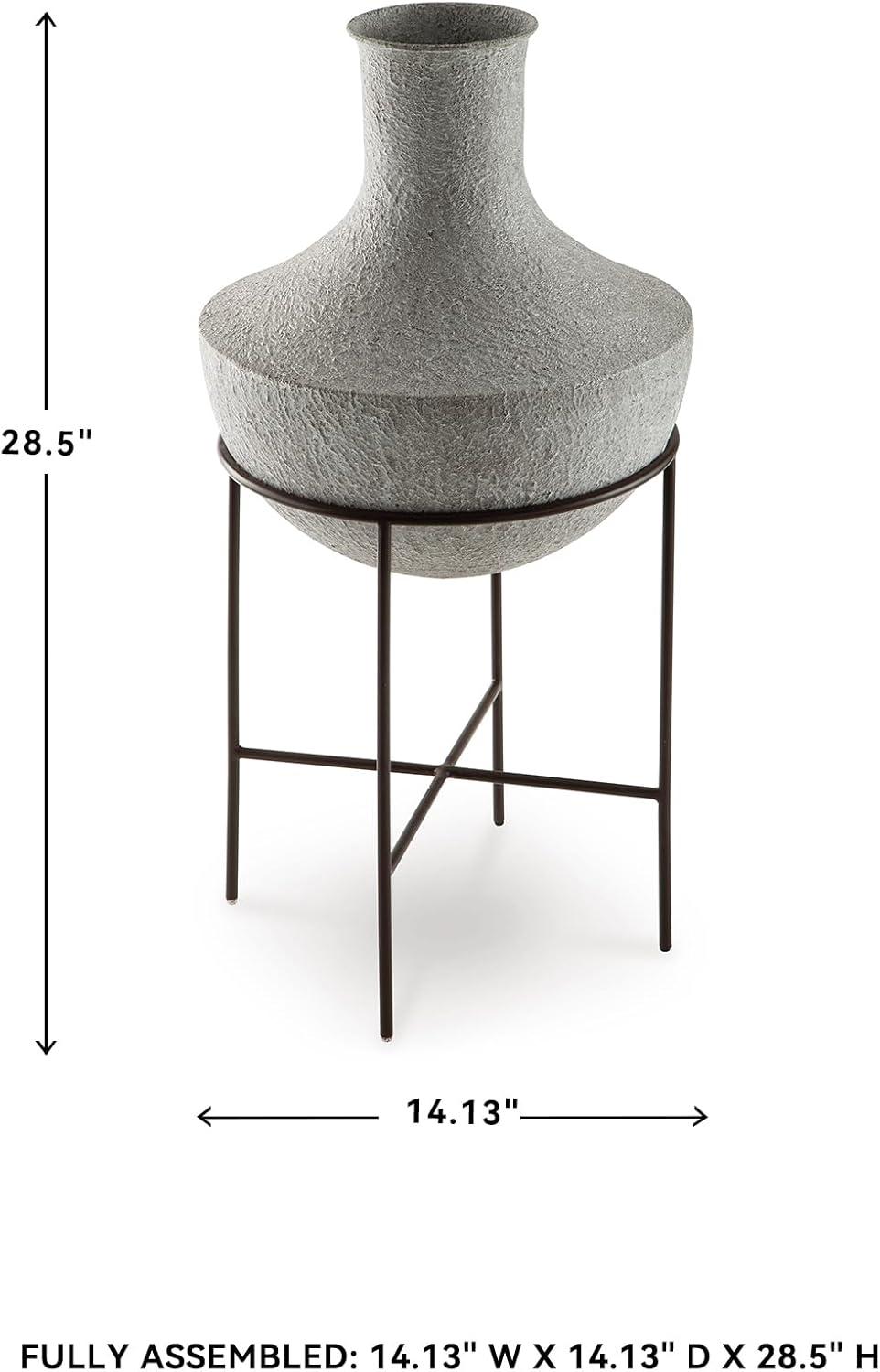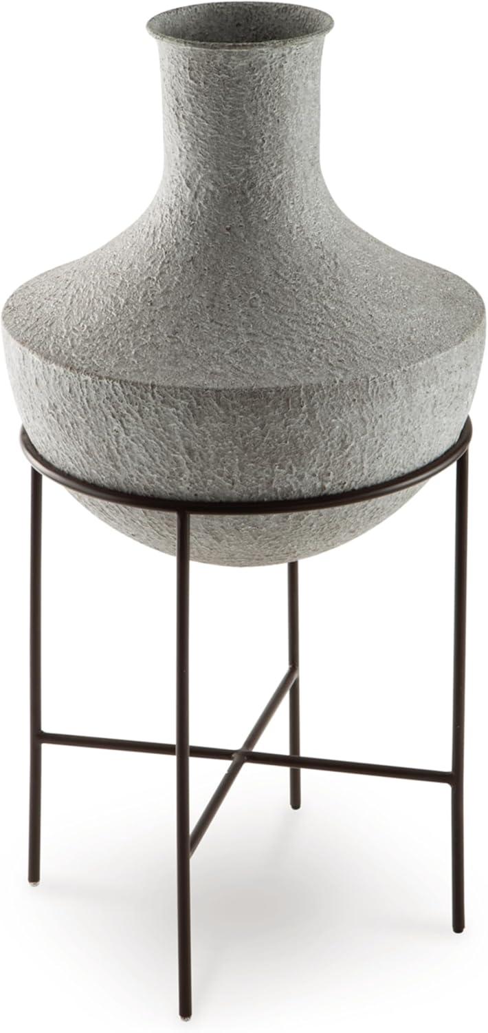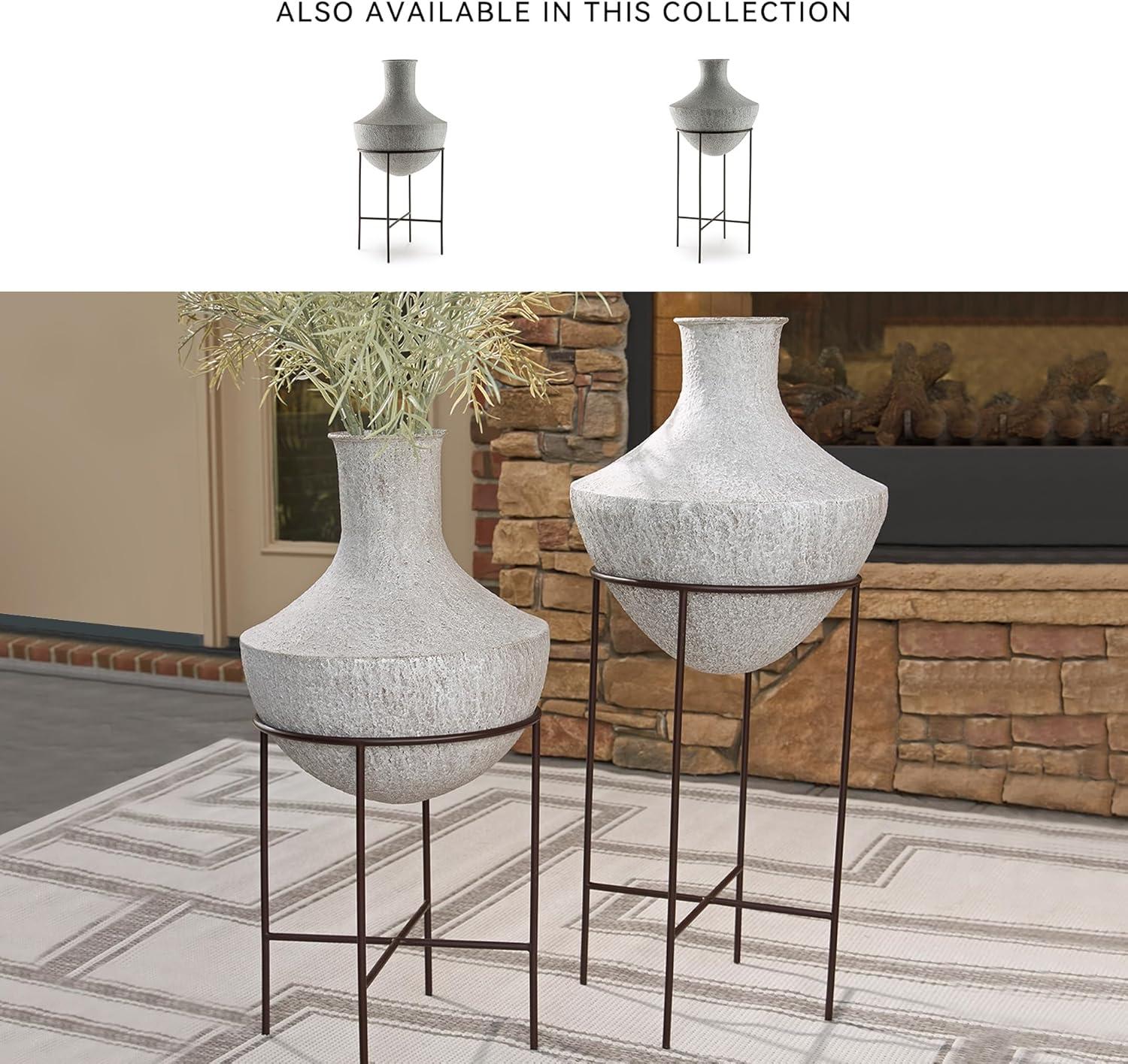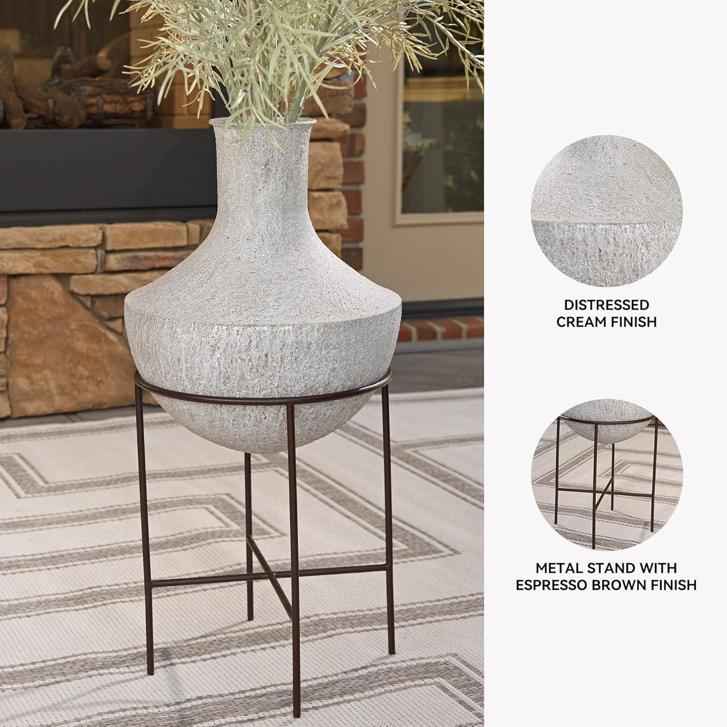 Signature Design by Ashley Estonbank Casual Indoor Distressed Metal Floor Vase with Stand, White & Black(Medium)