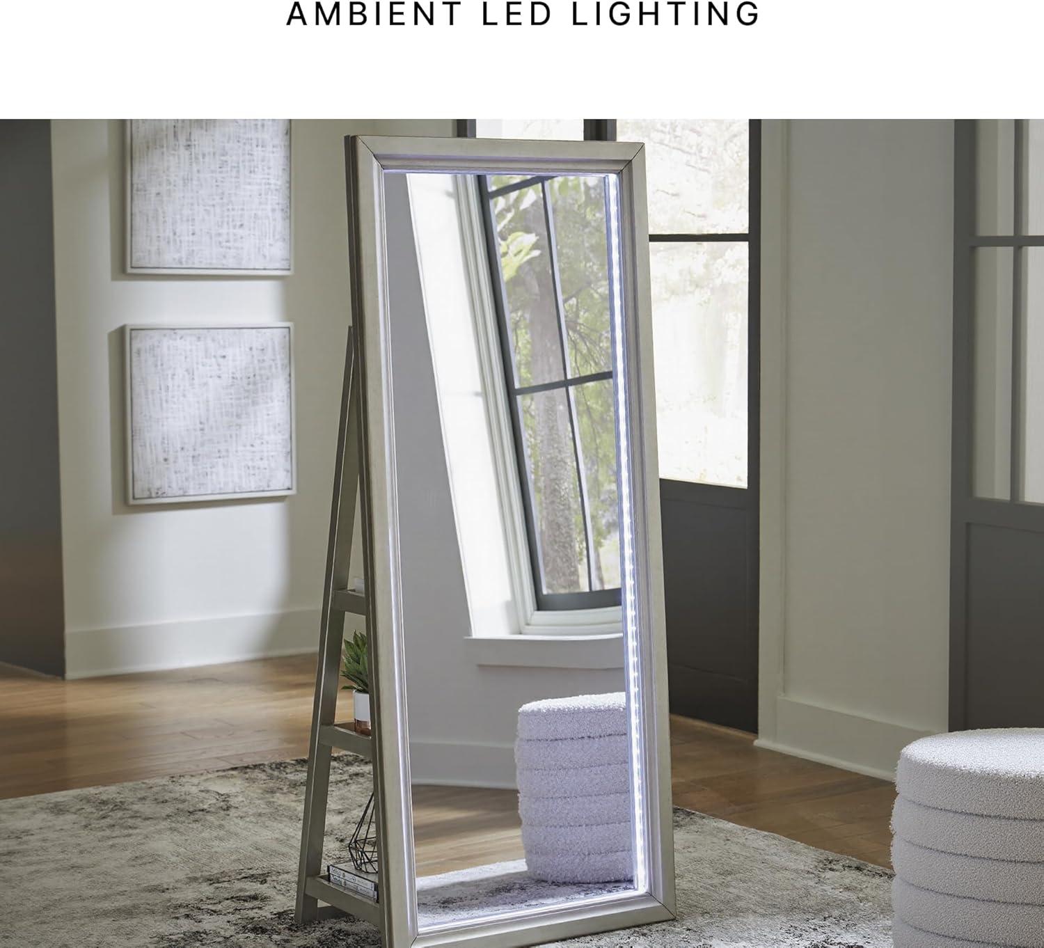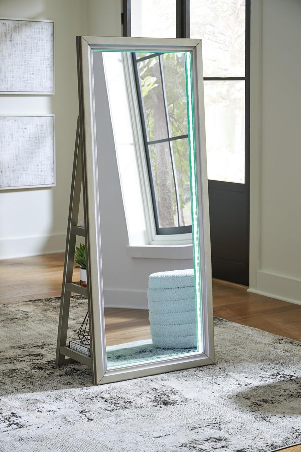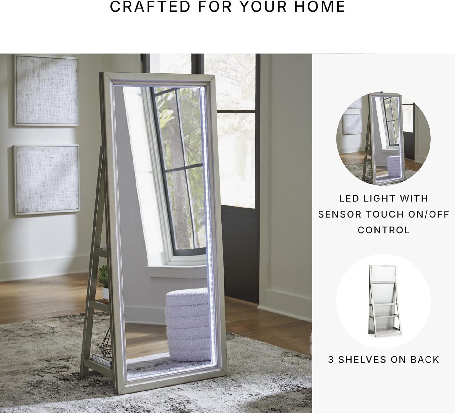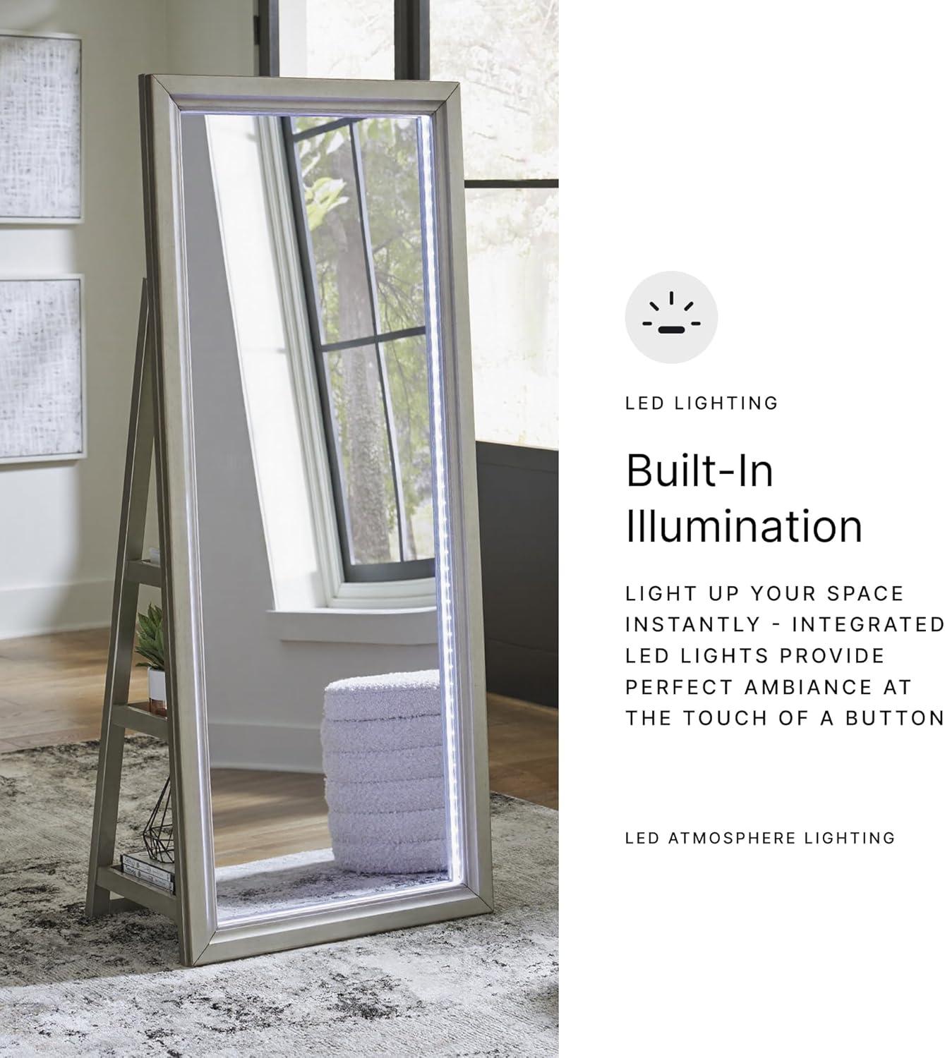Signature Design by Ashley Evesen Casual Full Length Framed Floor Standing Mirror with Shelf Storage and LED Lights, Metallic