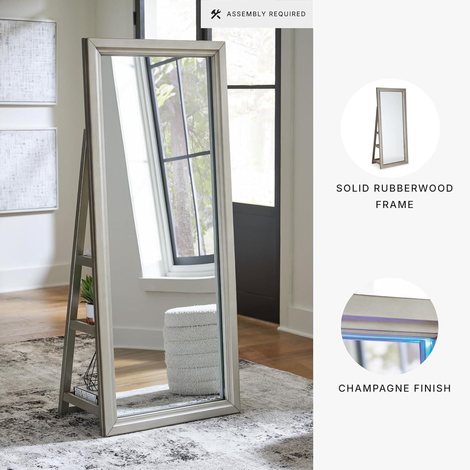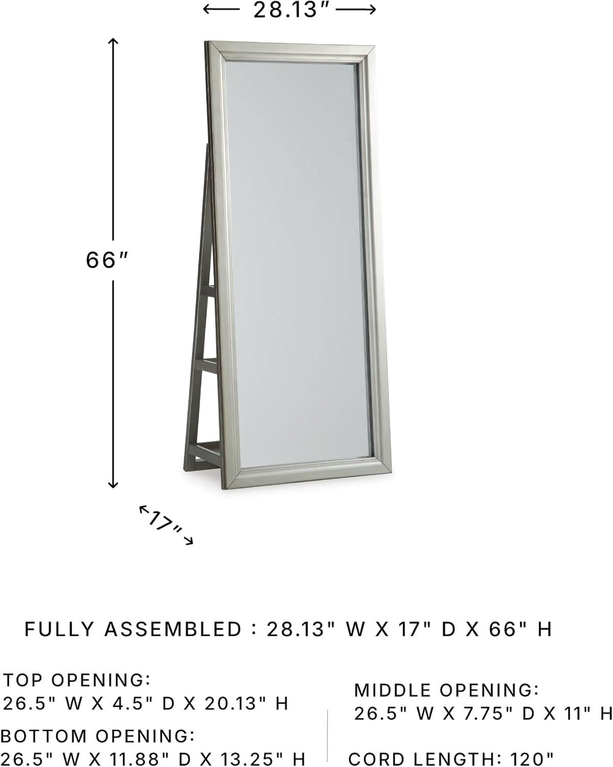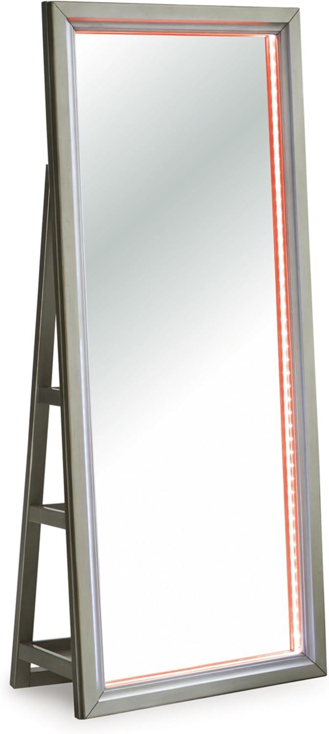 Signature Design by Ashley Evesen Casual Full Length Framed Floor Standing Mirror with Shelf Storage and LED Lights, Metallic