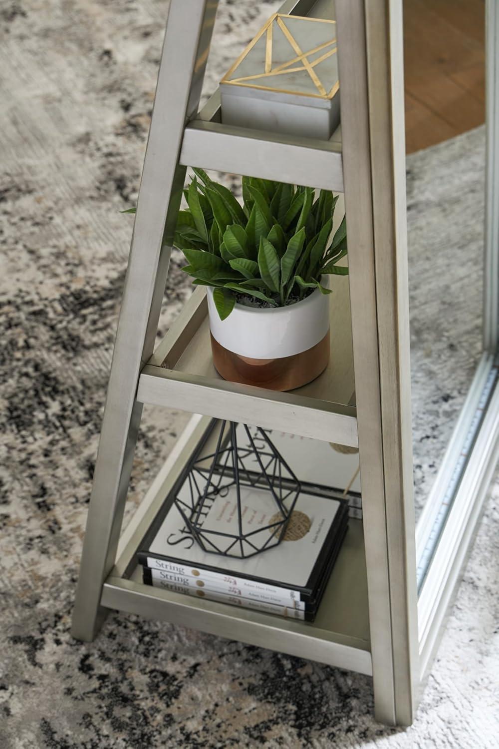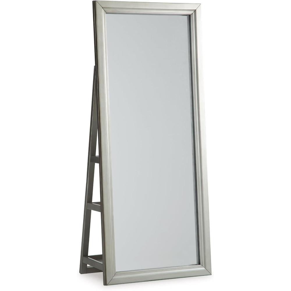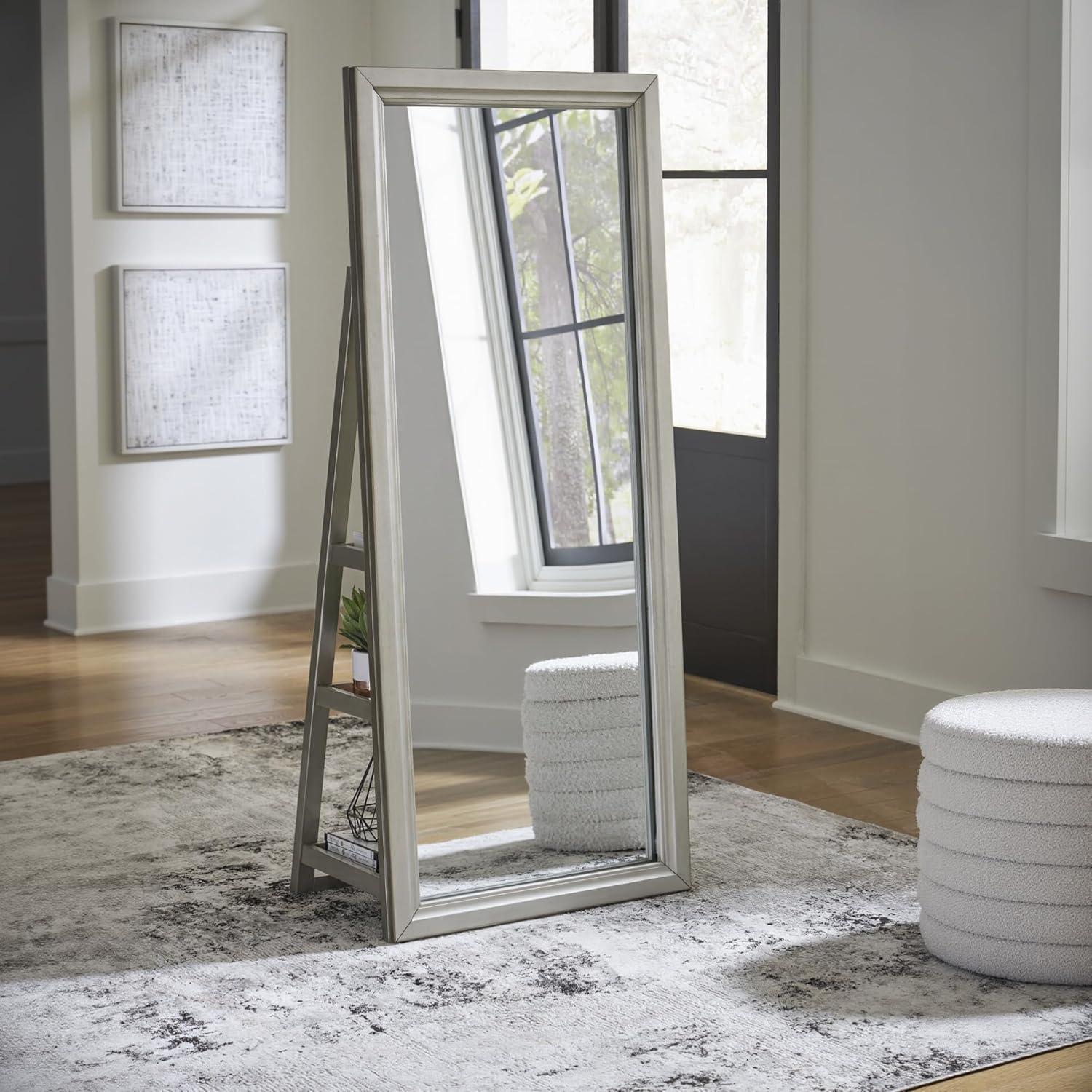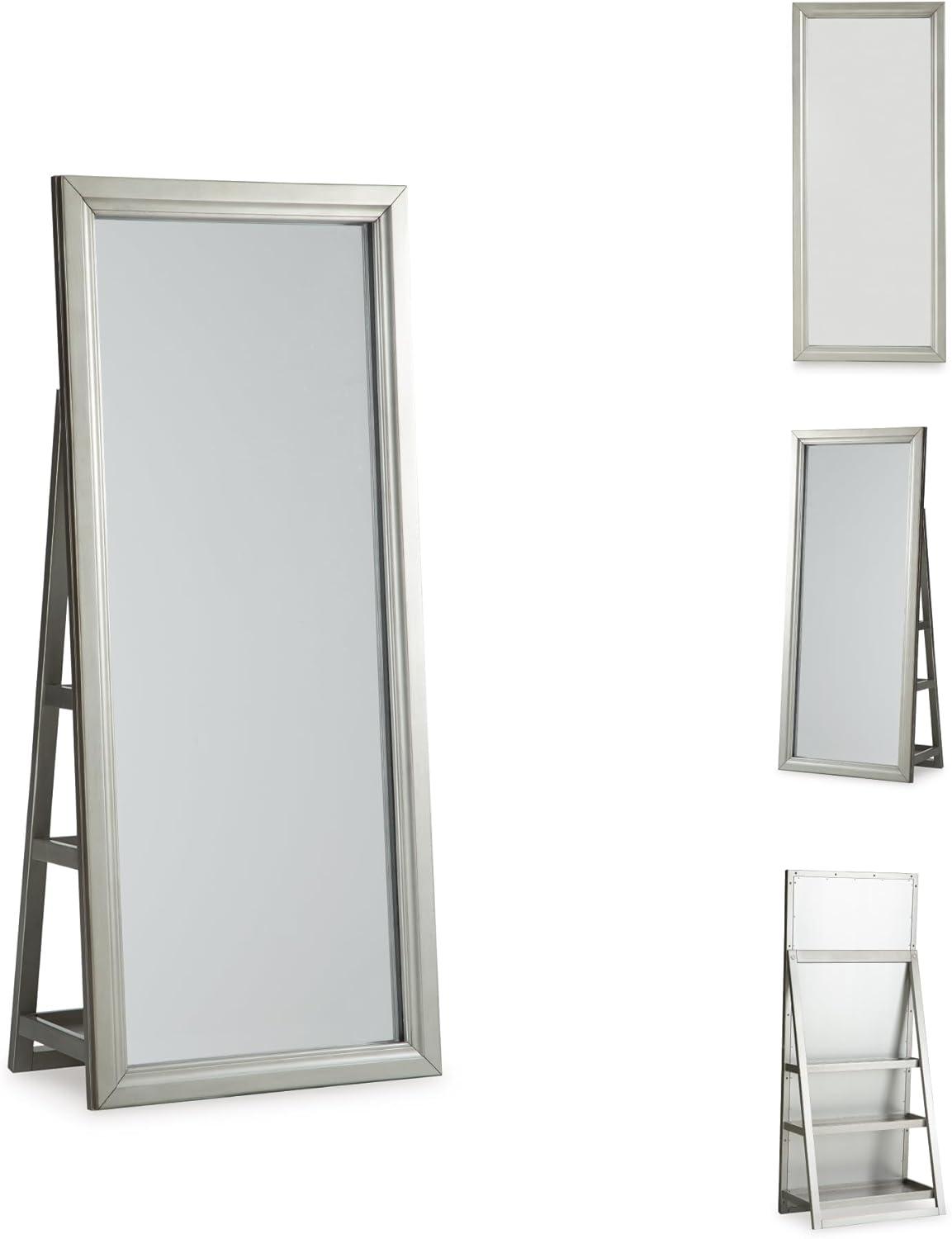 Signature Design by Ashley Evesen Casual Full Length Framed Floor Standing Mirror with Shelf Storage and LED Lights, Metallic