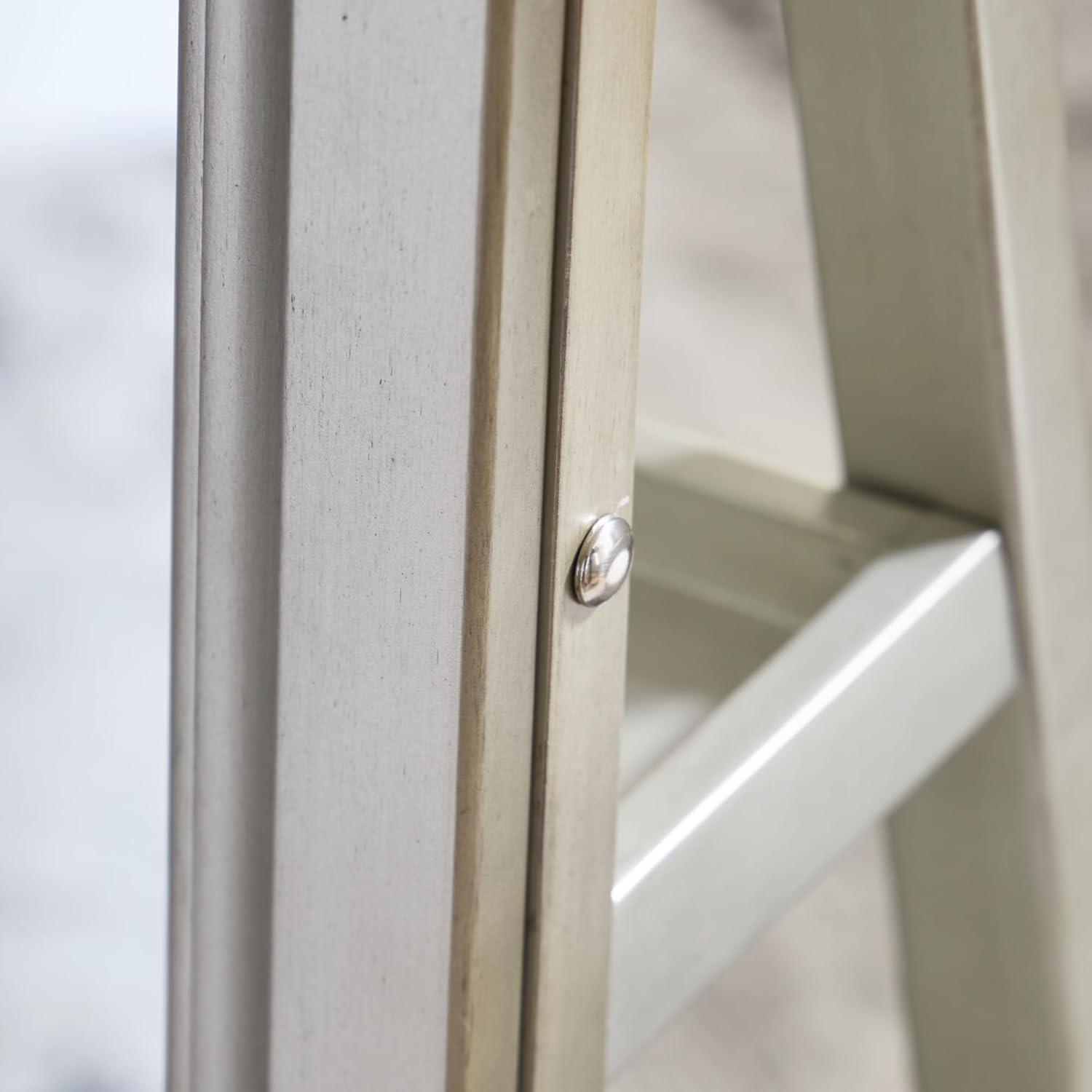 FLOOR MIRROR WITH STORAGE: This mirror makes on-the-go glam effortless. Complete outfits with accessories in an instant, thanks to easy-to-access shelving on the back. Sleek LED lighting around the frame makes last-minute makeup touchups easy