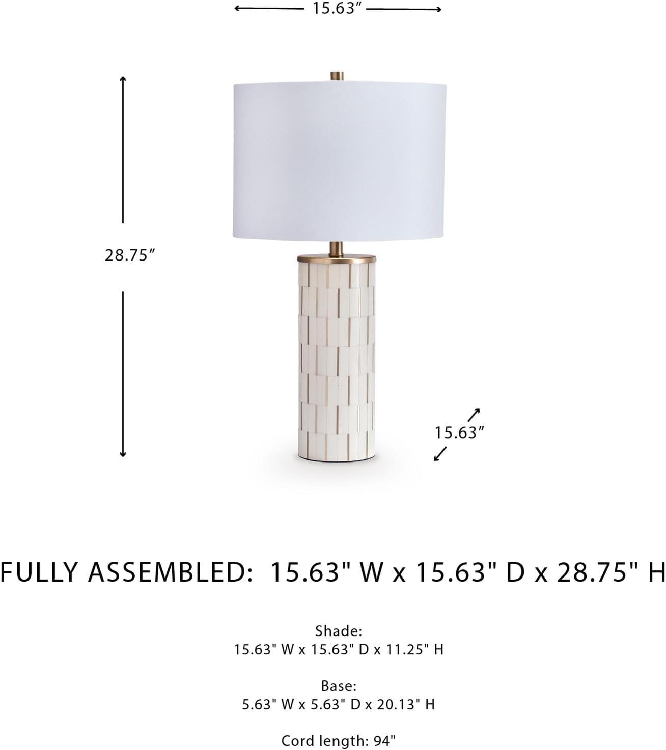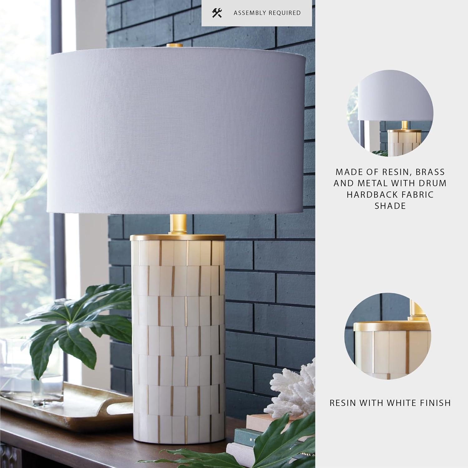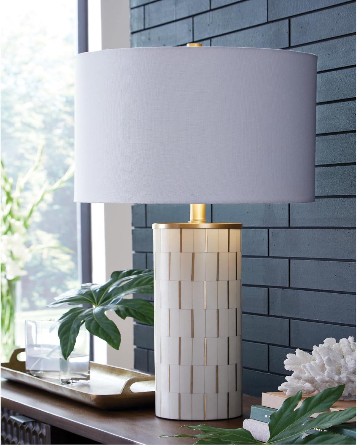 Signature Design by Ashley Faridworth Contemporary Table Lamp with 3-Way Switch and Drum Shade, White & Gold