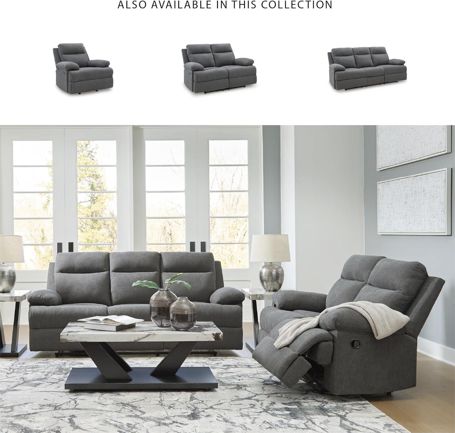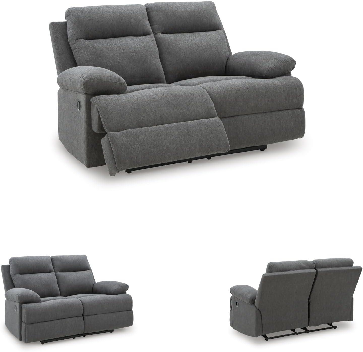 Signature Design by Ashley First Base Contemporary Faux Leather Manual Reclining Loveseat, Gray(Charcoal)