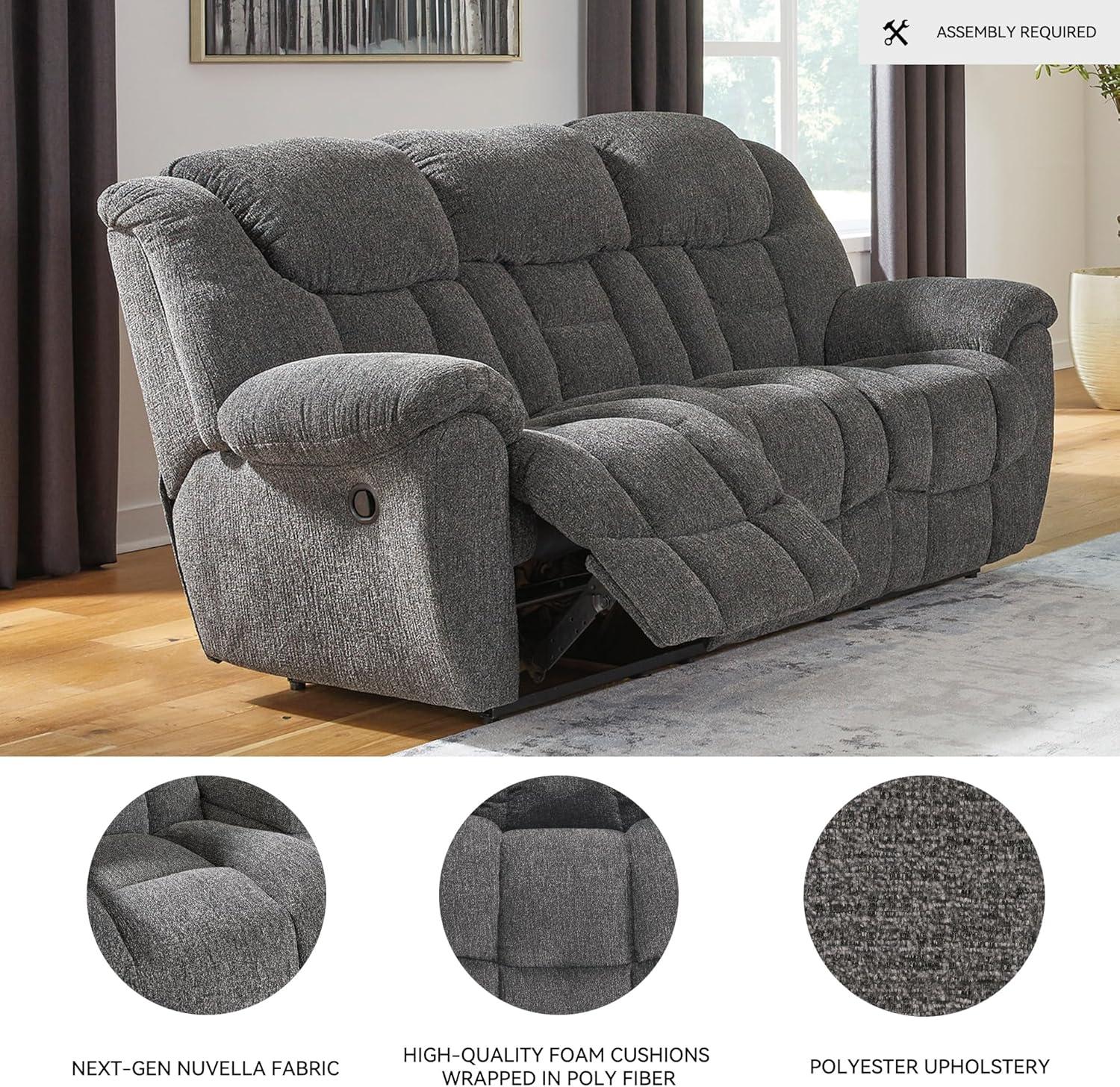 Signature Design by Ashley Foreside Contemporary Stain Resistant Manual Reclining Sofa, Gray(Reclining Sofa)