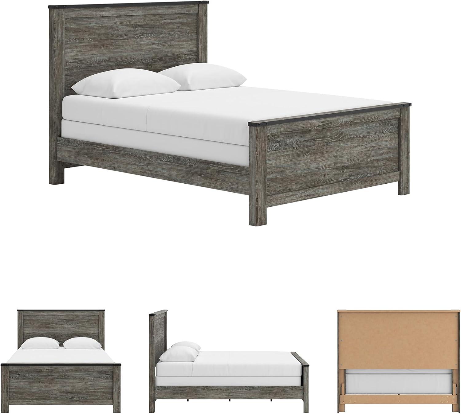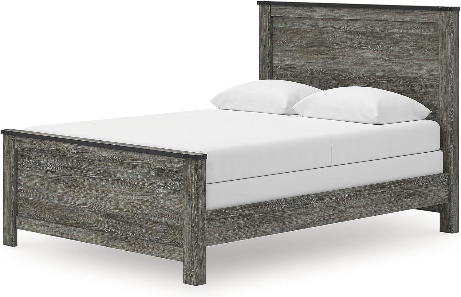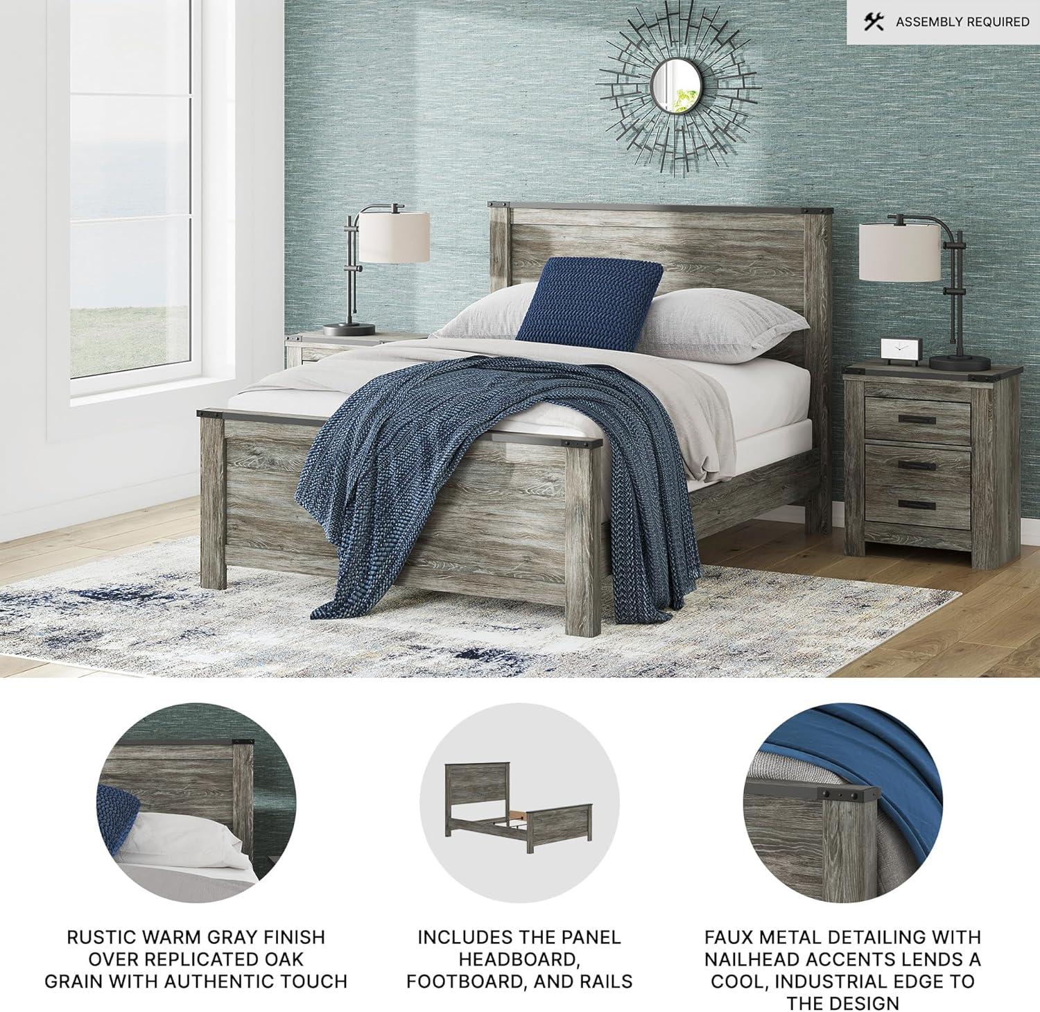 Signature Design by Ashley Frandern Industrial Panel Bed with Nailhead Accents, Foundation or Box Spring Needed, Twin, Gray(Queen Panel Bed)
