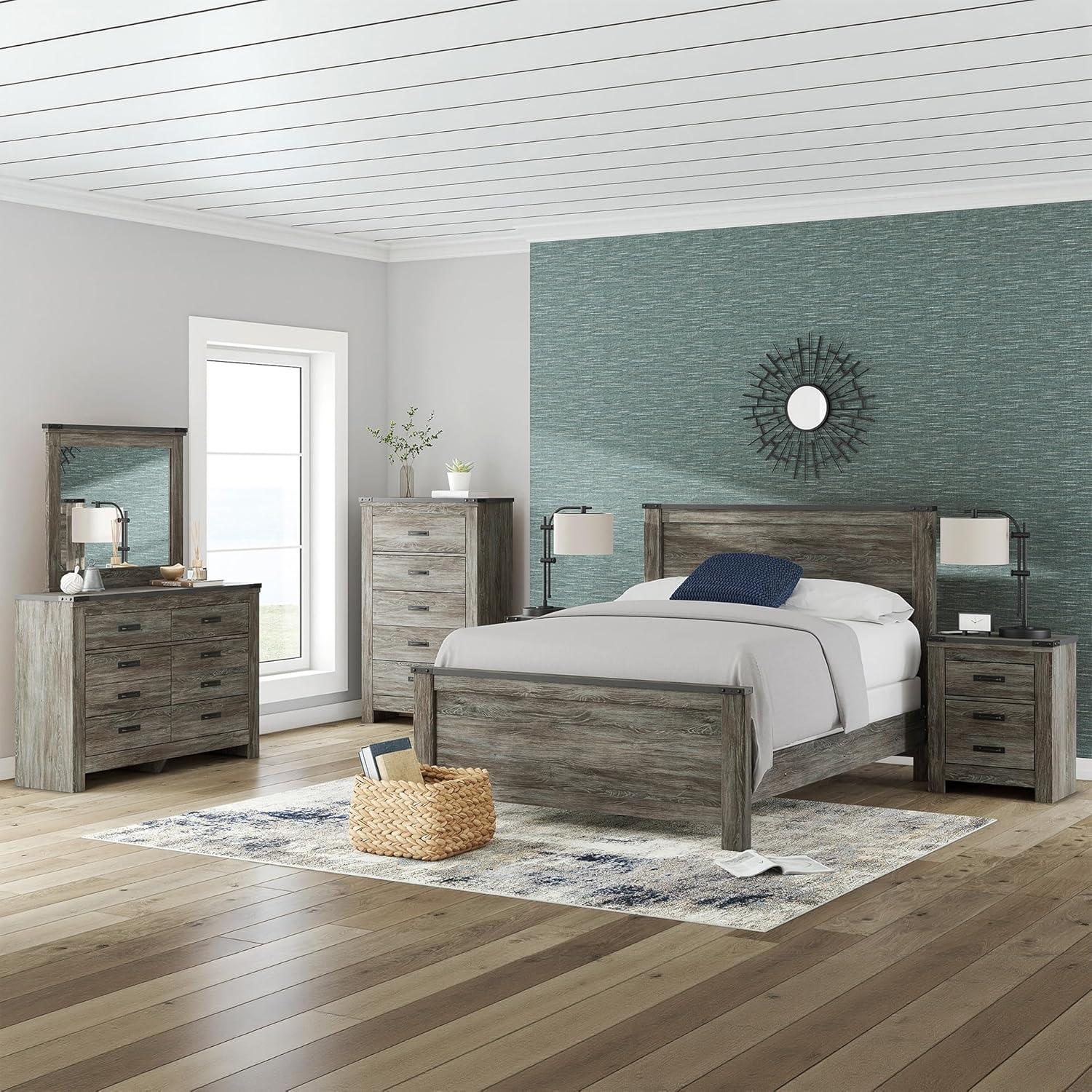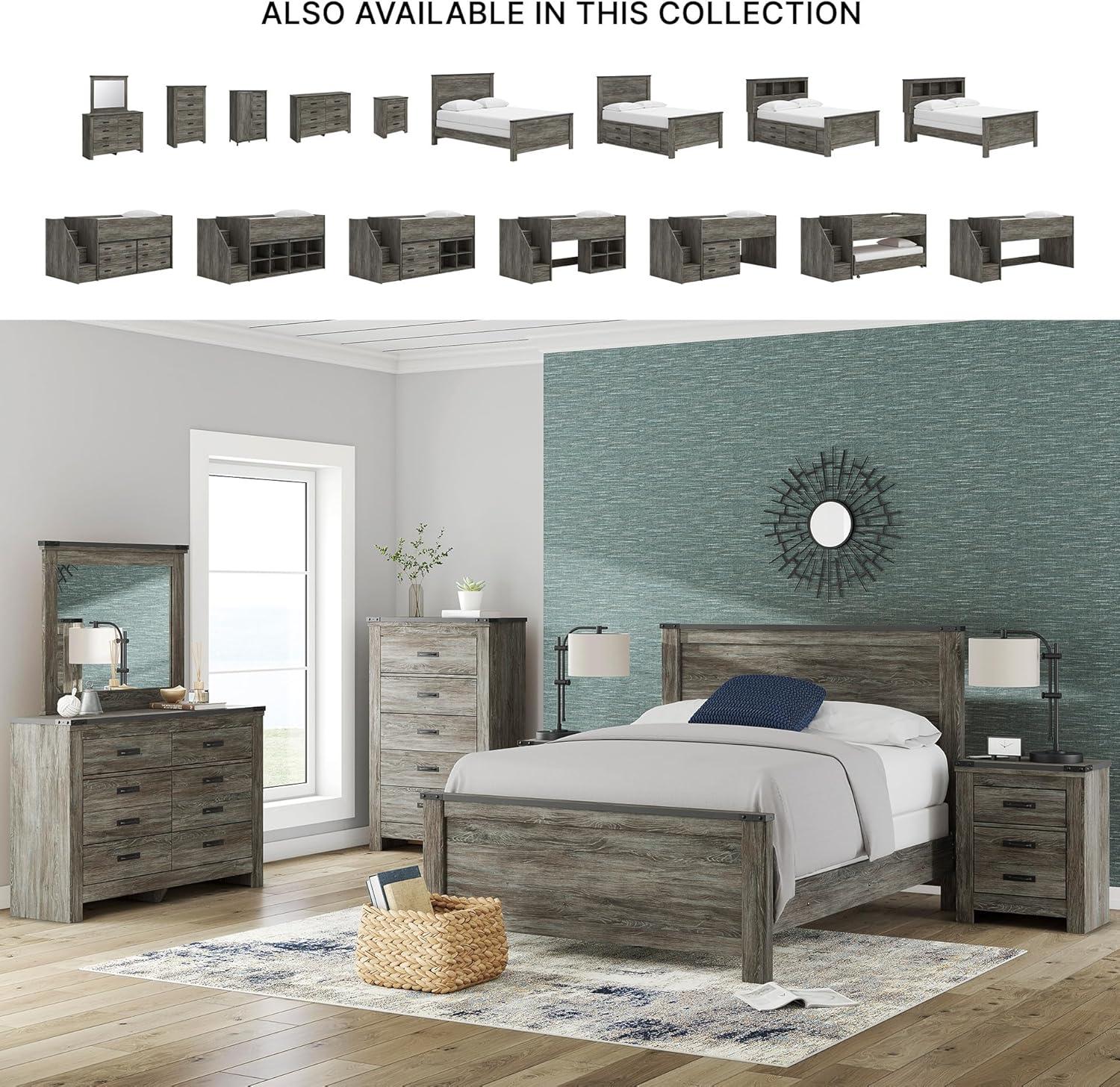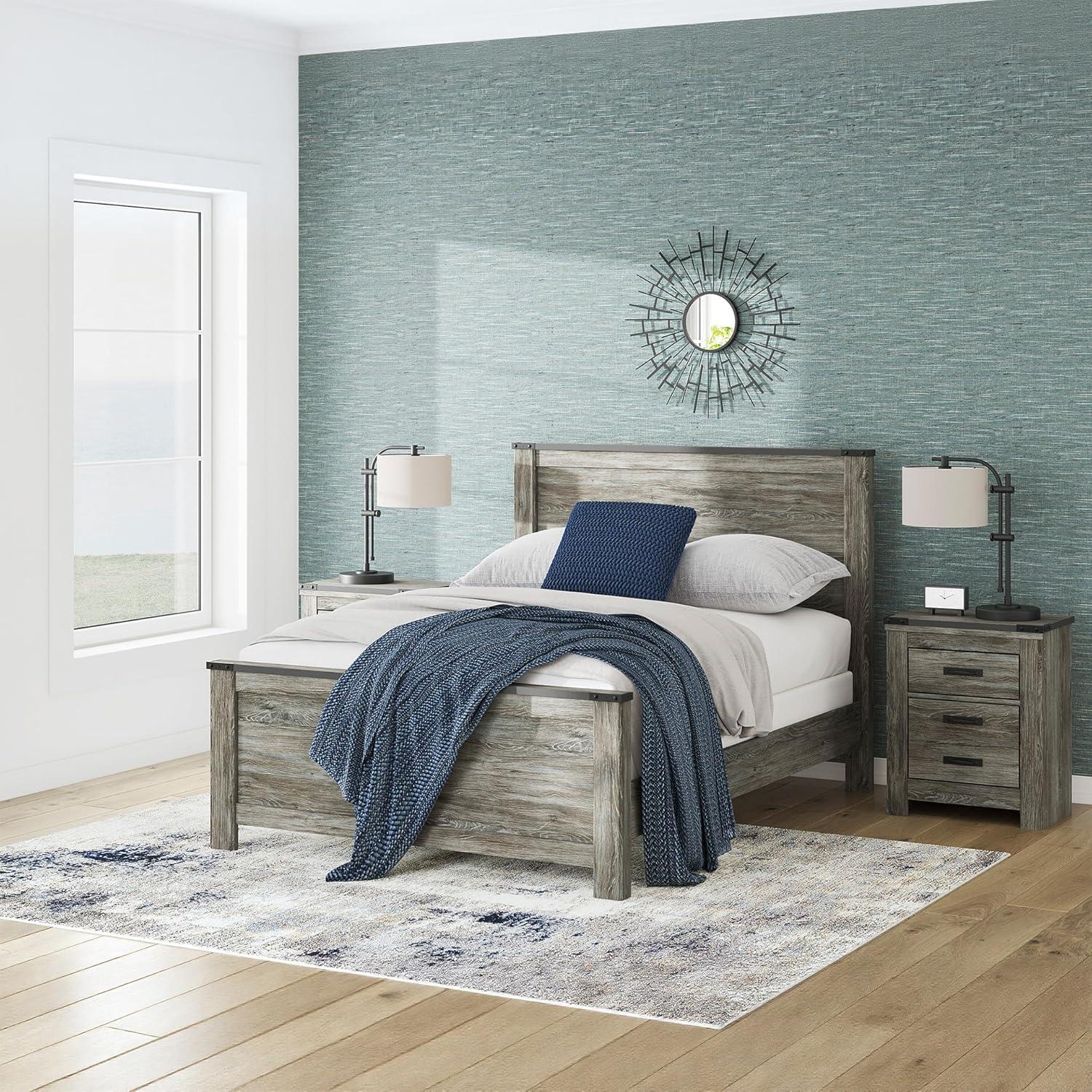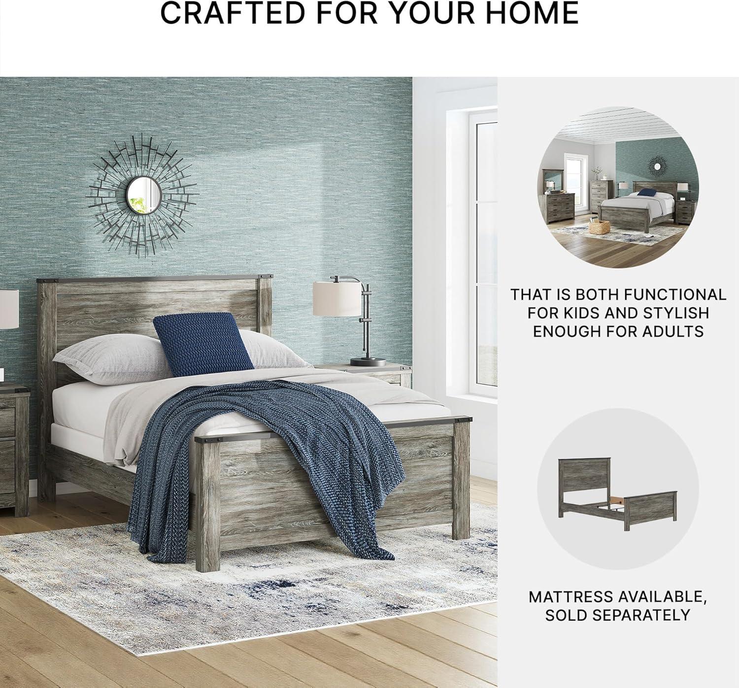 Signature Design by Ashley Frandern Industrial Panel Bed with Nailhead Accents, Foundation or Box Spring Needed, Twin, Gray(Queen Panel Bed)