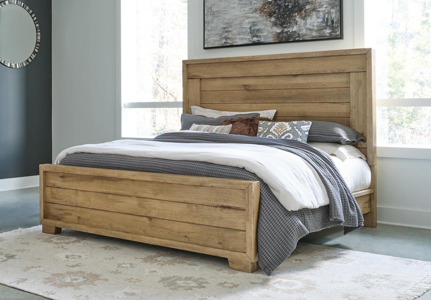 Signature Design by Ashley Galliden Contemporary California King Panel Bed, Foundation or Box Spring Needed, Light Brown