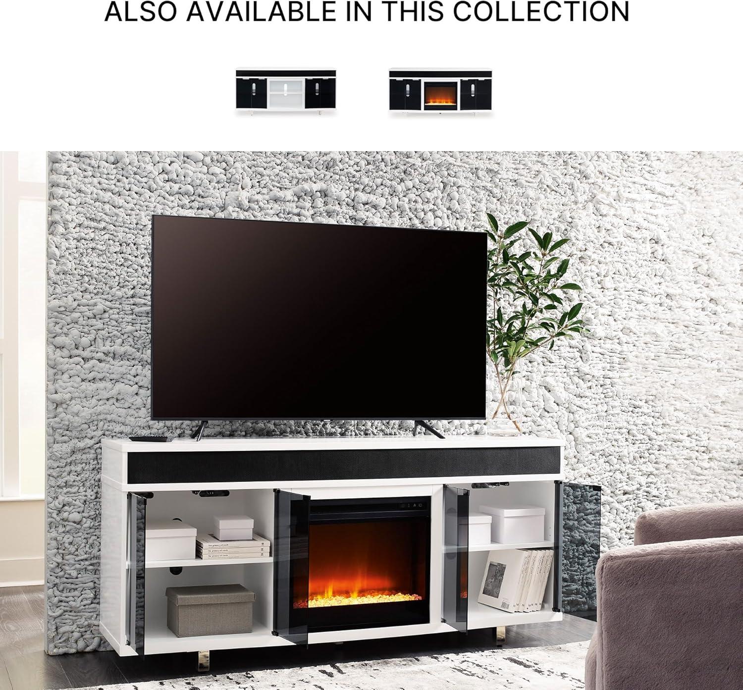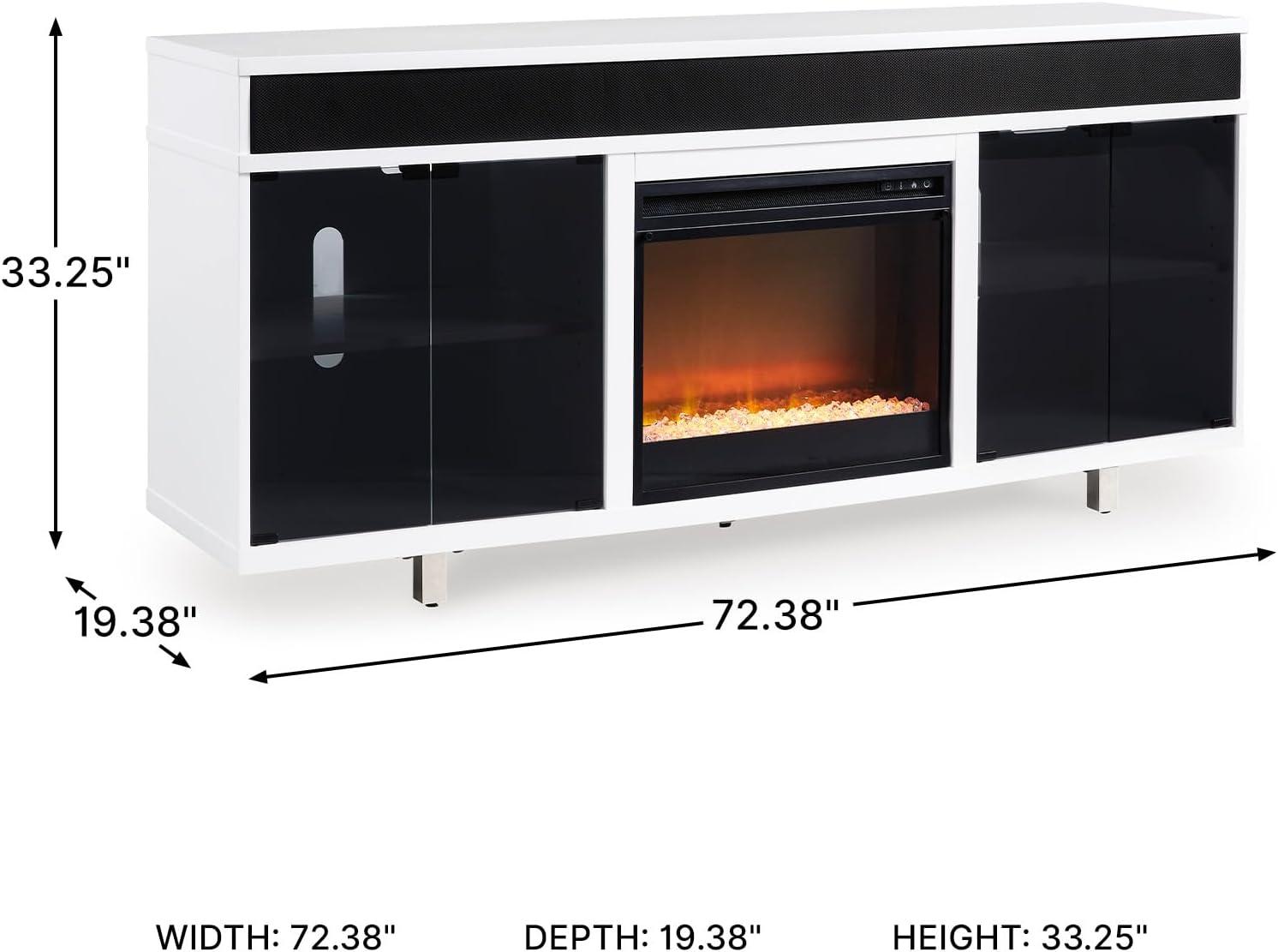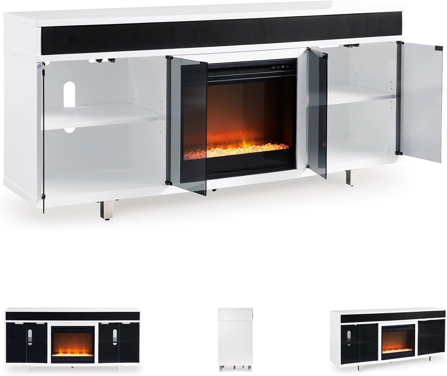 Signature Design by Ashley Gardoni Contemporary 72″ TV Stand with Electric Fireplace for TVs up to 82″, Black/White