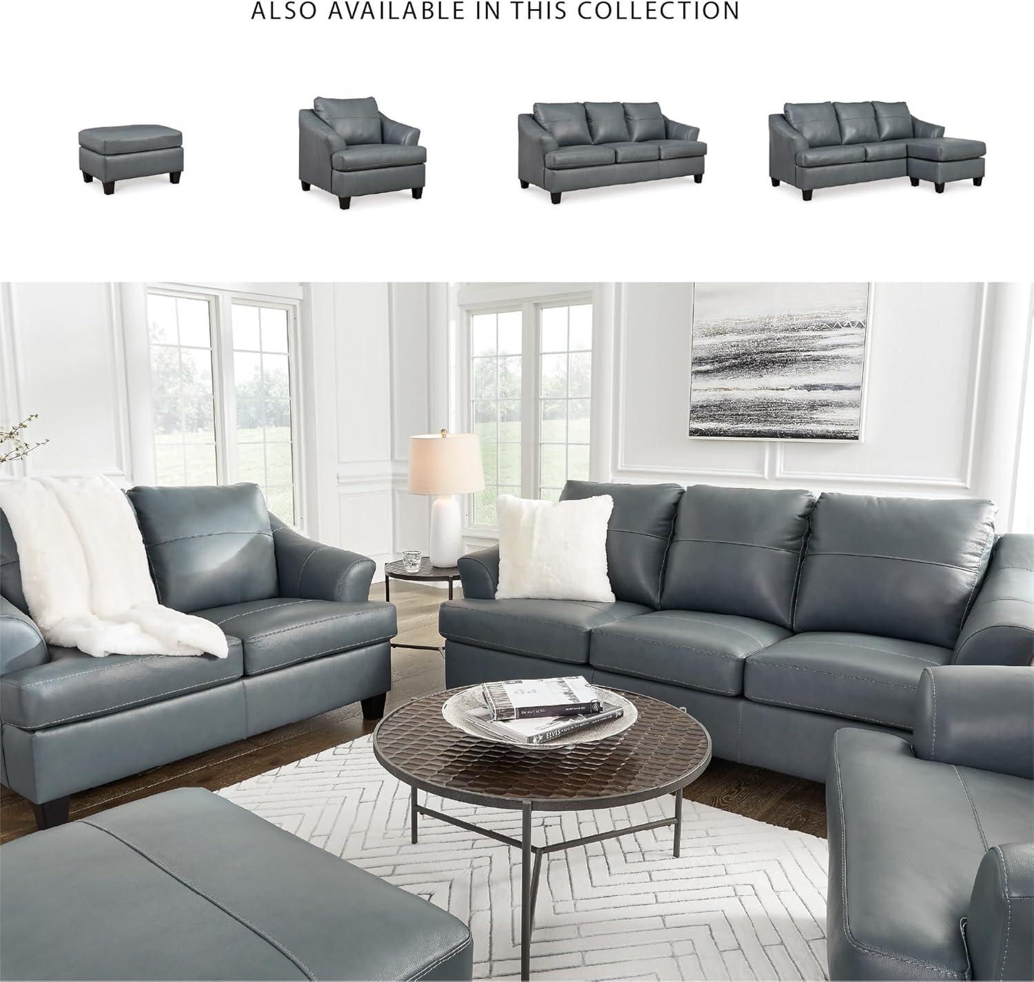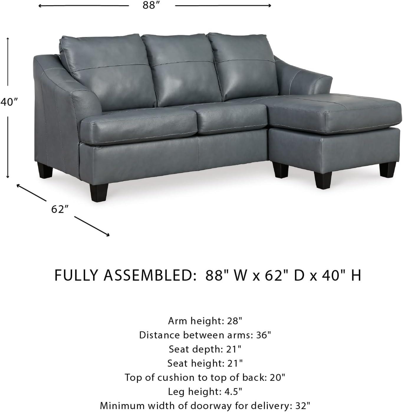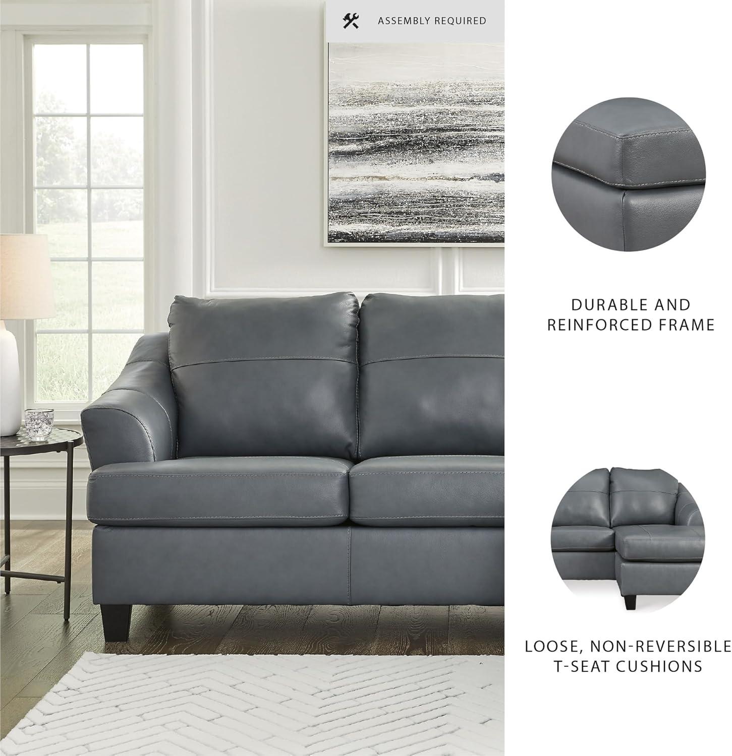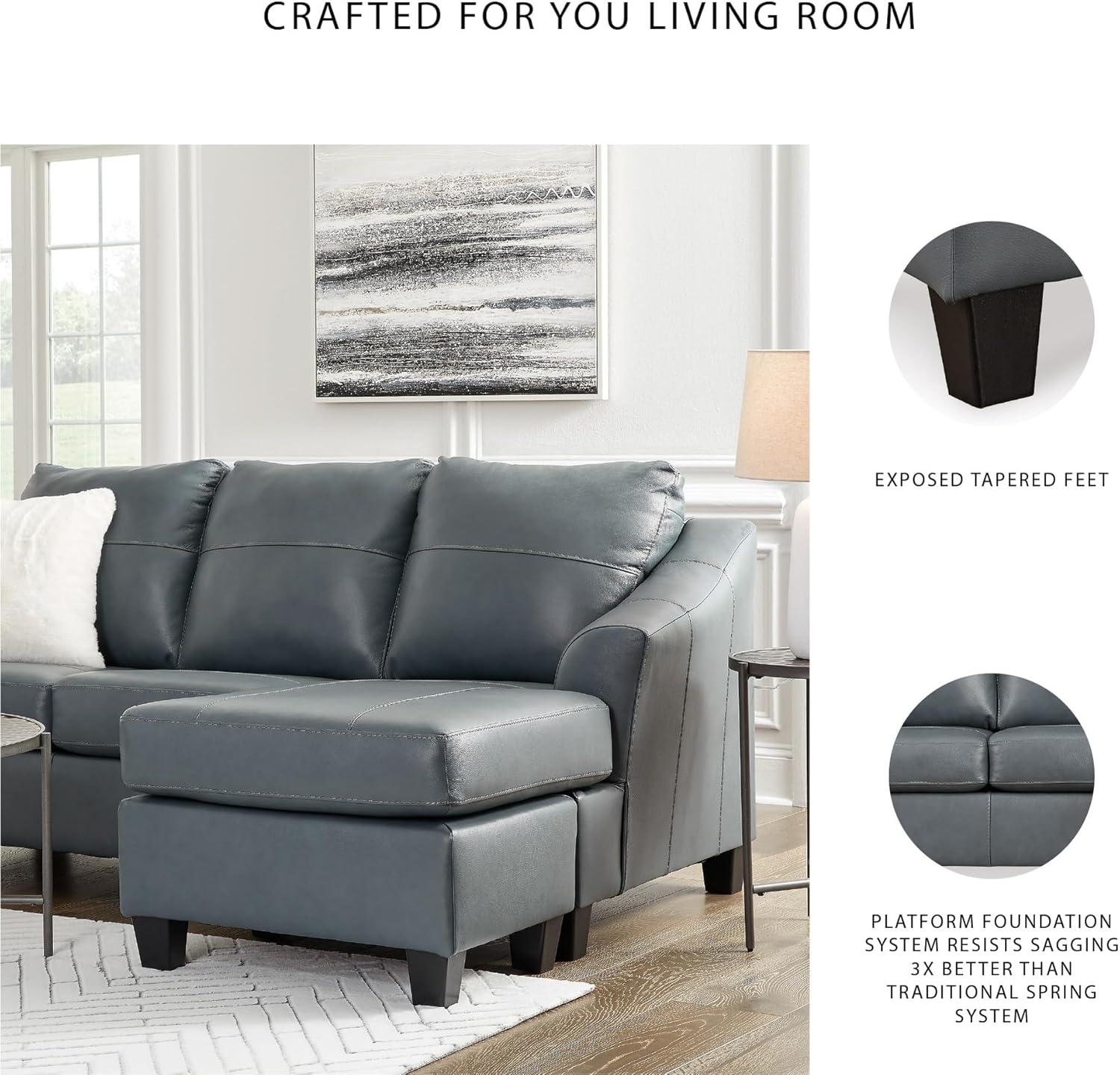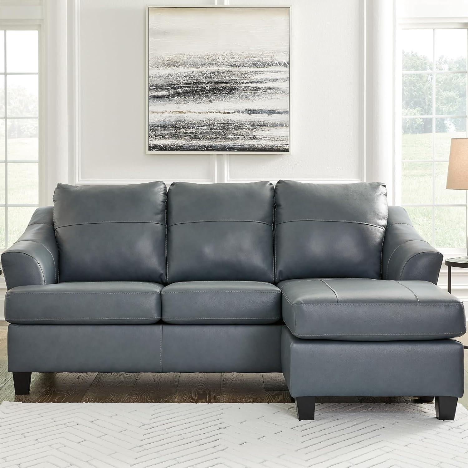 Signature Design by Ashley Genoa Modern Leather Sectional Sofa Couch with Chaise Lounge, Blue(Blue)