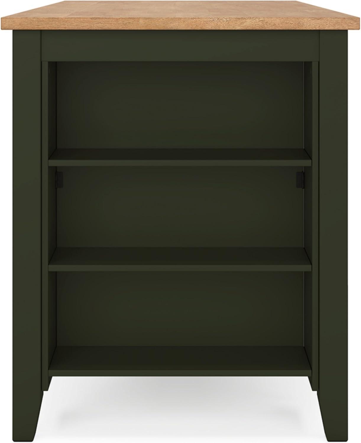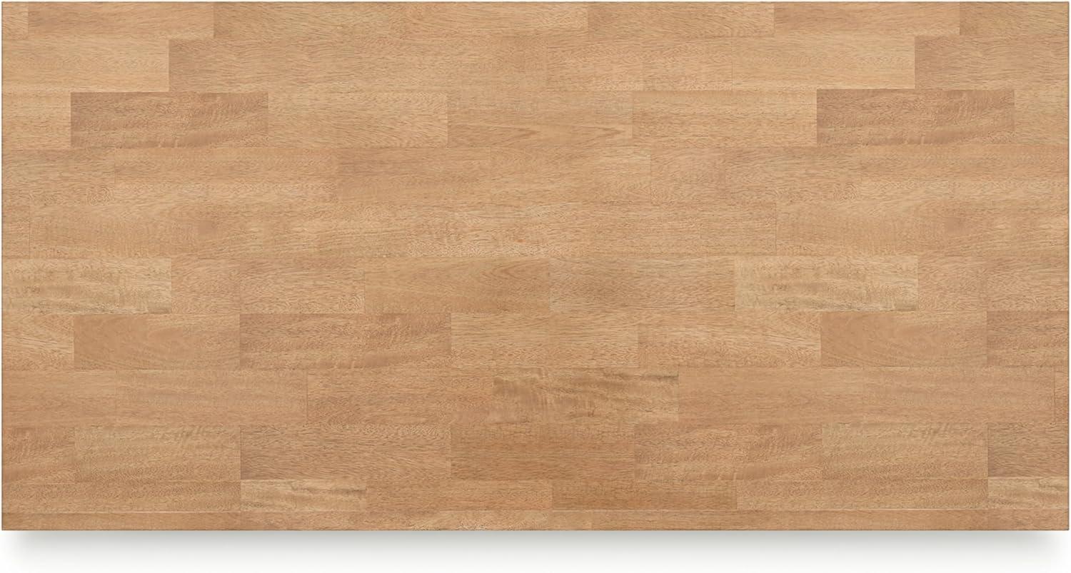 QUALITY CRAFTED: Made with rubberwood solids, mango wood veneer and MDF substrate. Butcher block veneer top. Light natural mango wood finish with a dark casual brown. 3 storage shelves. Seats up to 4