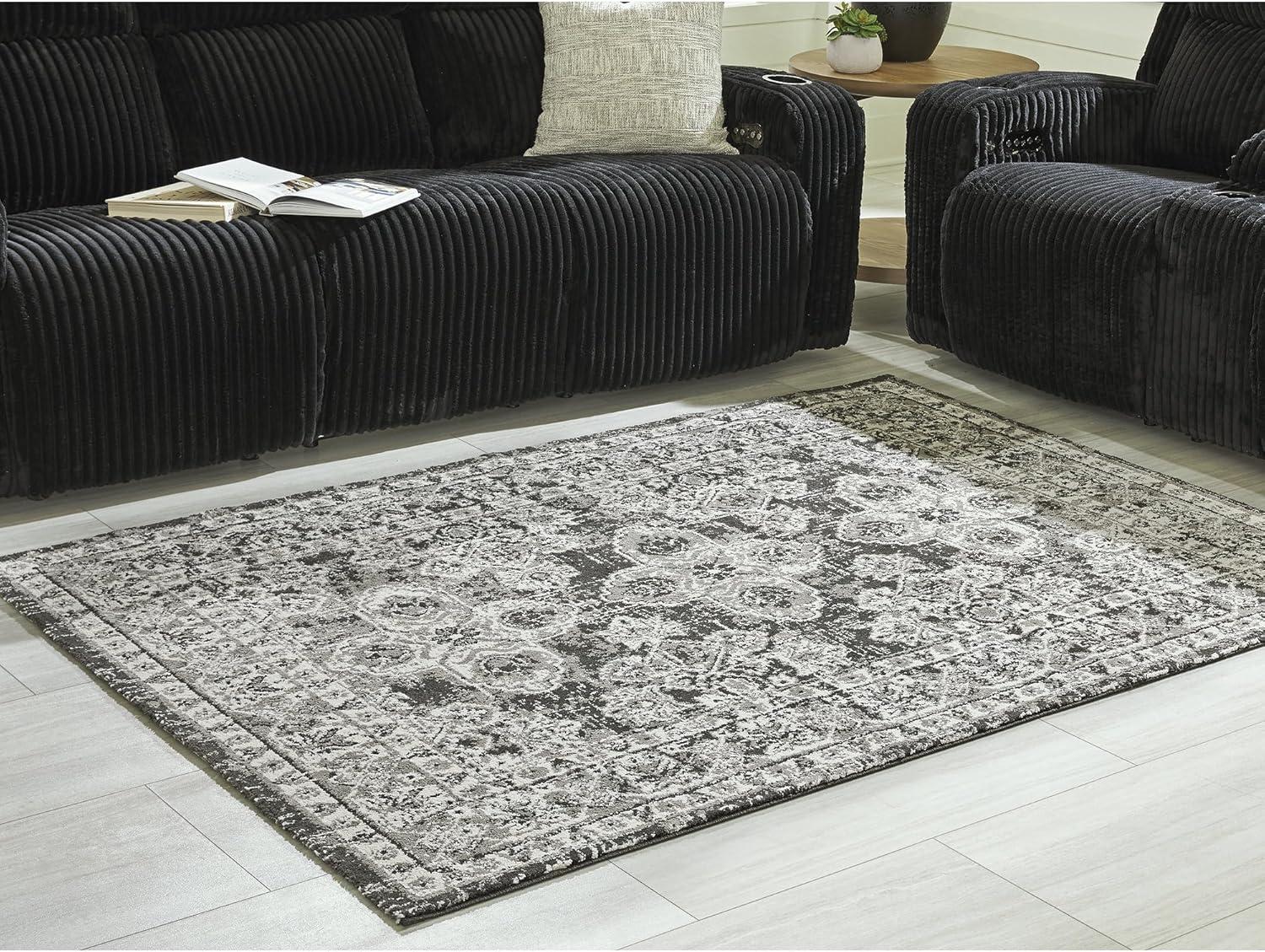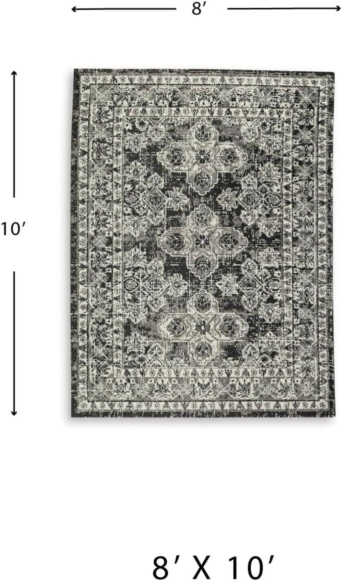 Signature Design by Ashley Glennisman Oriental Indoor Floral 8 x 10 Large Rug, Black & Gray(Black & Gray)