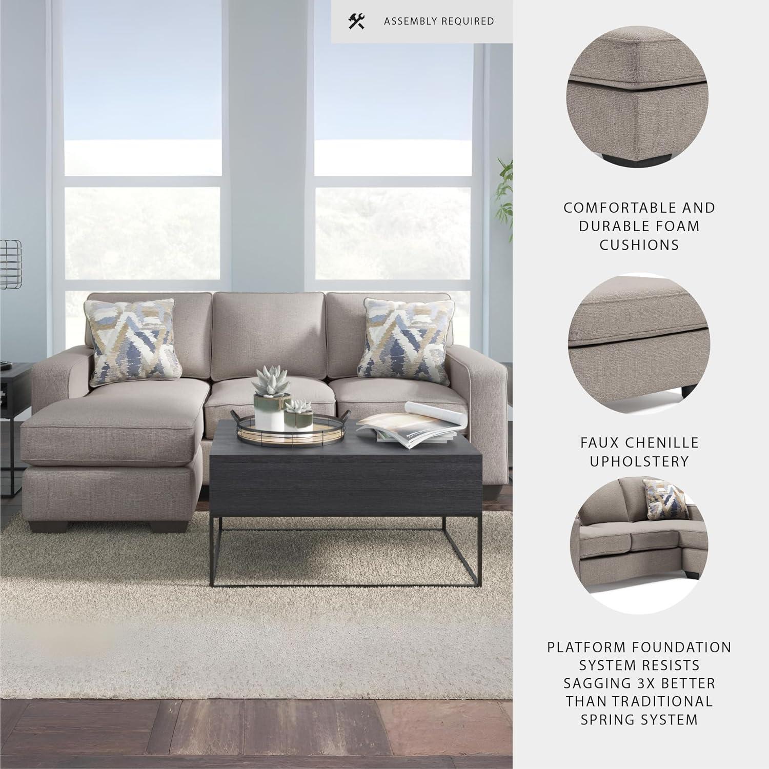 Make your living space that much more livable with this sofa chaise. You’re sure to love its L-shaped design that makes it all too enticing to kick up your heels and relax. The fact that this sofa chaise can be positioned with the chaise on the right or the left only adds to its appeal. And you can rest assured that its ultra-neutral upholstery with a textural chenille feel goes with anything and everything. Wide track armrests, box cushions and tapered feet lend a clean, contemporary aesthetic.
