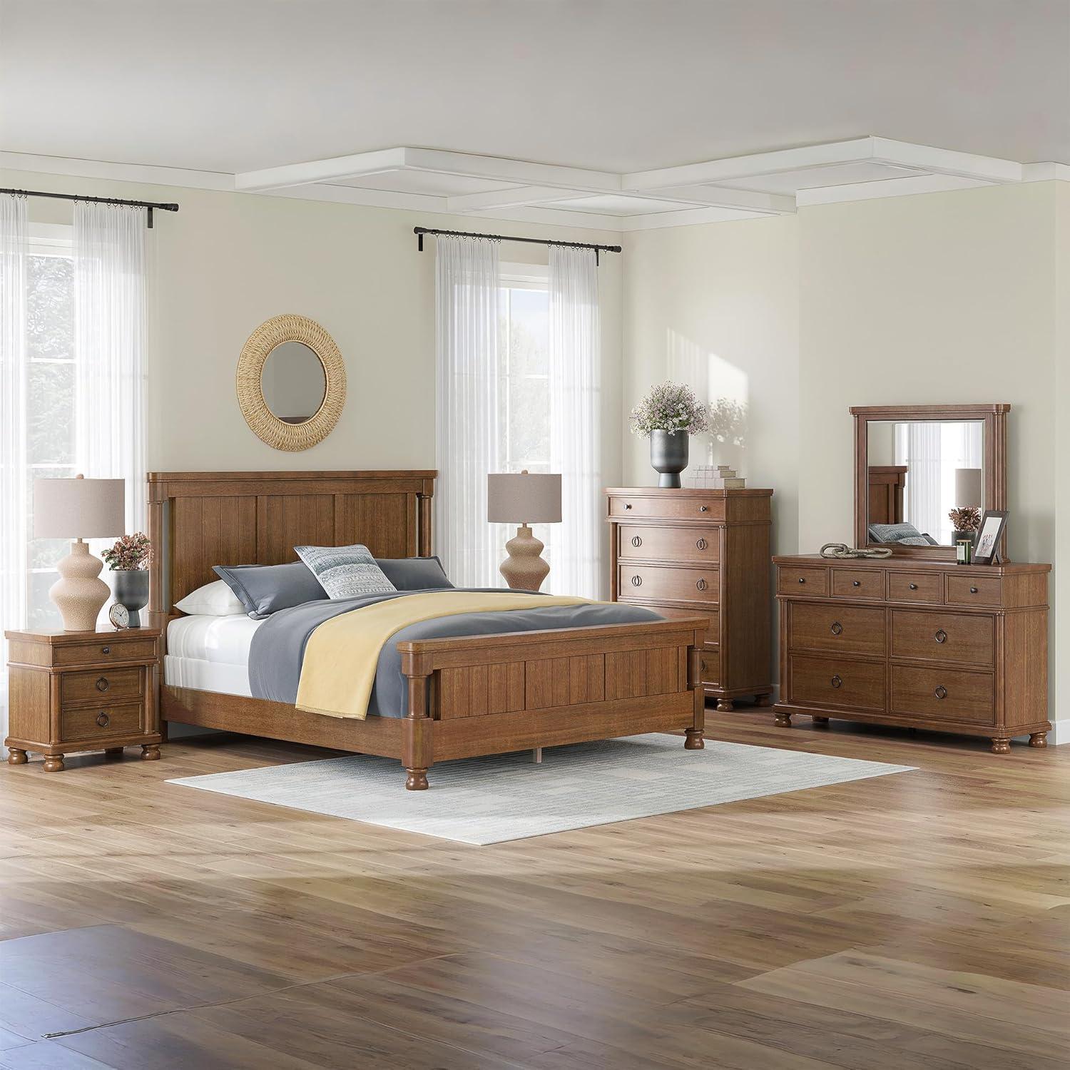 TRADITIONAL DRESSER: Casual yet traditional, this artfully crafted dresser combines classic elements with a clean modern approach. Its antiqued white finish exudes a comfy, timeless appeal that's sure to carry you away to a dreamy time and place