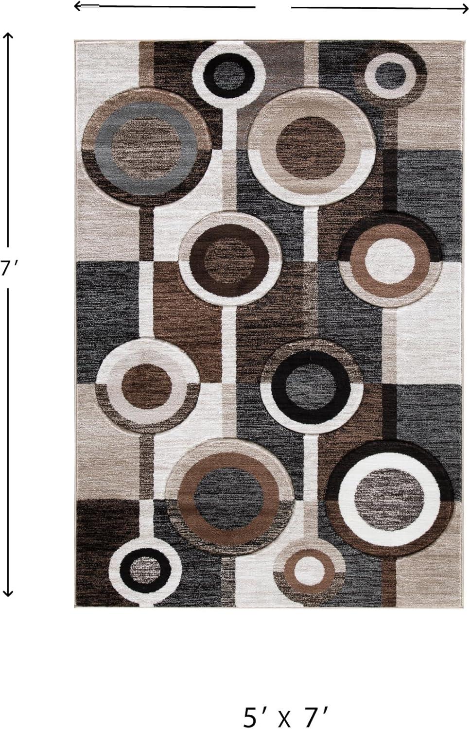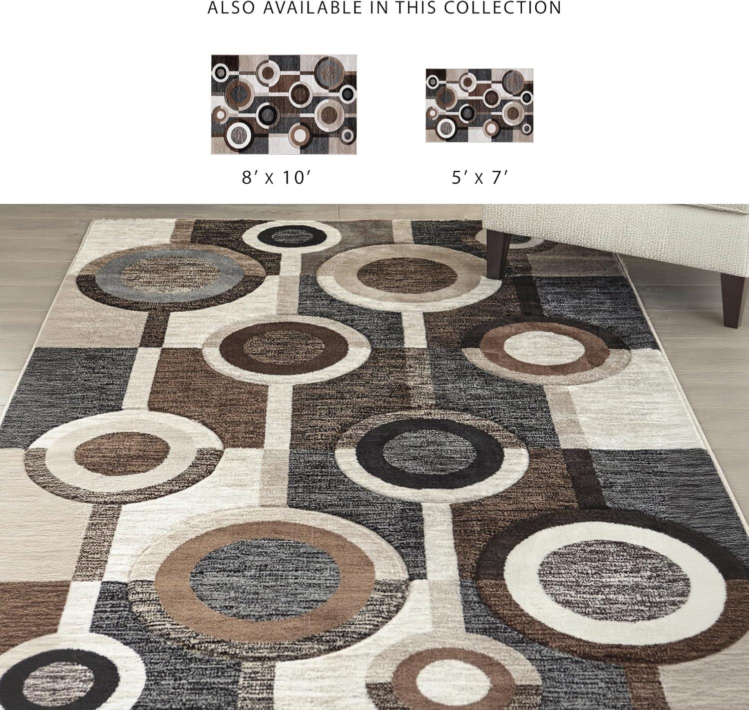 Signature Design by Ashley Guintte Modern 5 x 7 Medium Pile Multilayered Geometric Design Rug, Black, Brown & Cream(5′ x 6’7″ (Rectangular))