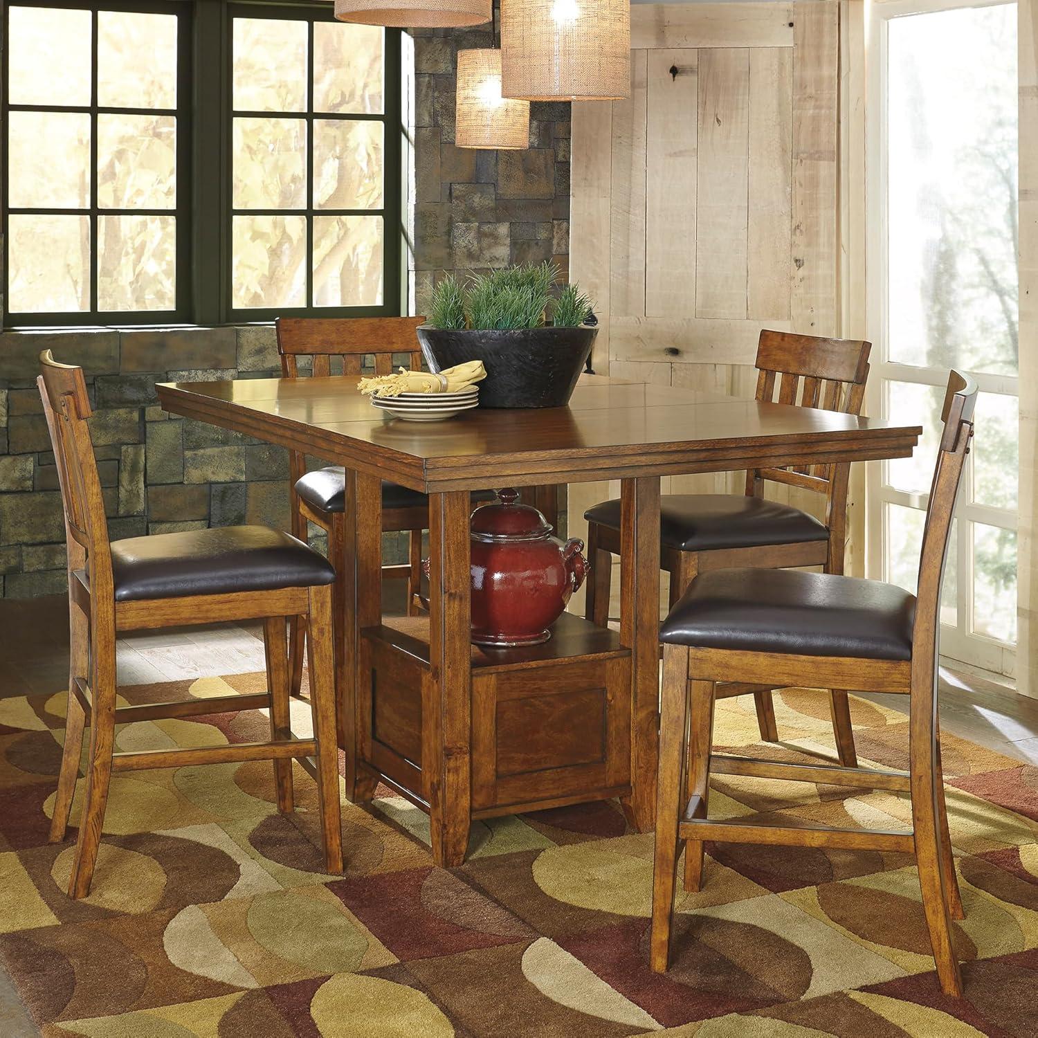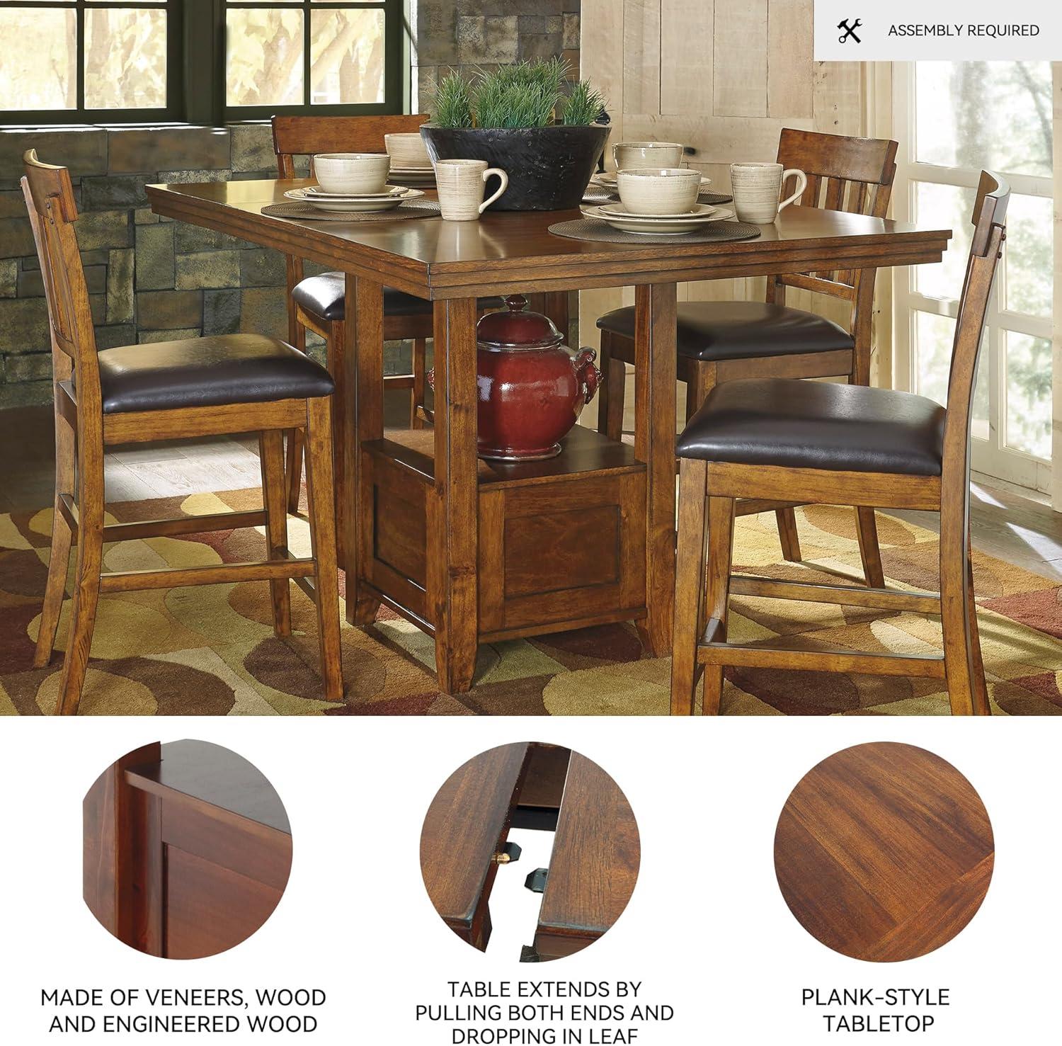Signature Design by Ashley Haddigan Traditional Rectangular 36″ Counter Height Dining Extension Table, Dark Brown(Medium Brown)