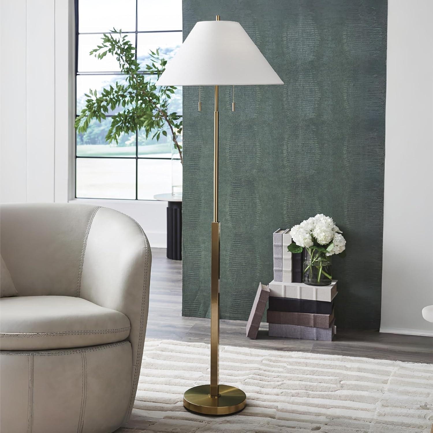 CONTEMPORARY FLOOR LAMP: If you're looking for a contemporary yet timeless aesthetic, this lamp's antiqued gold-tone base is delightfully on trend. With the classic flair of pull chains and a stylish empire shade, there's something for every style