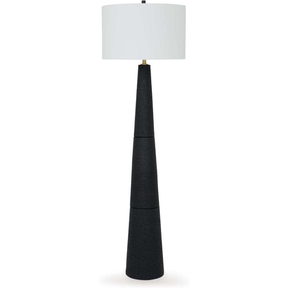 Like a contemporary aesthetic? Embrace it with this chic floor lamp. A mastery in minimalism, it wows with a textured black finish and stylish drum shade, offering a touch of refined elegance. This piece will illuminate your living area or home office with just the right amount of sophistication. Signature Design by Ashley is a registered trademark of Ashley Furniture Industries, Inc.