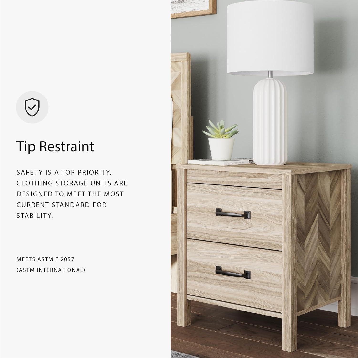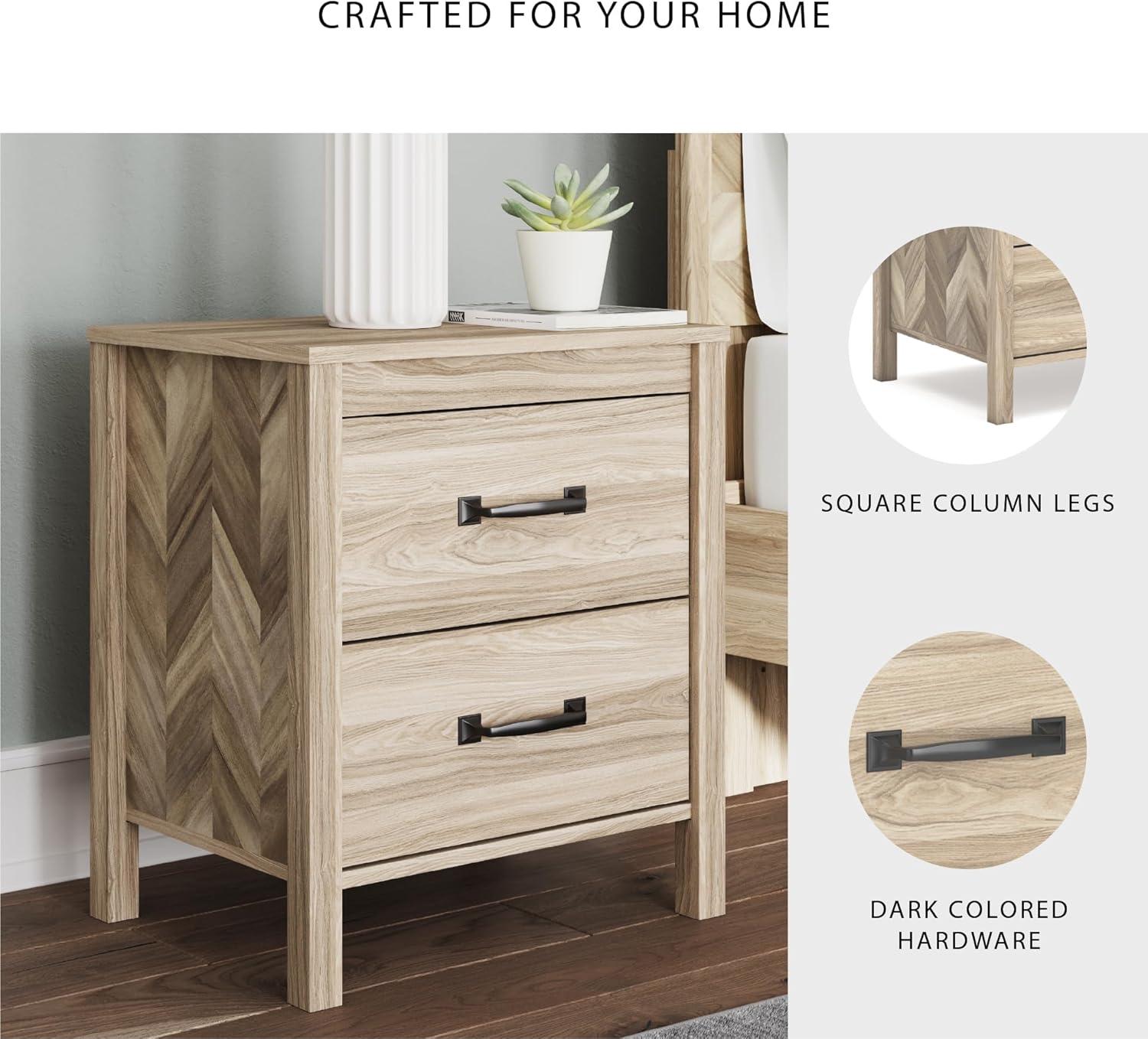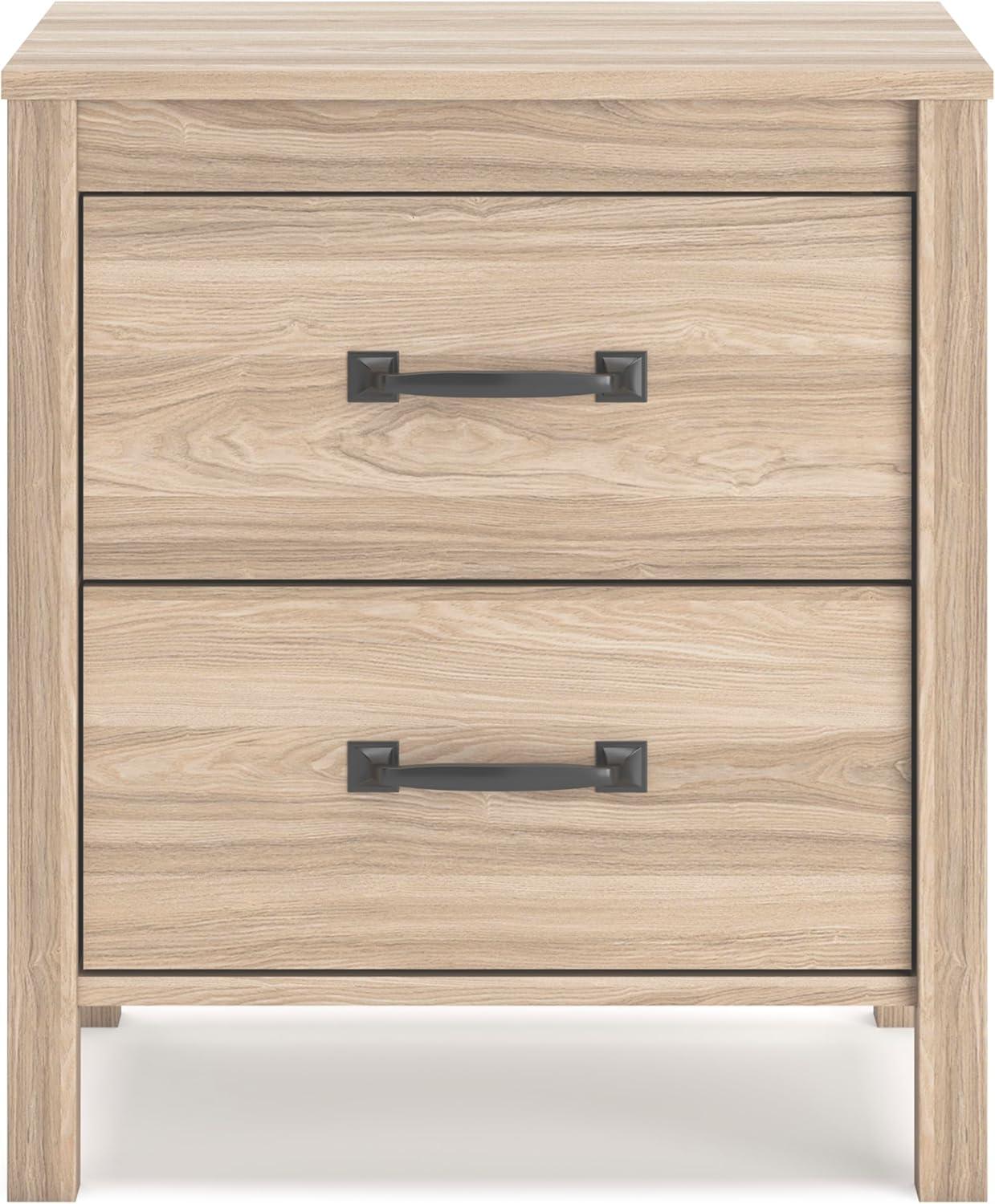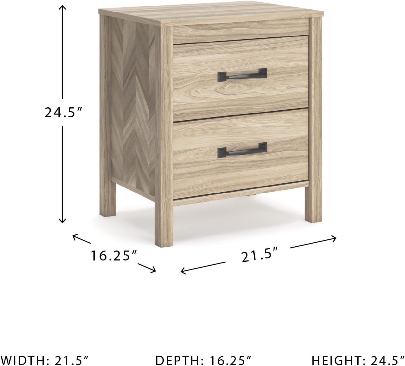 Signature Design by Ashley Hallityn Minimalist 2 Drawer Nightstand for Bedroom, 24.37″ Tall, White(Natural)