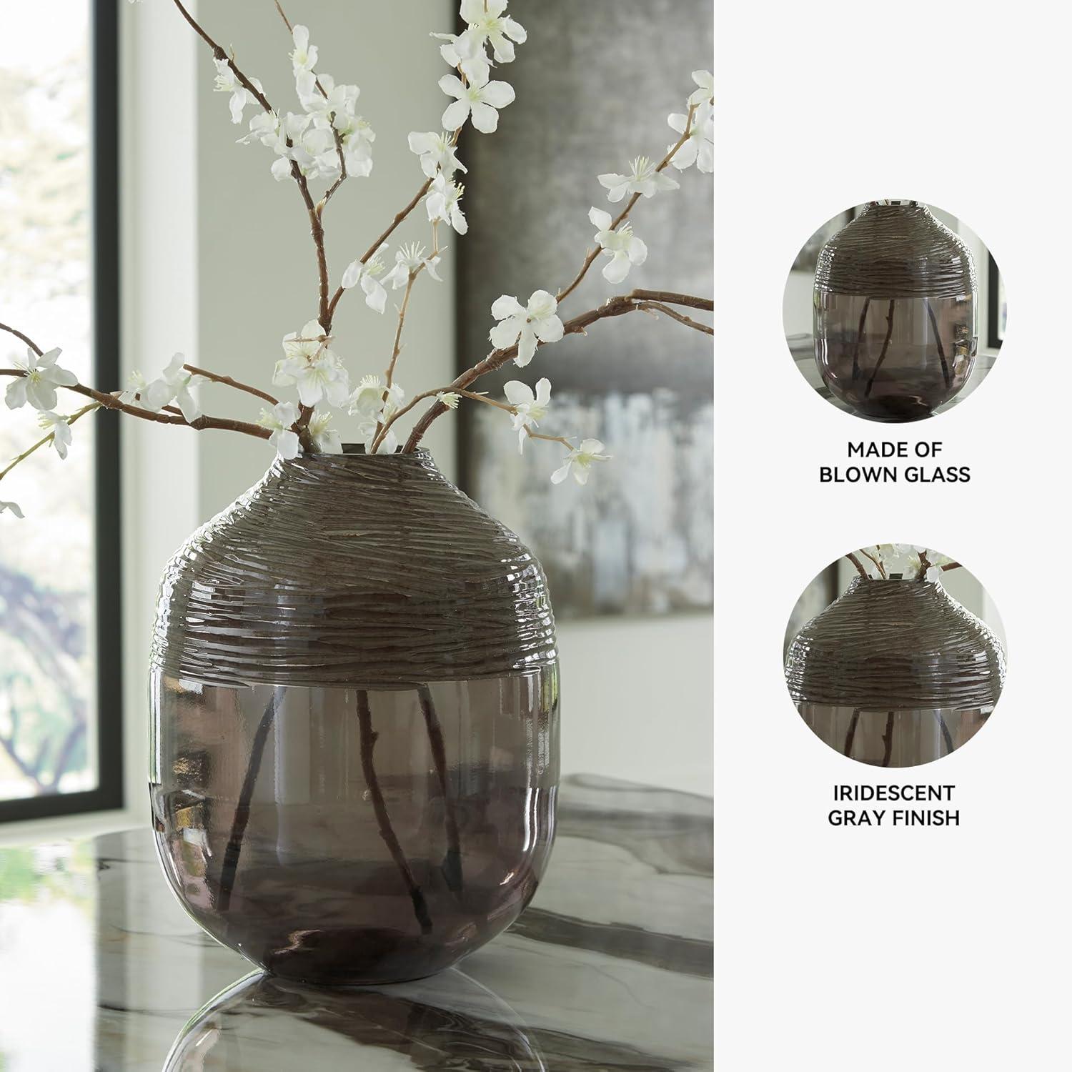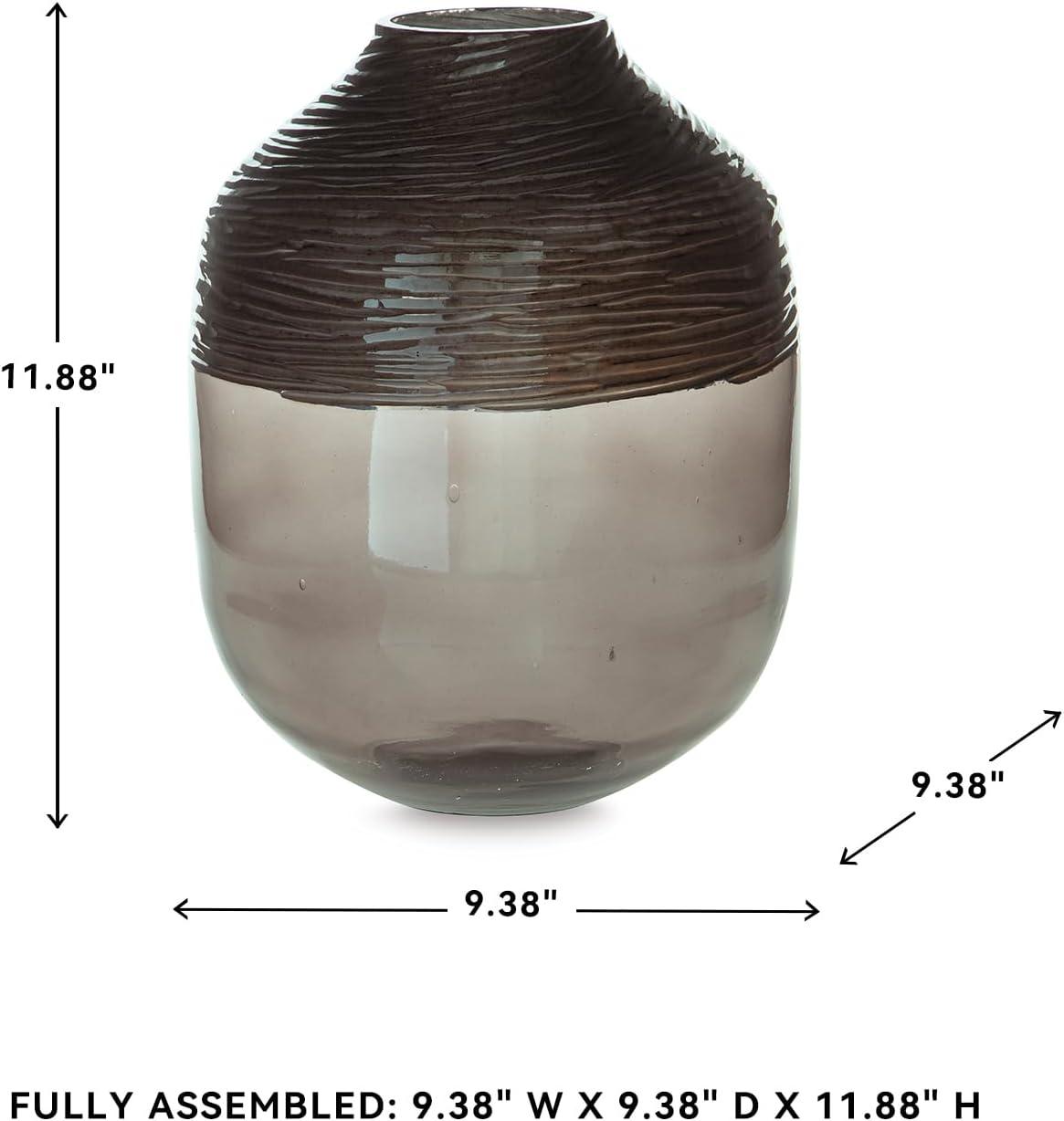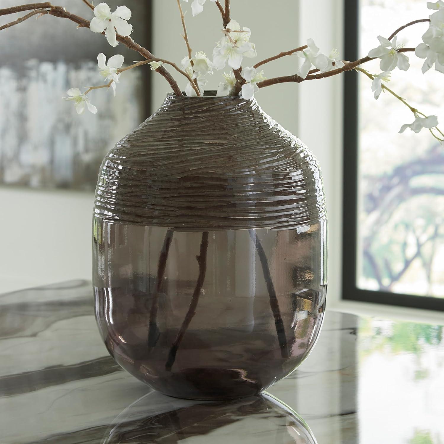 Signature Design by Ashley Harpwick Modern Indoor Glass Vase with Hand-Carved Top, Gray(Large)