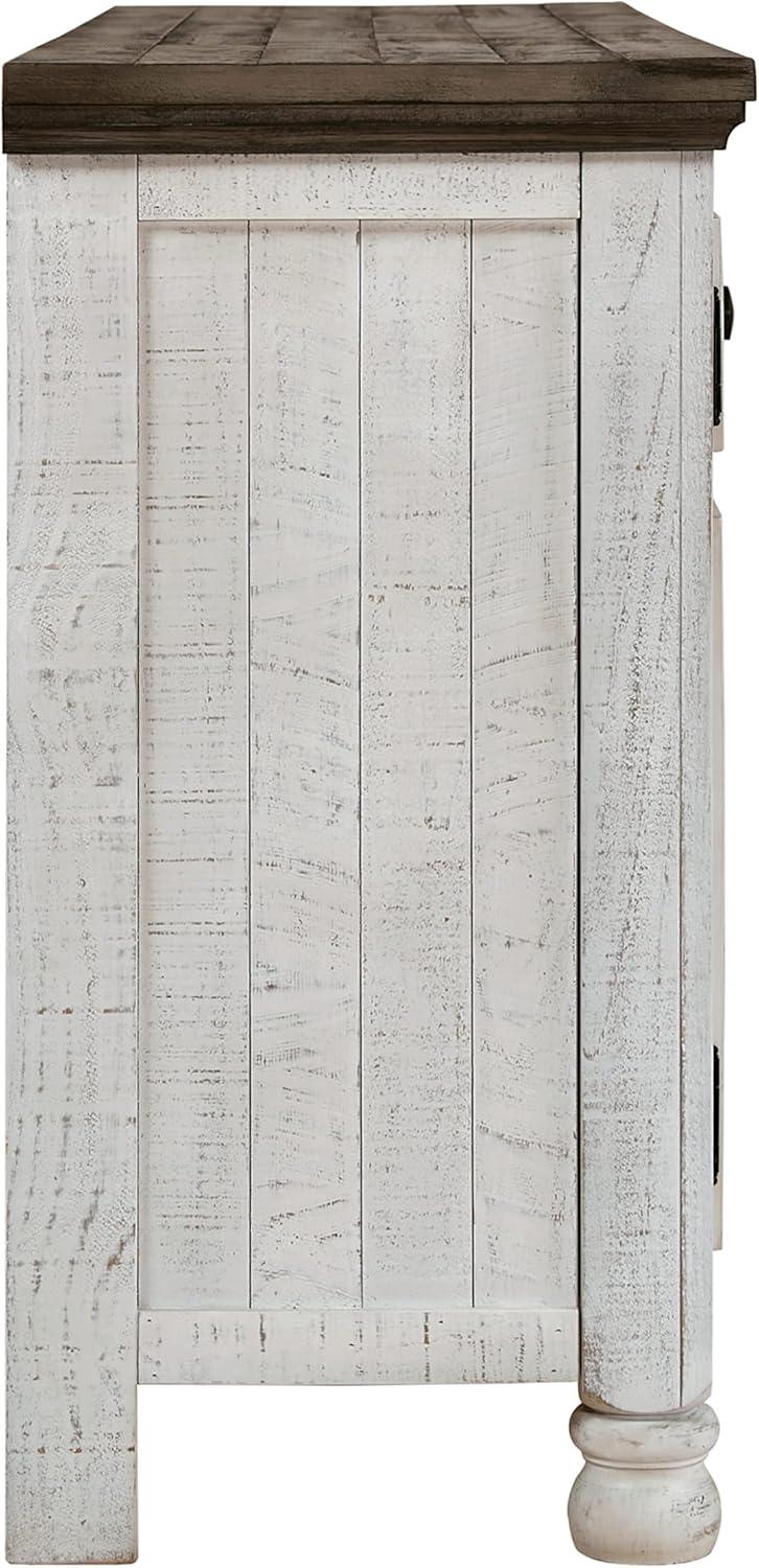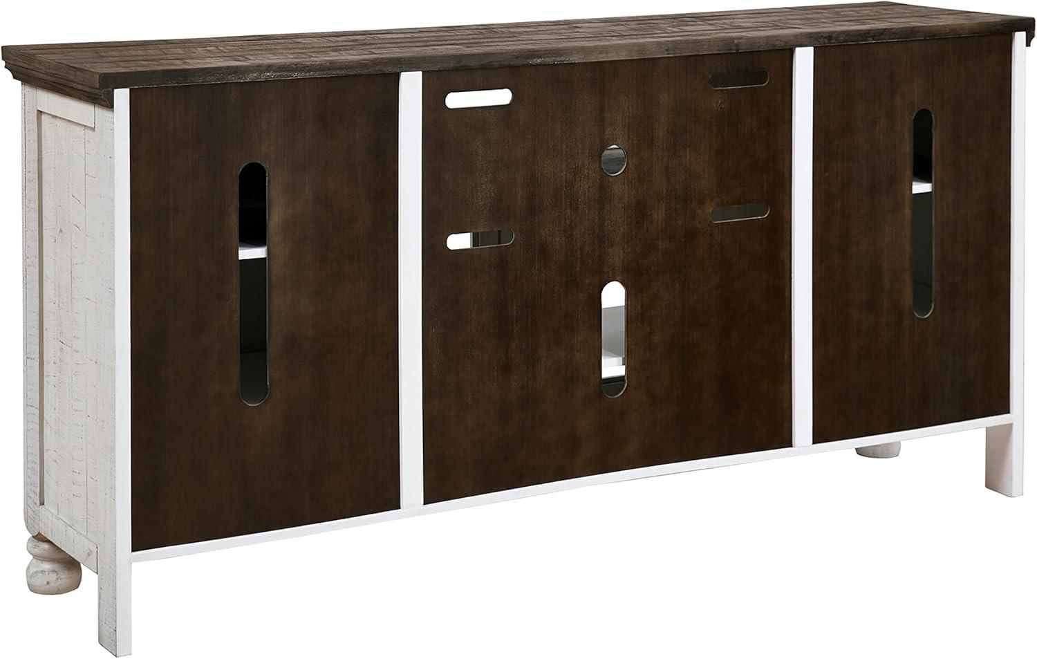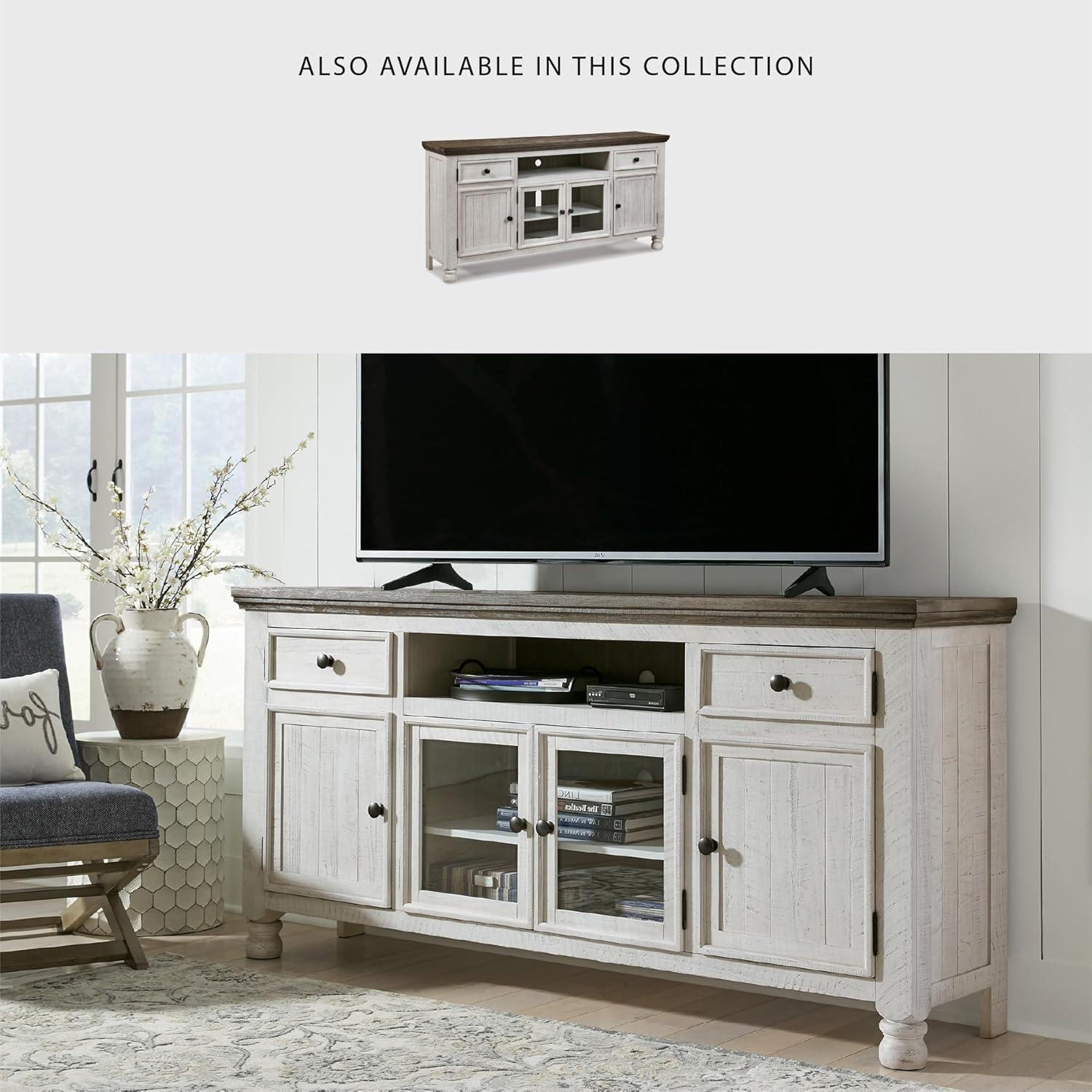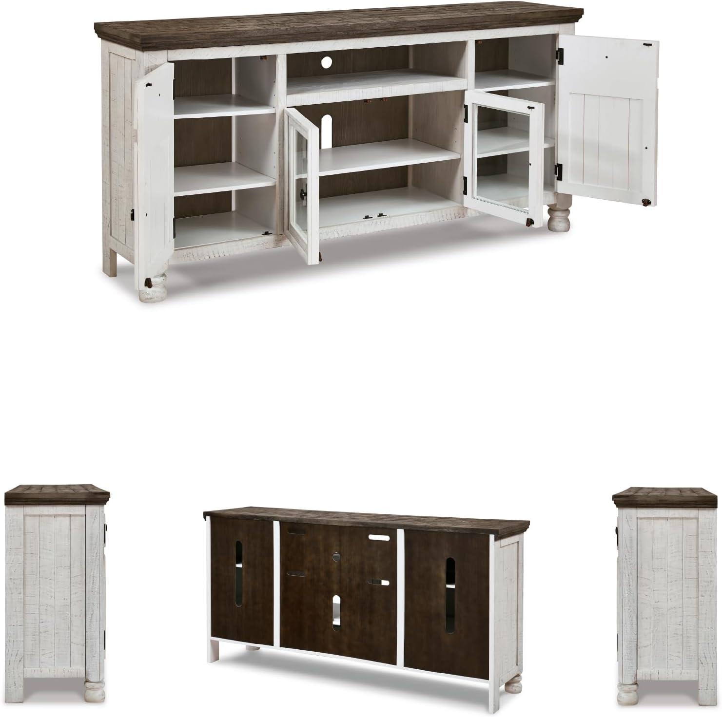 Signature Design by Ashley Havalance Farmhouse TV Stand Fits TVs up to 72″, 4 Cabinets and Shelves For Storage, Vintage White & Weathered Gray