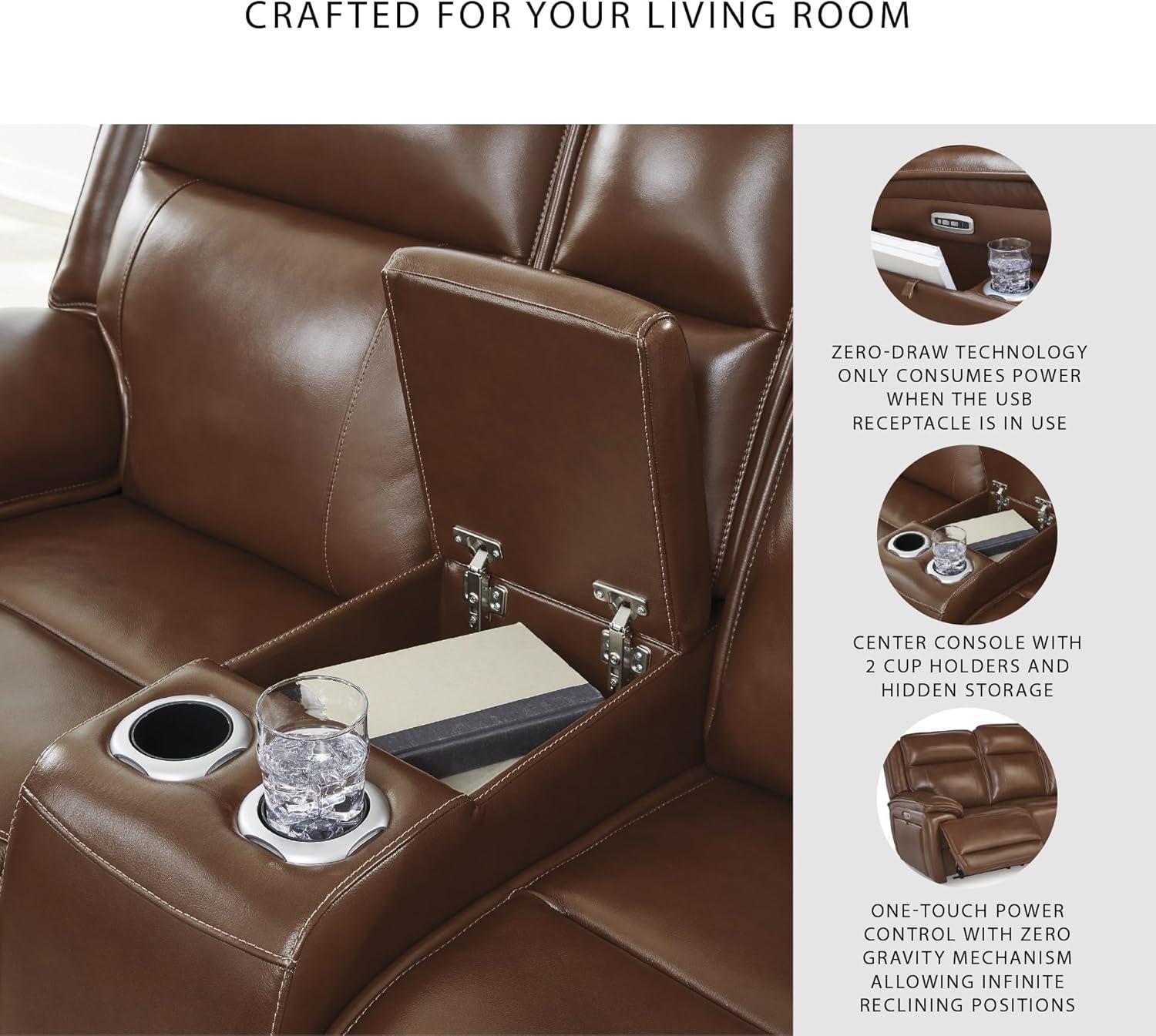 Signature Design by Ashley Healy Pier Modern Power Reclining Sofa with Adjustable Headrest and Storage, Dark Brown(Chocolate)