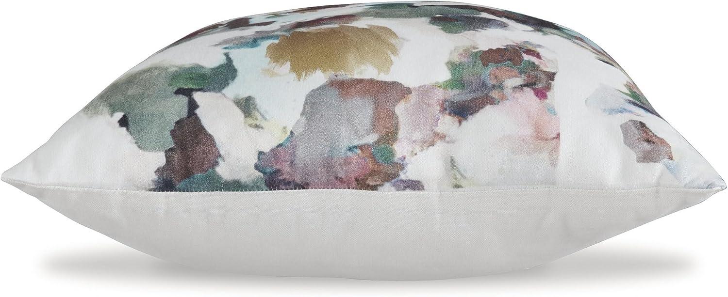 Signature Design by Ashley Herston Modern Machine Washable Astract Watercolor Design Accent Pillow with Zipper Closure, White & Green