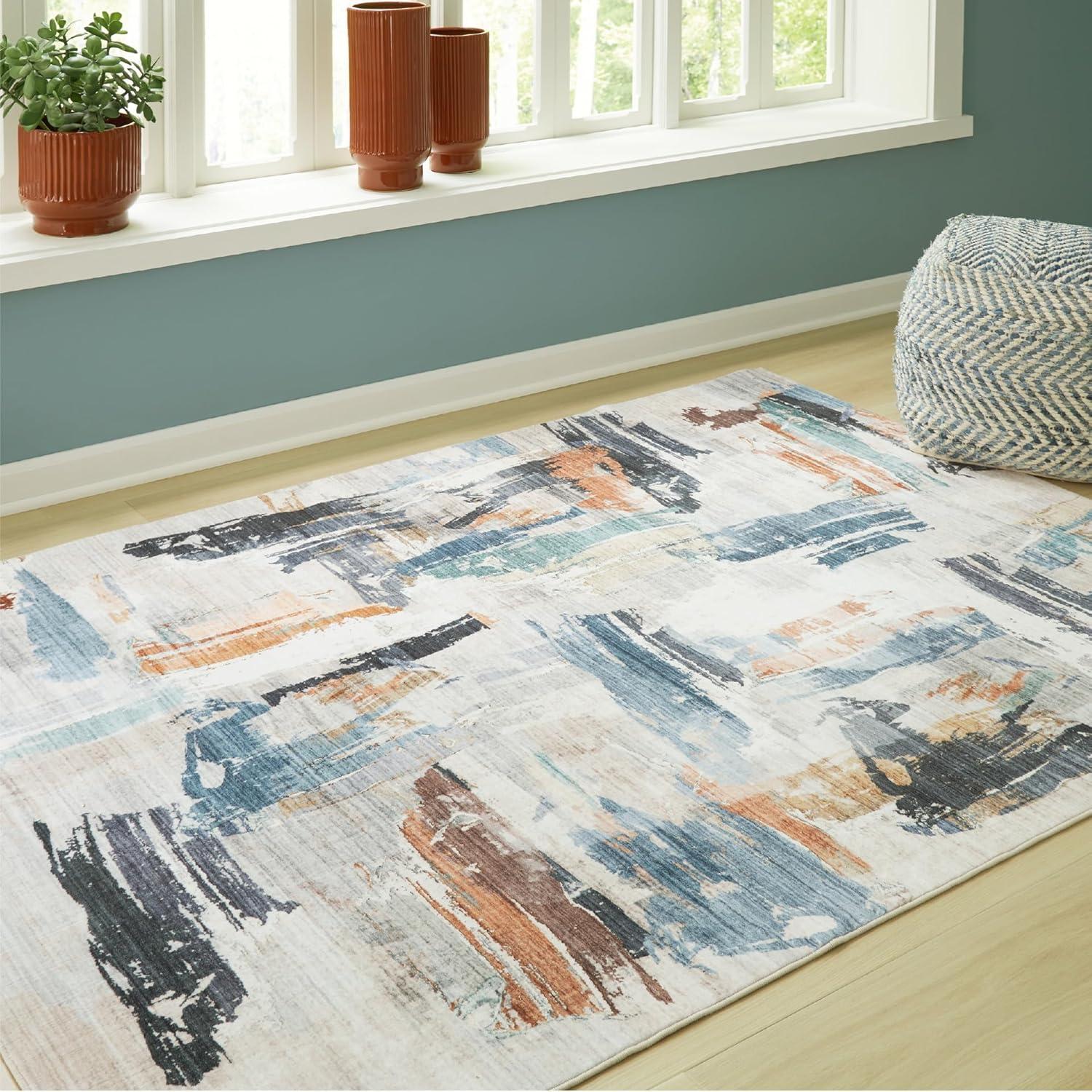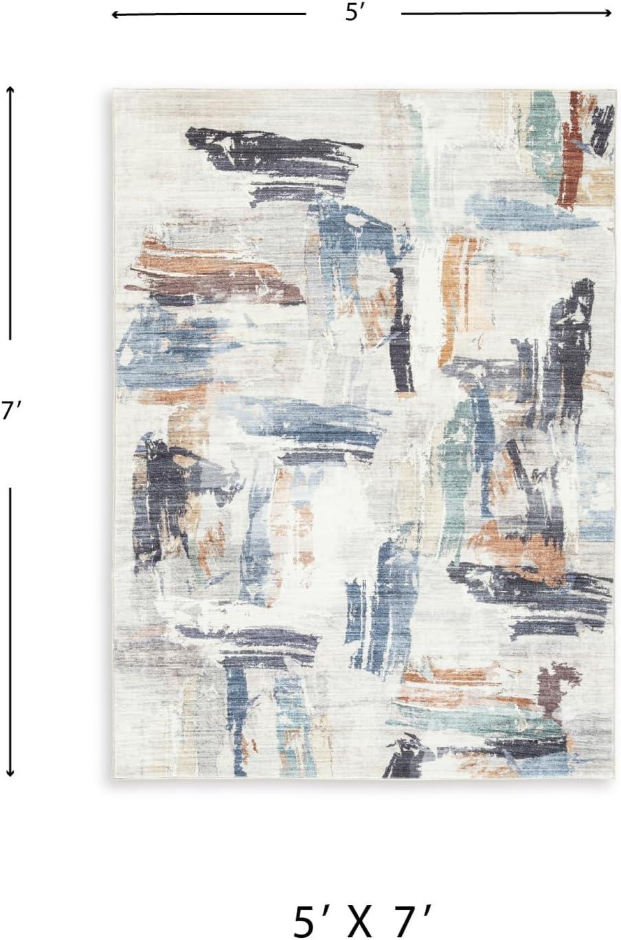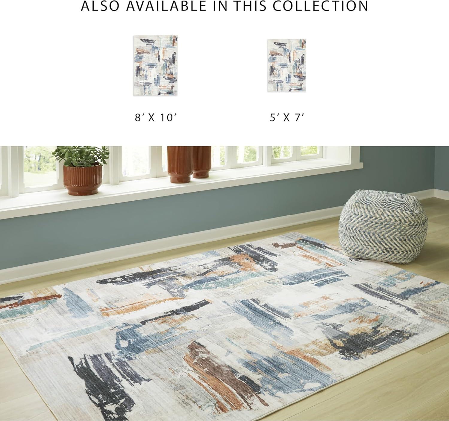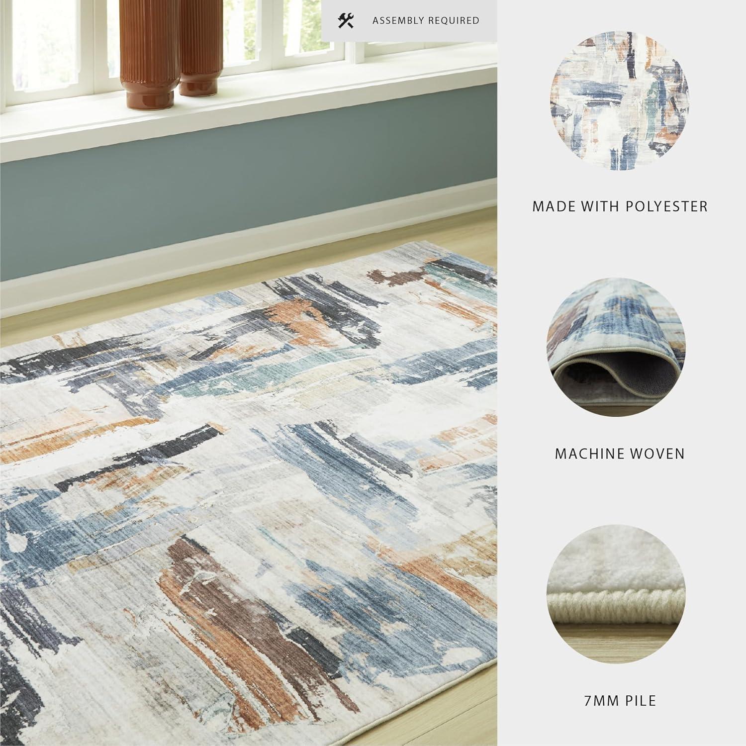 Signature Design by Ashley Hessland Contemporary Indoor Non Slip Abstract 5 x 7 Washable Rug, Blue & Light Brown(5′ x 7′ (Rectangular))