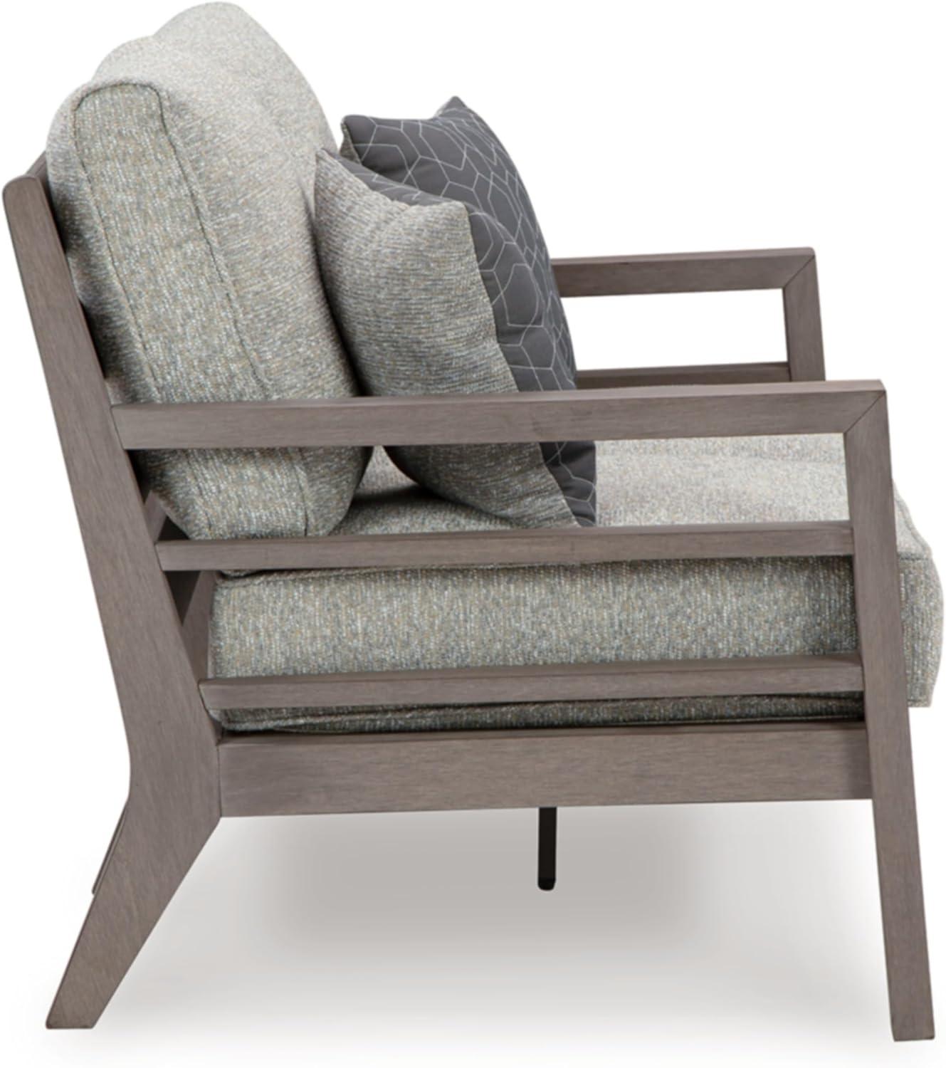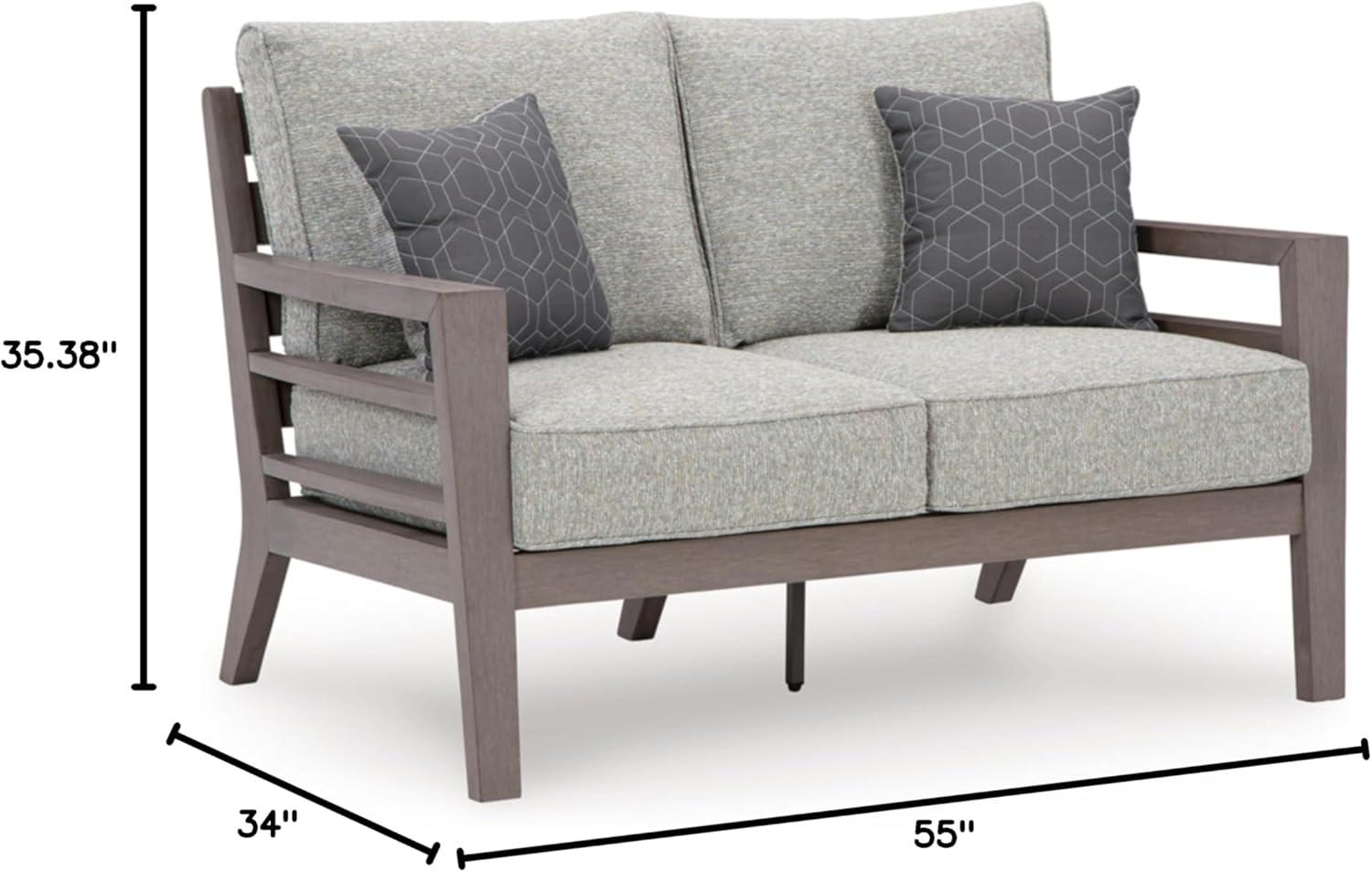 This loveseat is a stylish outdoor piece with staying power. Built for longevity with Weatherwood, an engineered resin polymer with the appearance of wood, it indulges you in contemporary design without sacrificing durability. Stunning form and can’t-miss function—with this loveseat, endless days in the shade await. Signature Design by Ashley is a registered trademark of Ashley Furniture Industries, Inc.