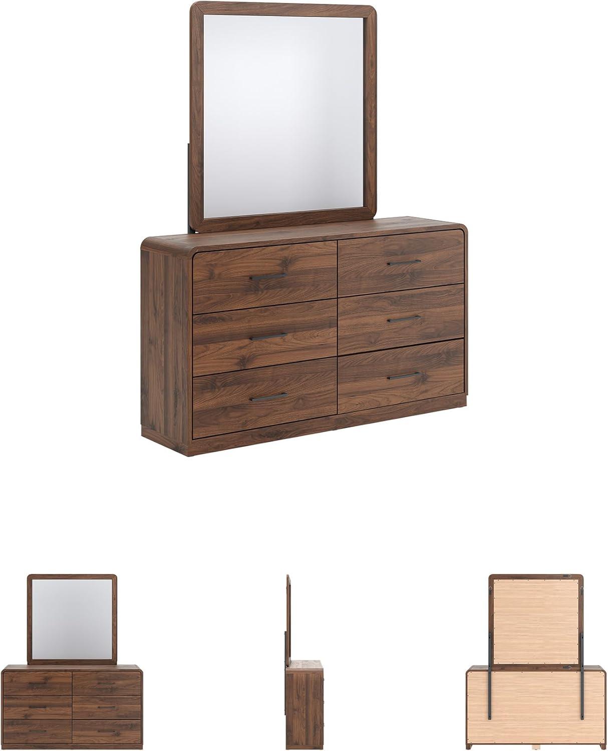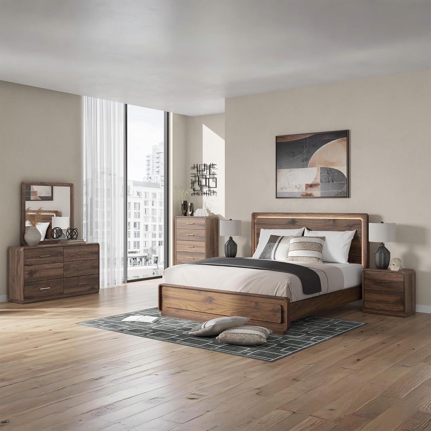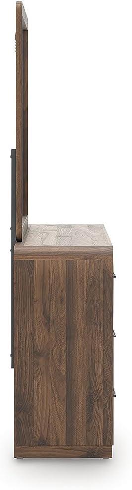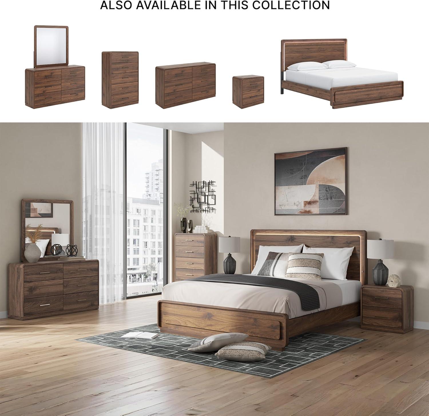 Signature Design by Ashley Hollinaze Contemporary Panel Platform Bed with LED Lighting, Foundation or Box Spring Not Needed, Queen, Dark Brown(Dresser and Mirror)