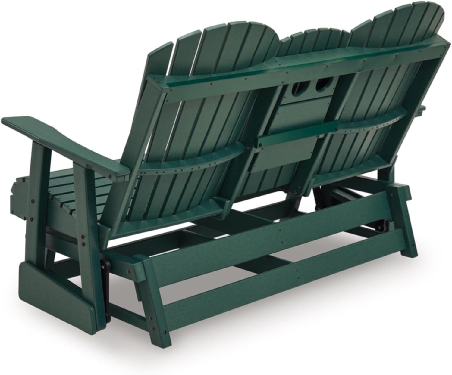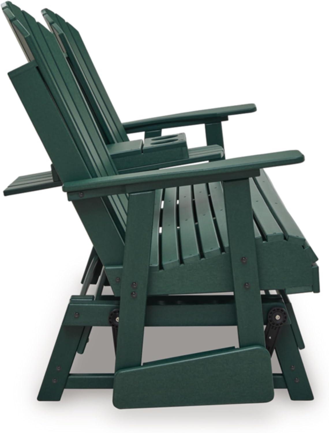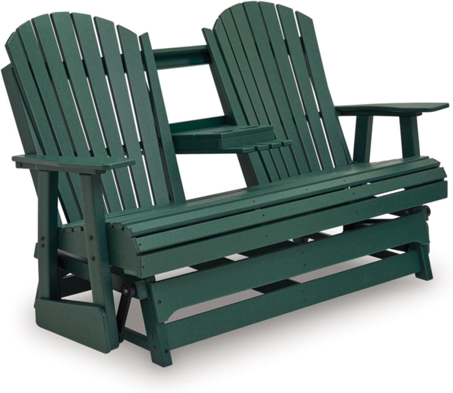 Signature Design by Ashley Hyland Wave Contemporary Outdoor Loveseat Glider with Drop-Down Table & Cup Holders, Durable HDPE, 67″ W x 31.5″ D x 41.75″ H, Green(Green)
