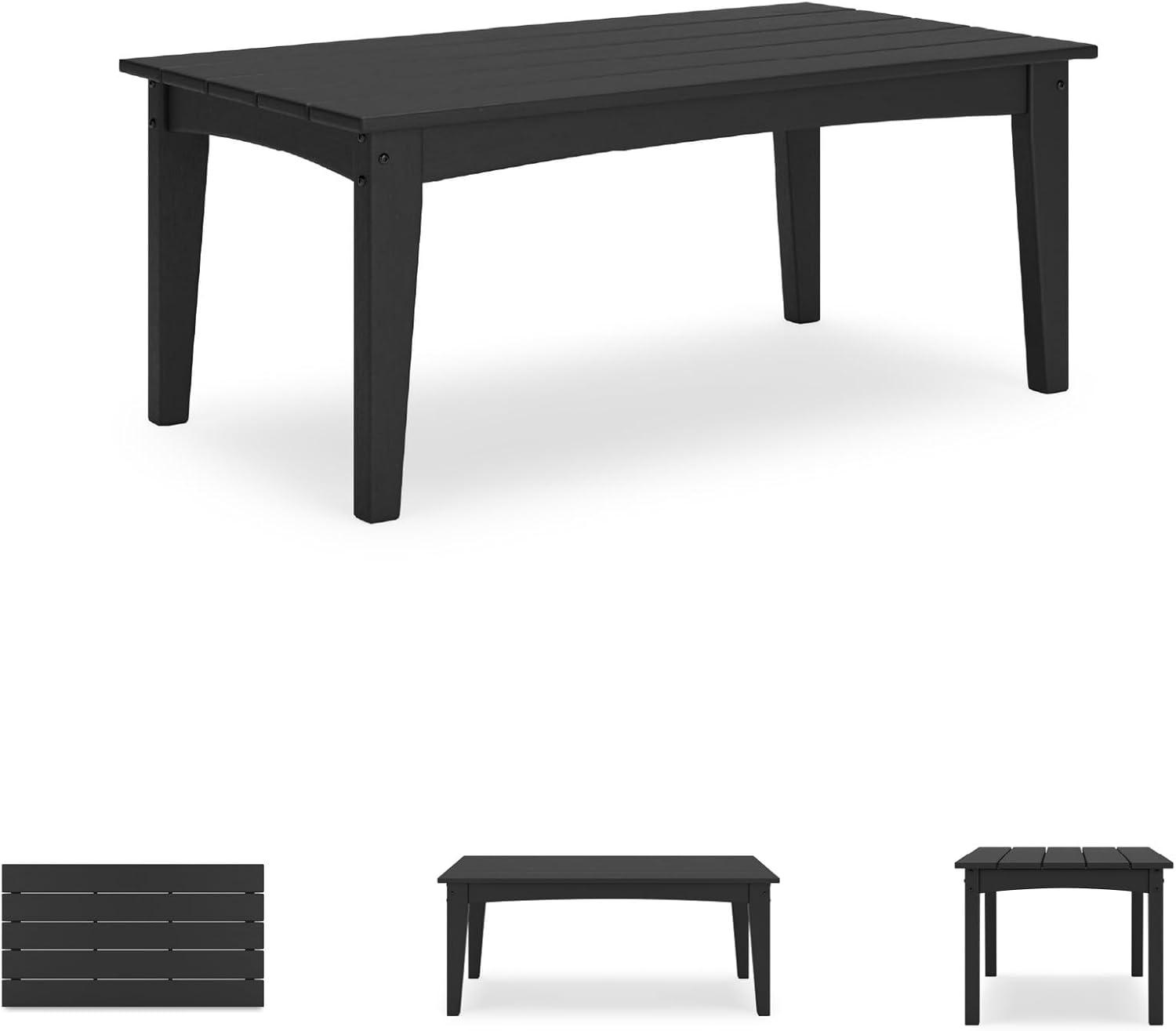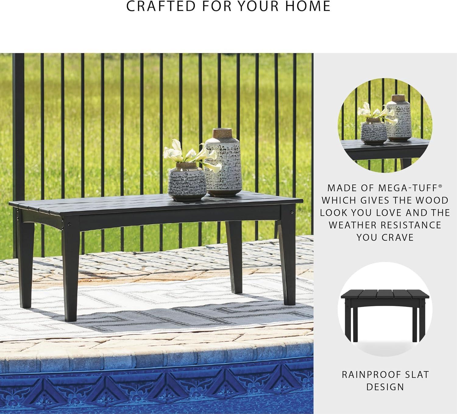 Drift into outdoor entertainment bliss with this coffee table. Dressed in a bright white for a fresh feel, it weathers sunny summer days and cozy winter nights with durable MEGA TUFF™ HDPE material. When it comes to form and function, the table's rain-shedding slatted design simply goes with the flow. Use it to hold outdoor decor, drinks or snacks. Signature Design by Ashley is a registered trademark of Ashley Furniture Industries, Inc.