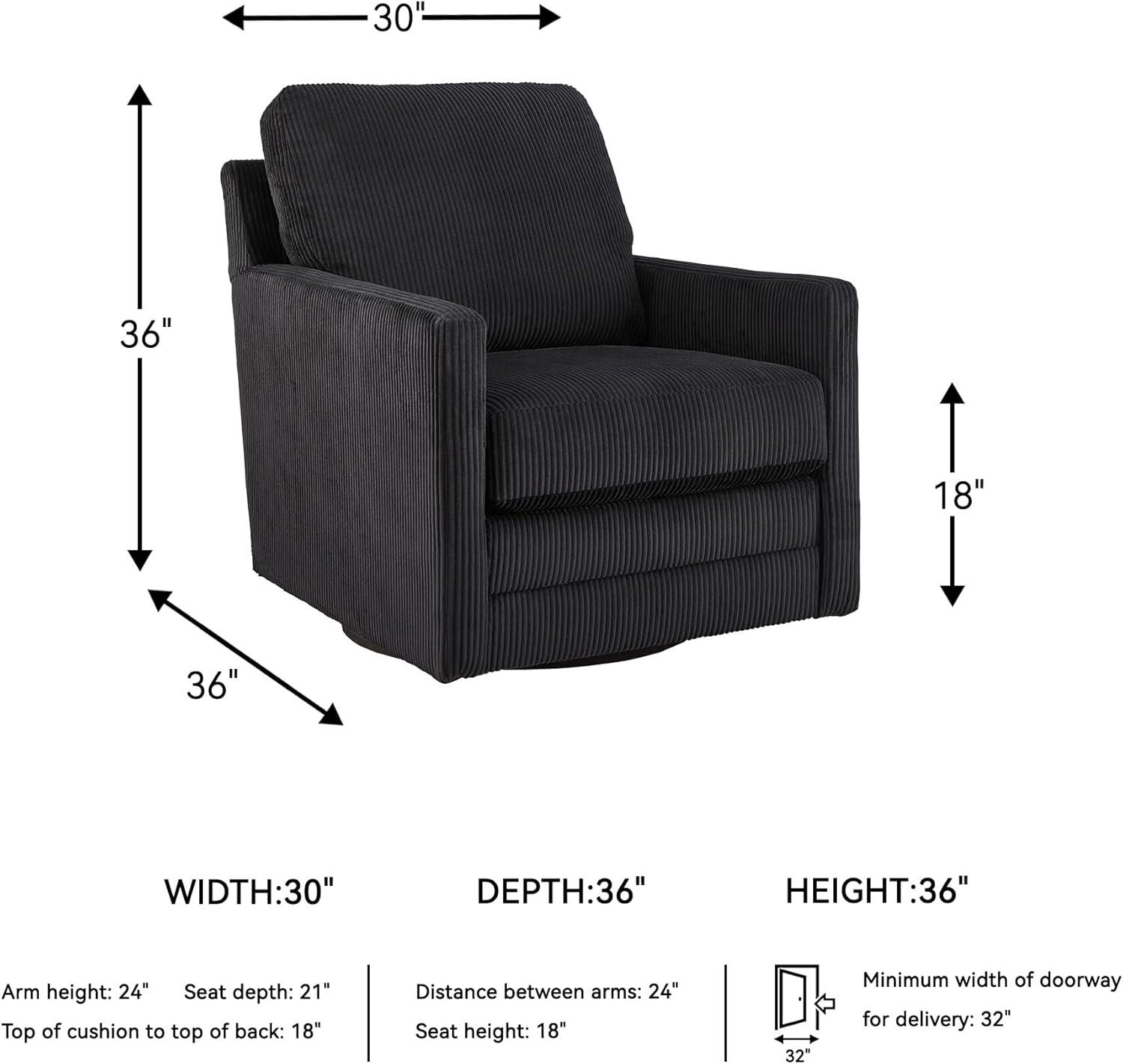 Clean-lined, contemporary style. Relaxed, homey comfort. This swivel chair has it all. Lightweight onyx-hued corduroy upholstery makes it a cozy yet head-turning piece. Factor in the 360-degree spin, and you've got a win-win.